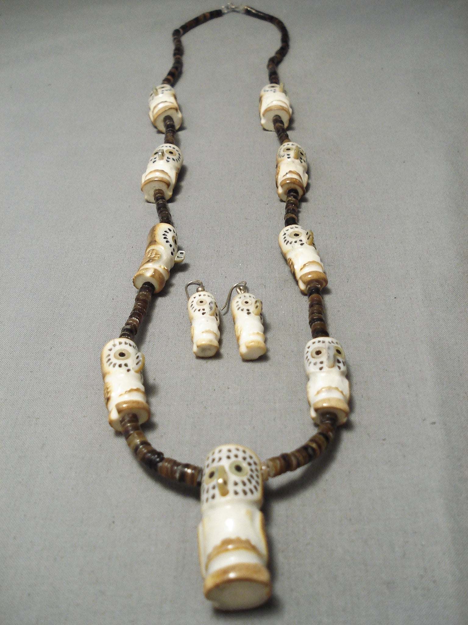 Detailed!! Vintage Zuni/ Navajo Hand Carved Owl Sterling Silver Necklace