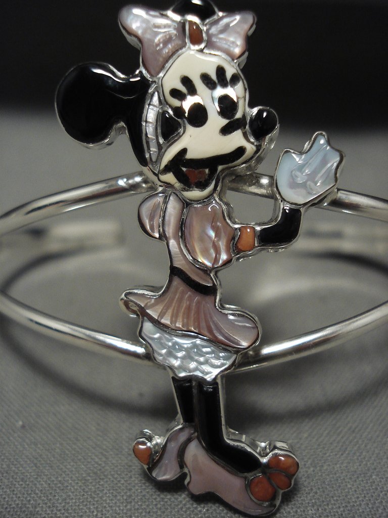 Details Details! Zuni Pink Shell Coral Mouse Native American Jewelry Silver Bracelet