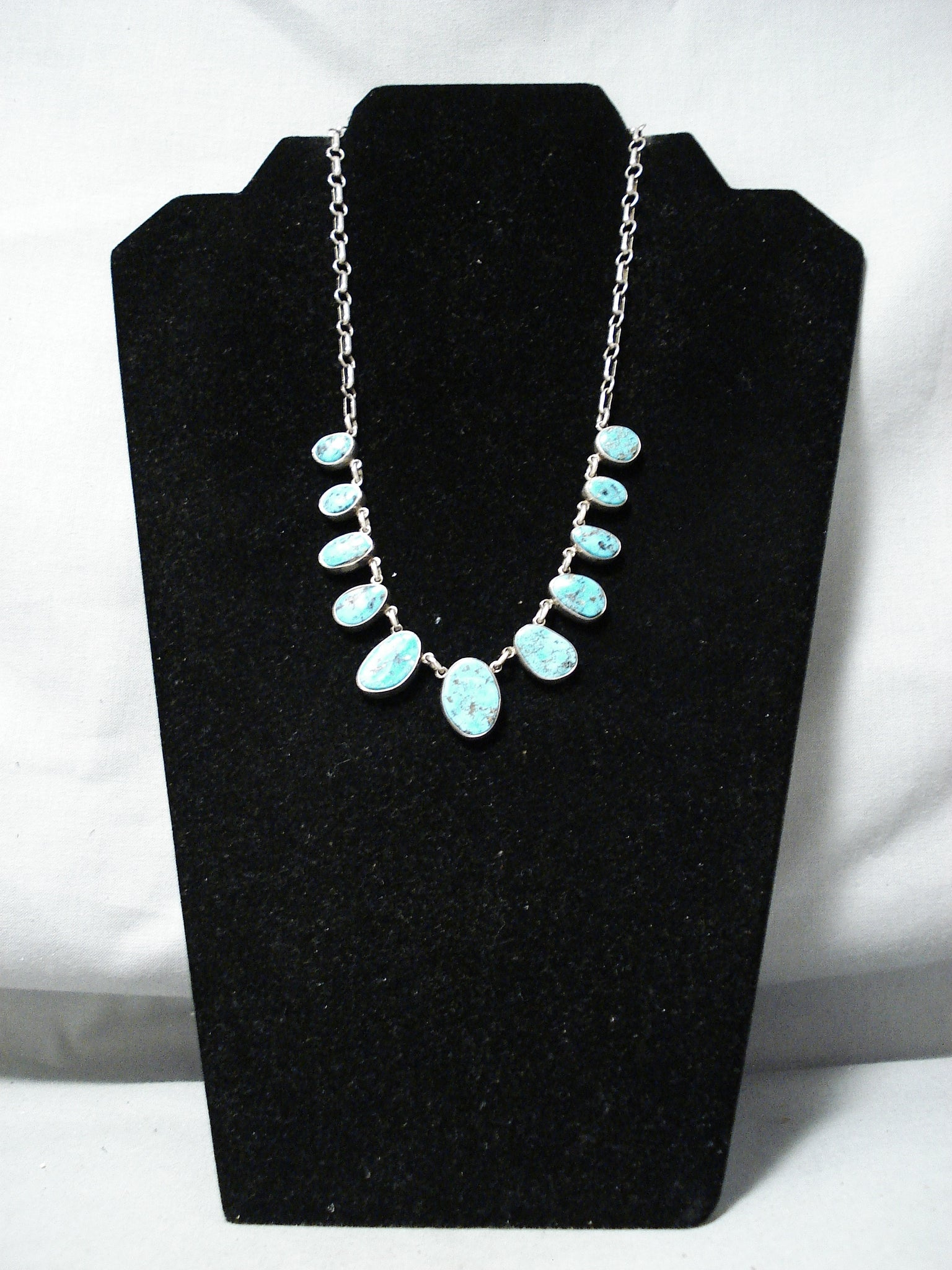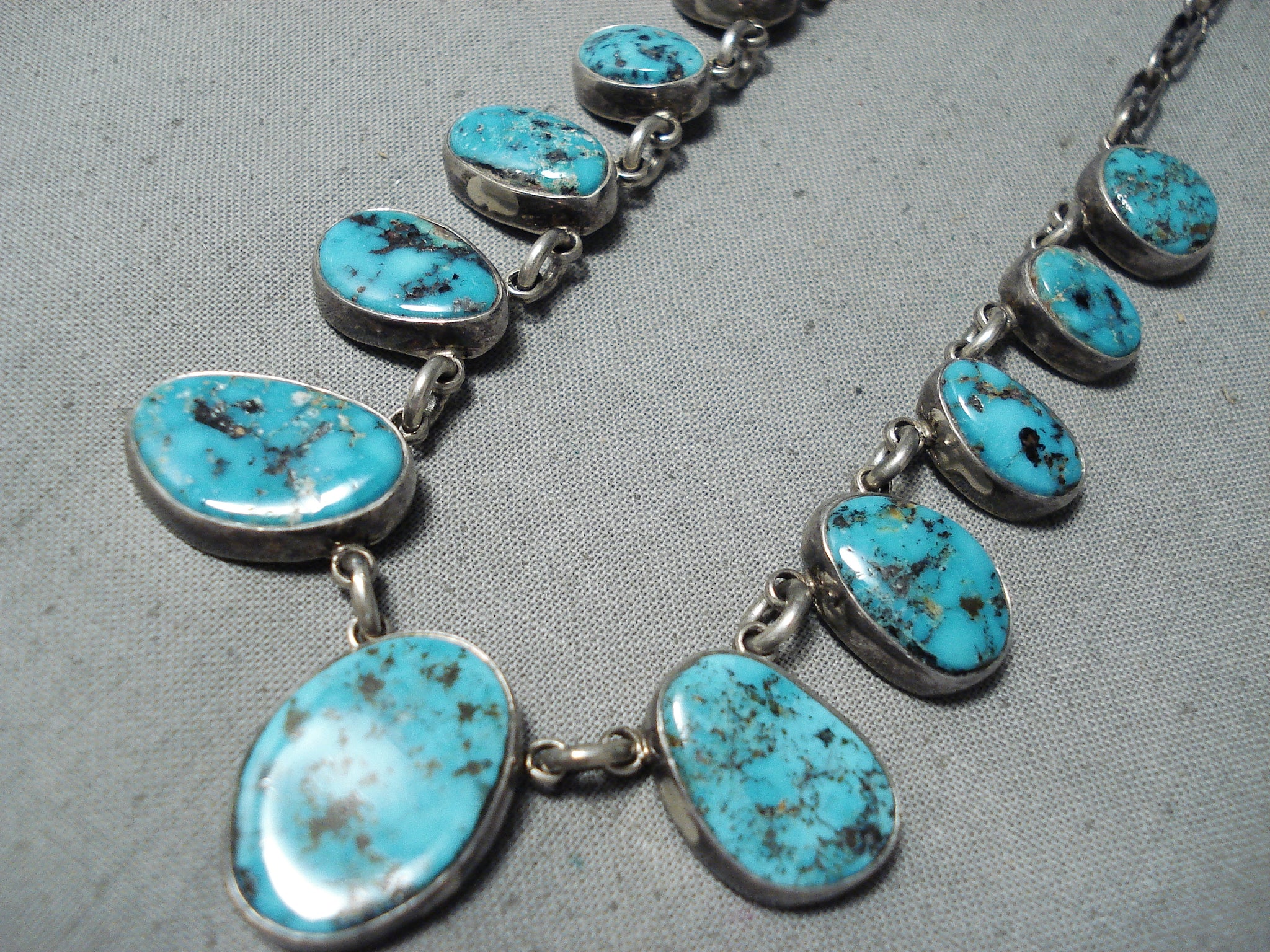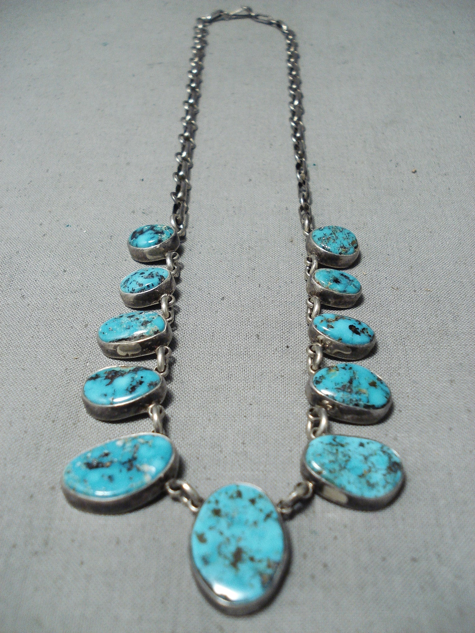 Dramatic Vintage Native American Navajo Kingman Turquoise Sterling Silver Necklace Old