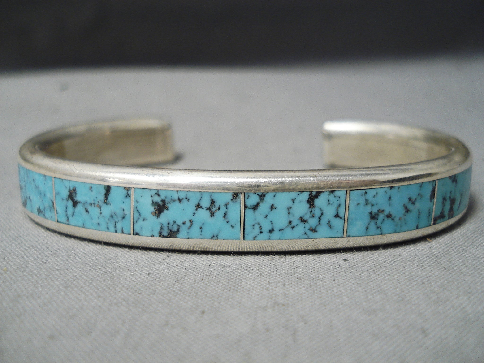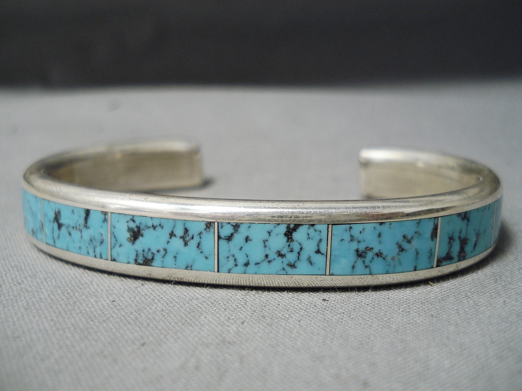 Dramatic Vintage Native American Zuni Turquoise Sterling Silver Bracelet Old