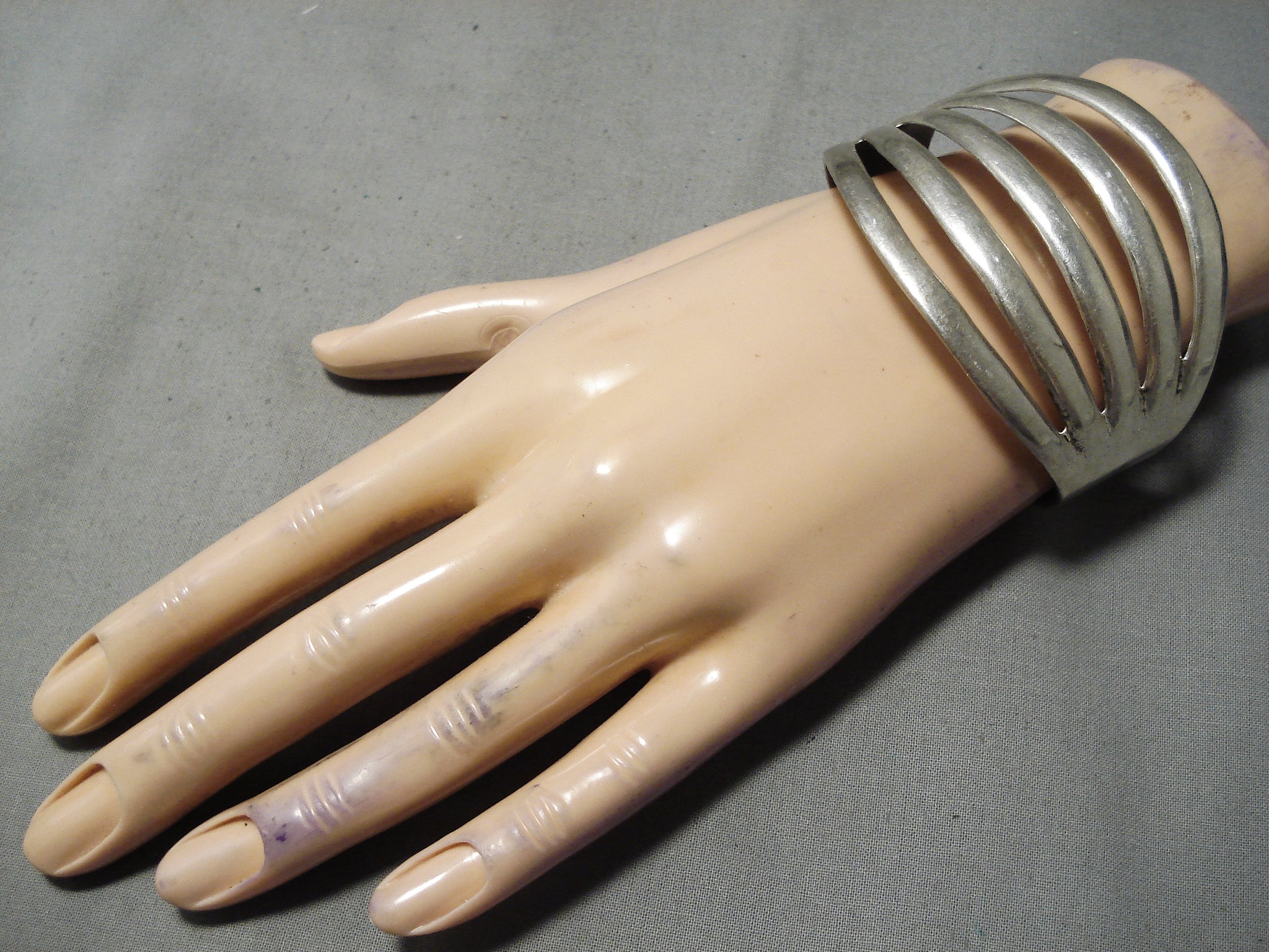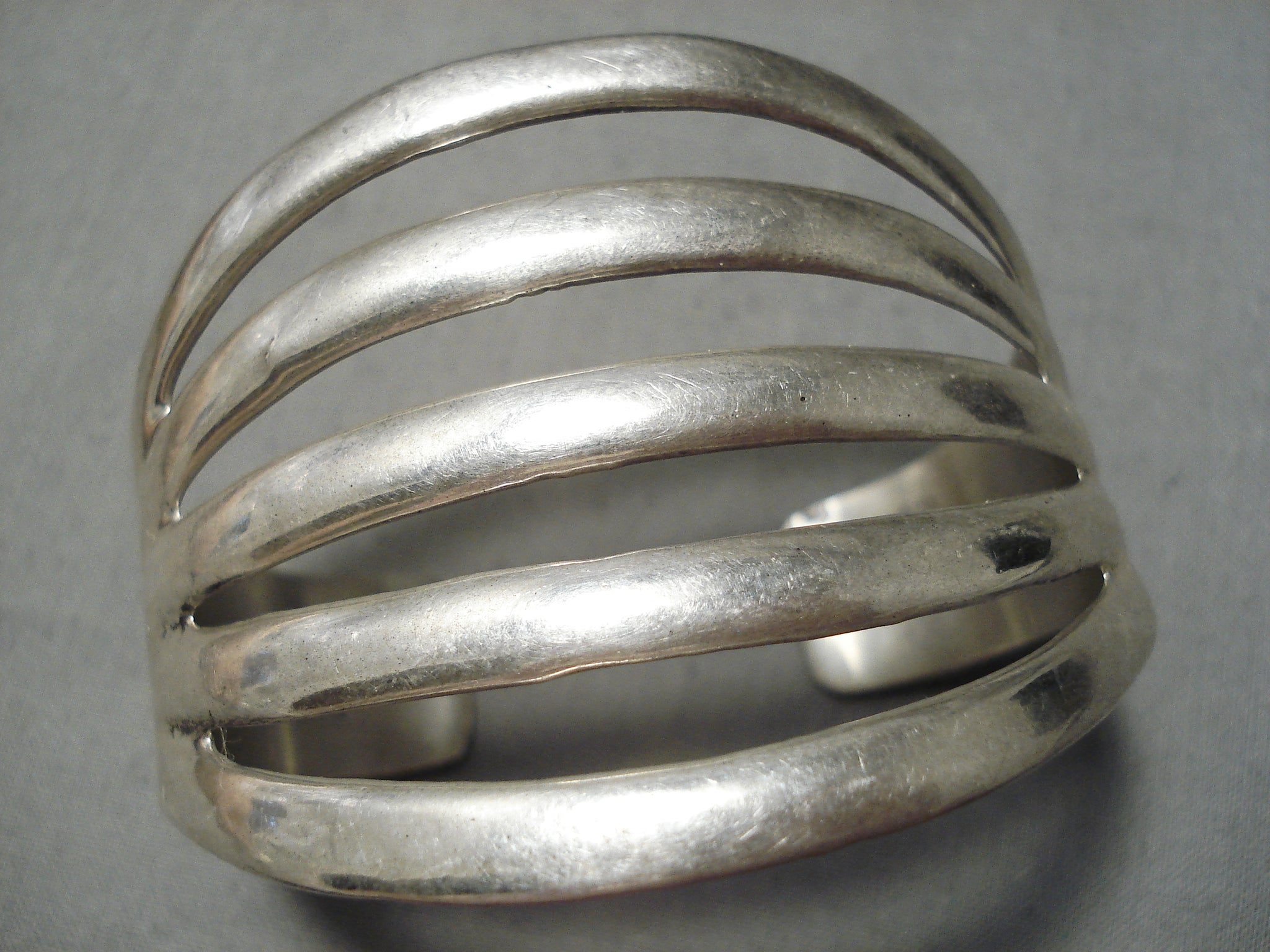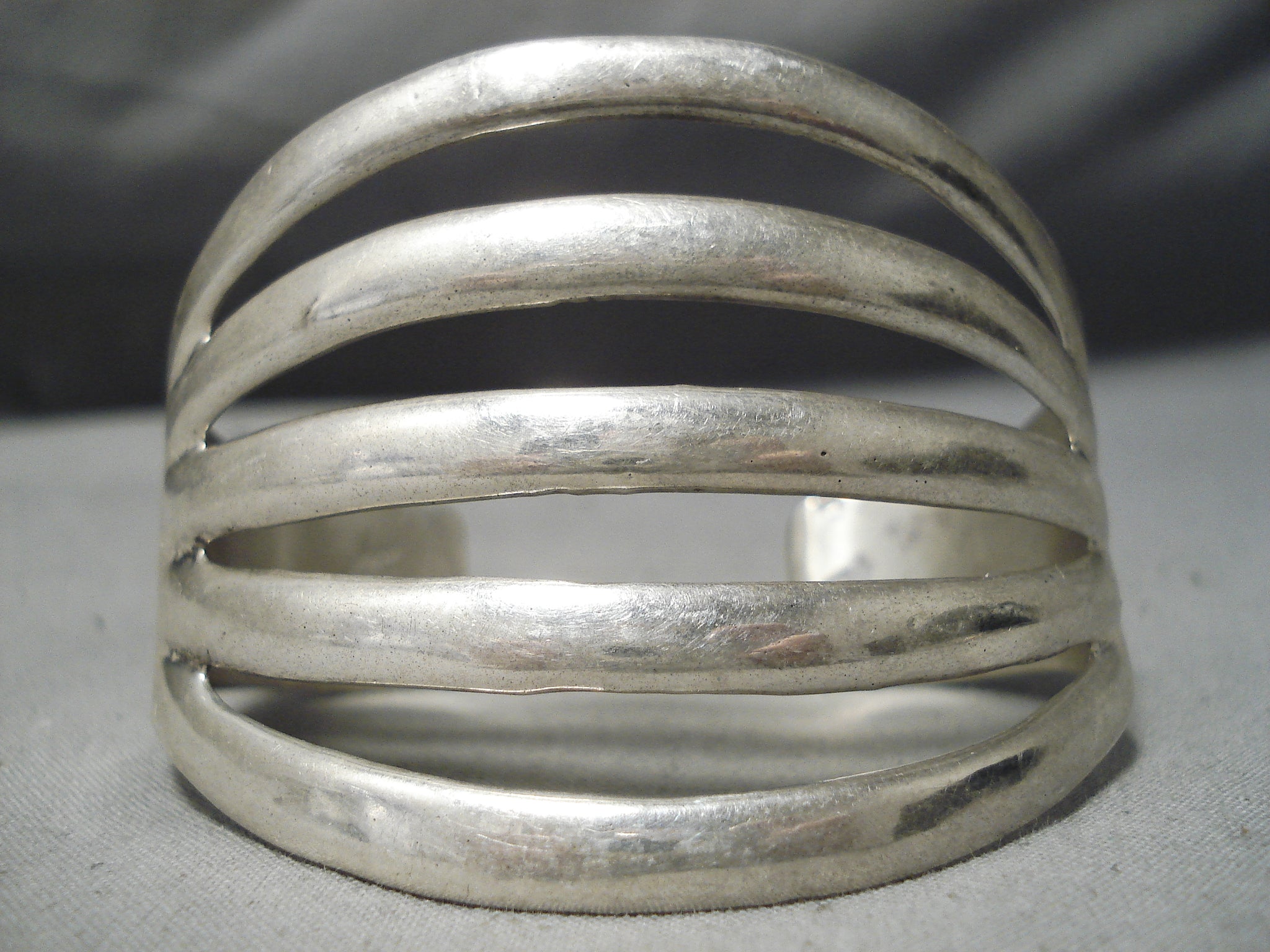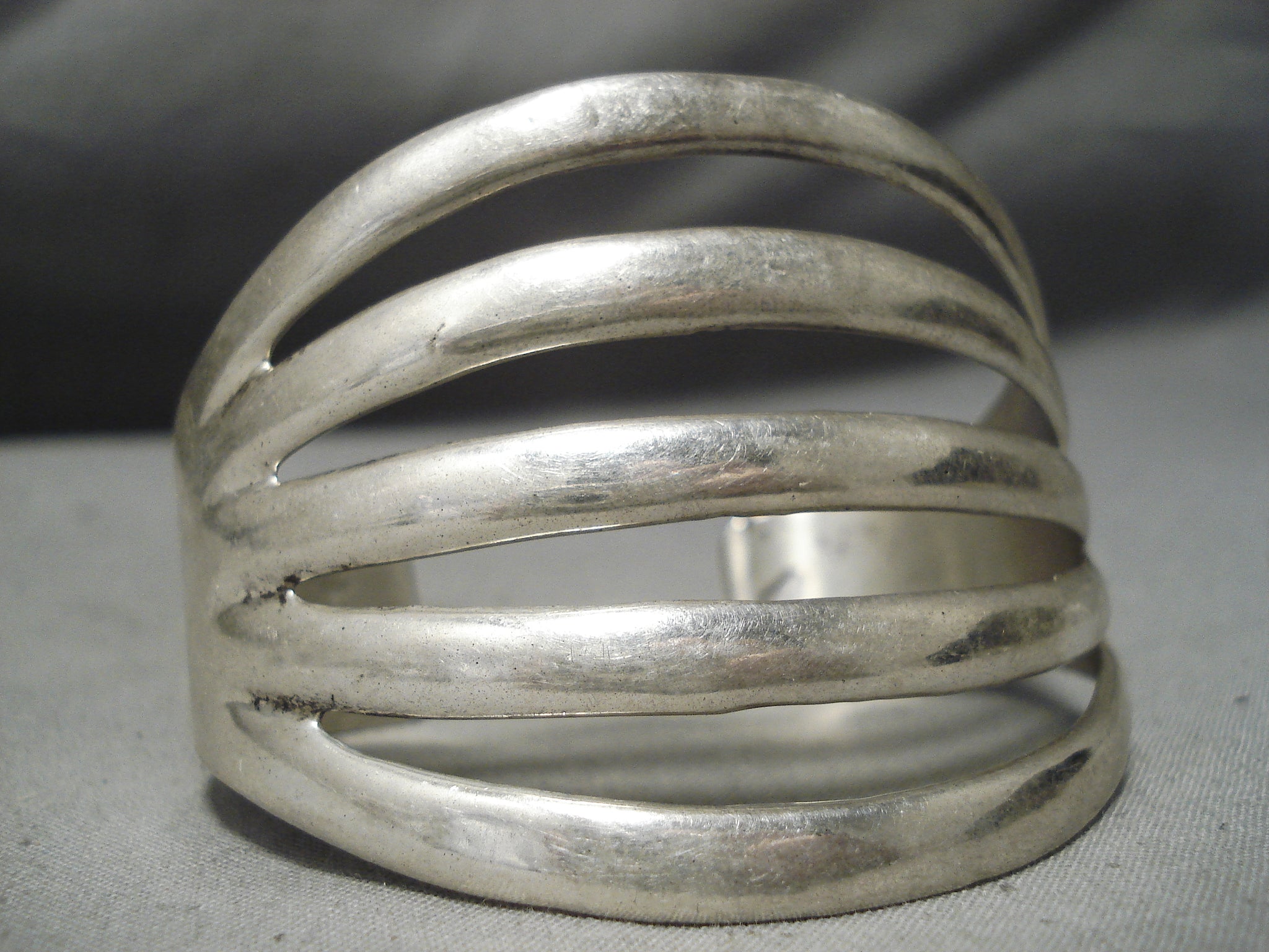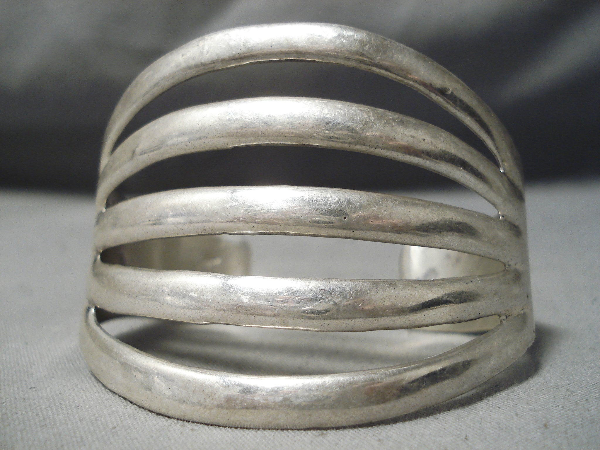 Dramatic Vintage Navajo Sterling Silver Bracelet Native American Old
