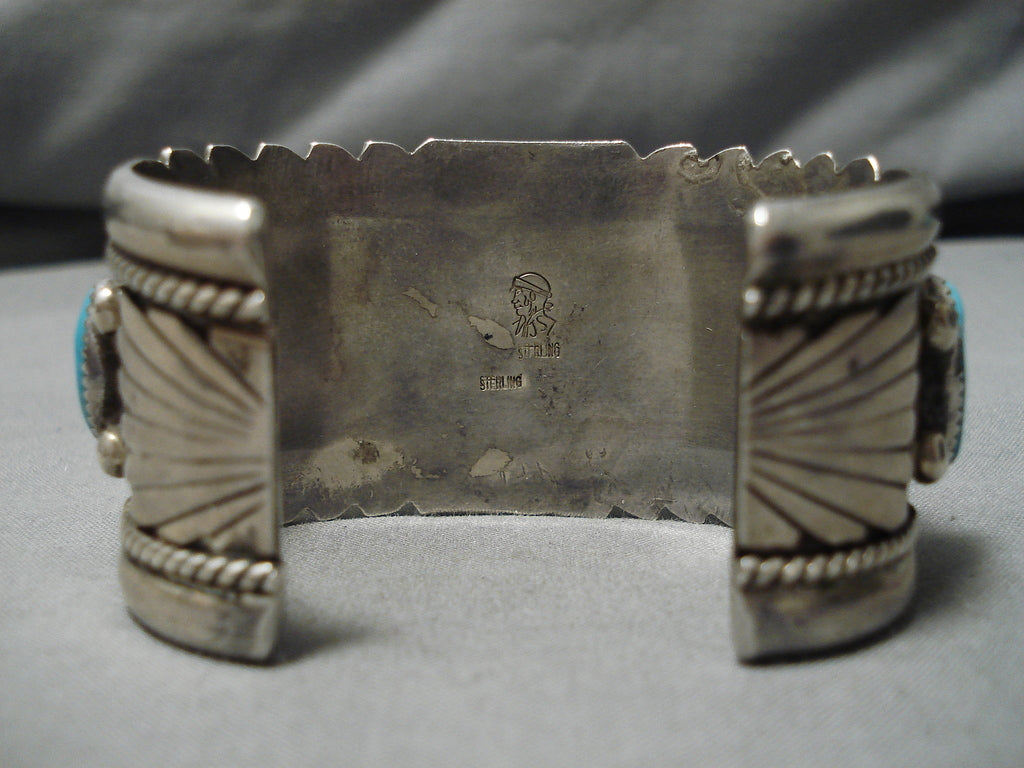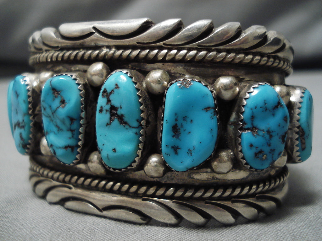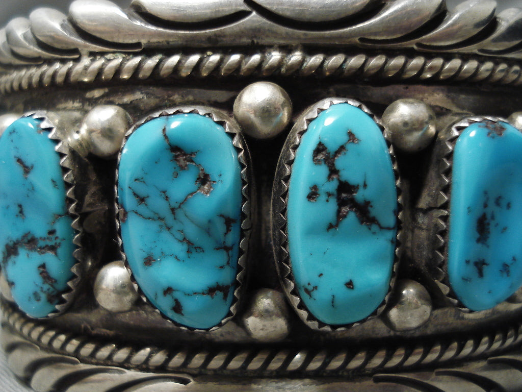 Dramatic Vintage Navajo Turquoise Sterling Silver Native American Bracelet Old