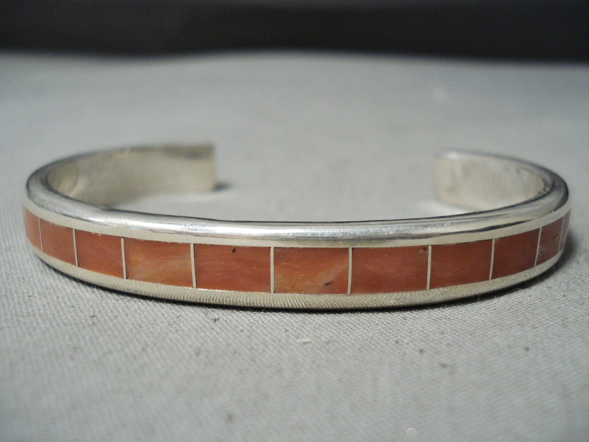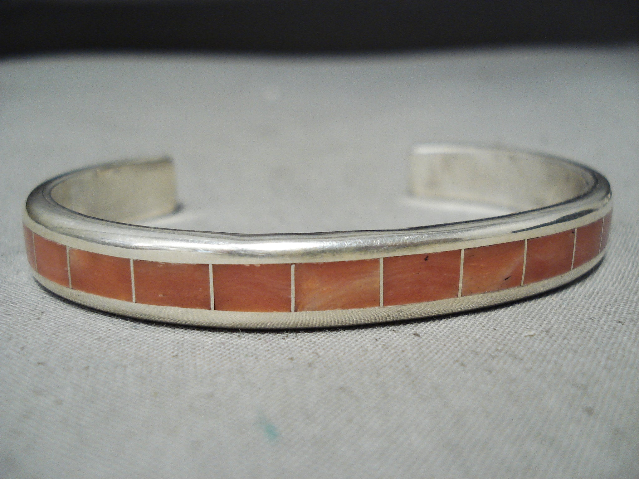 Dramatic Zuni Coral Sterling Silver Bracelet Native American