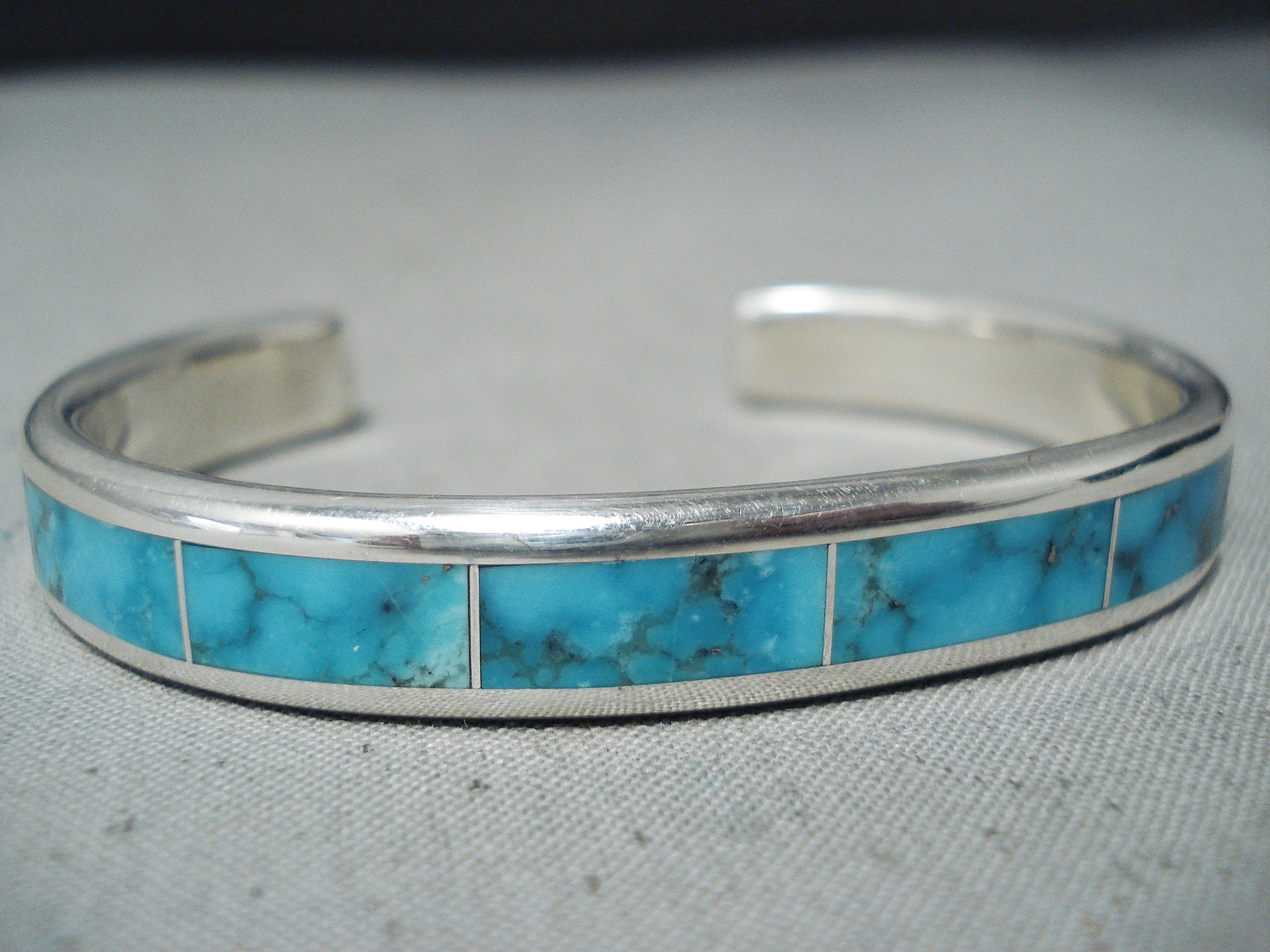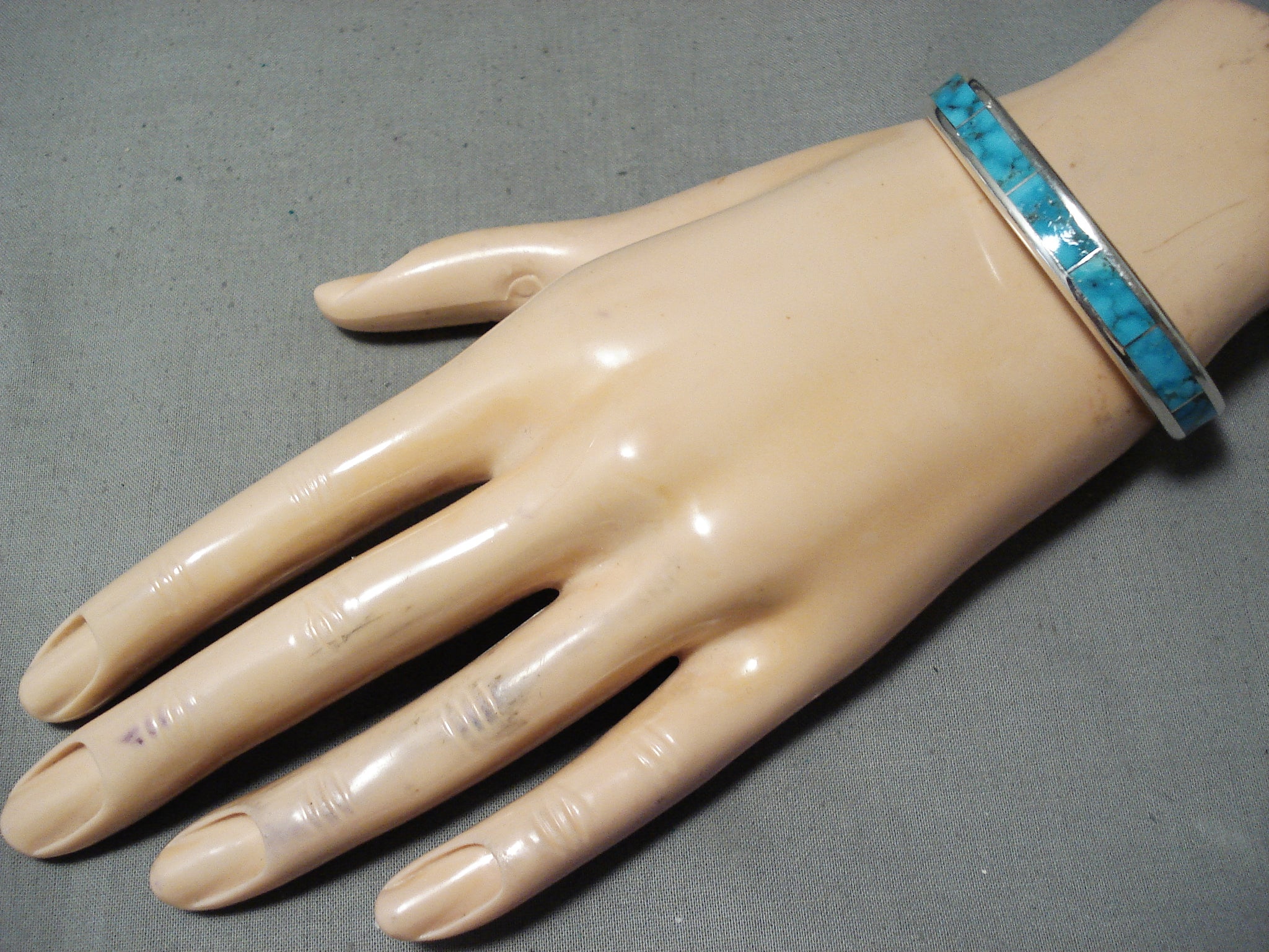 Dramatic Zuni Kingman Turquoise Sterling Silver Bracelet Native American