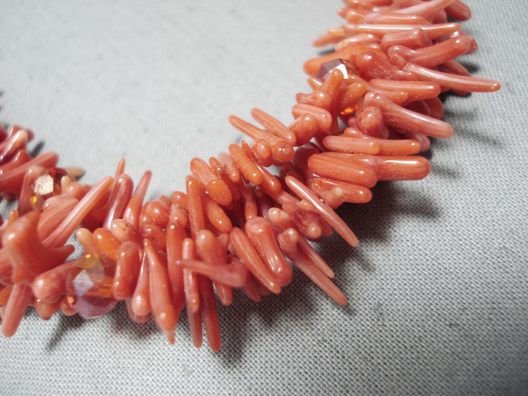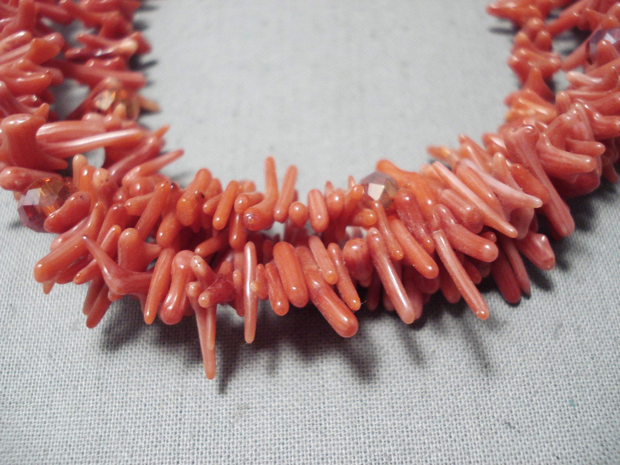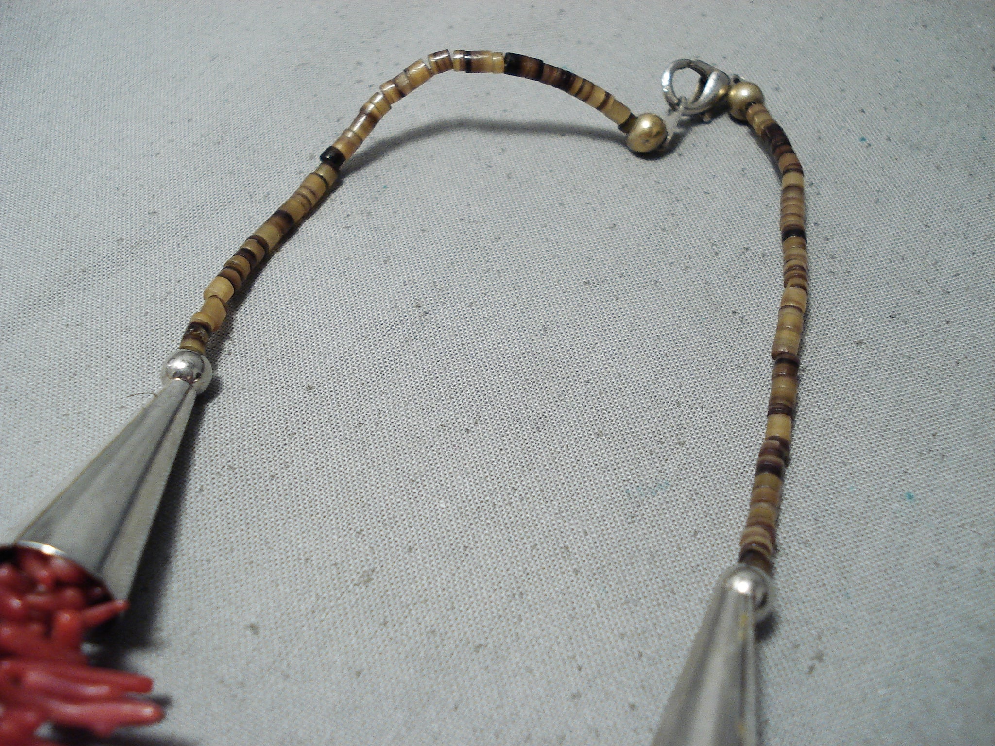 Dynamic Native American Navajo Coral Turquoise Sterling Silver Necklace