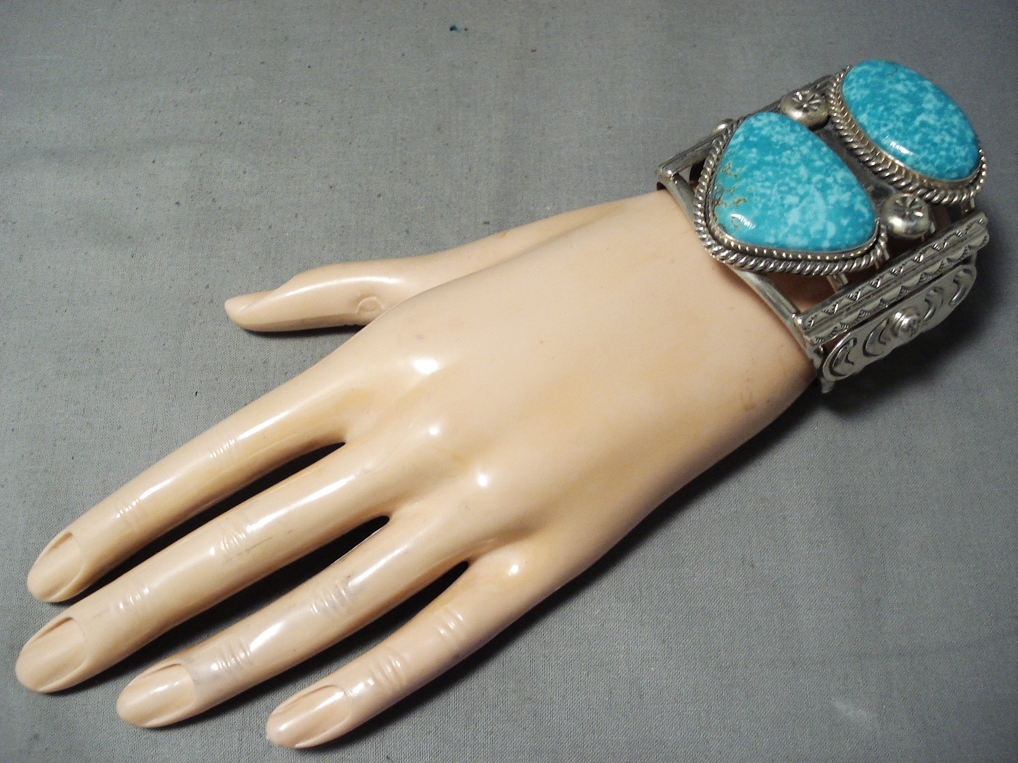 Dynamic Navajo Kingman Turquoise Sterling Silver Bracelet Native American