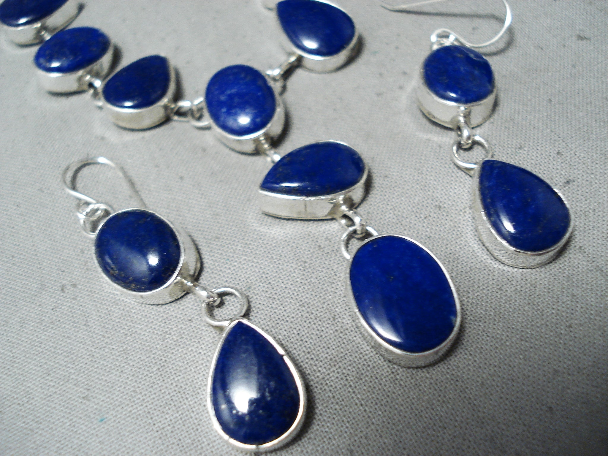 Dynamic Navajo Lapis Sterling Silver Necklace & Earring Set Native American