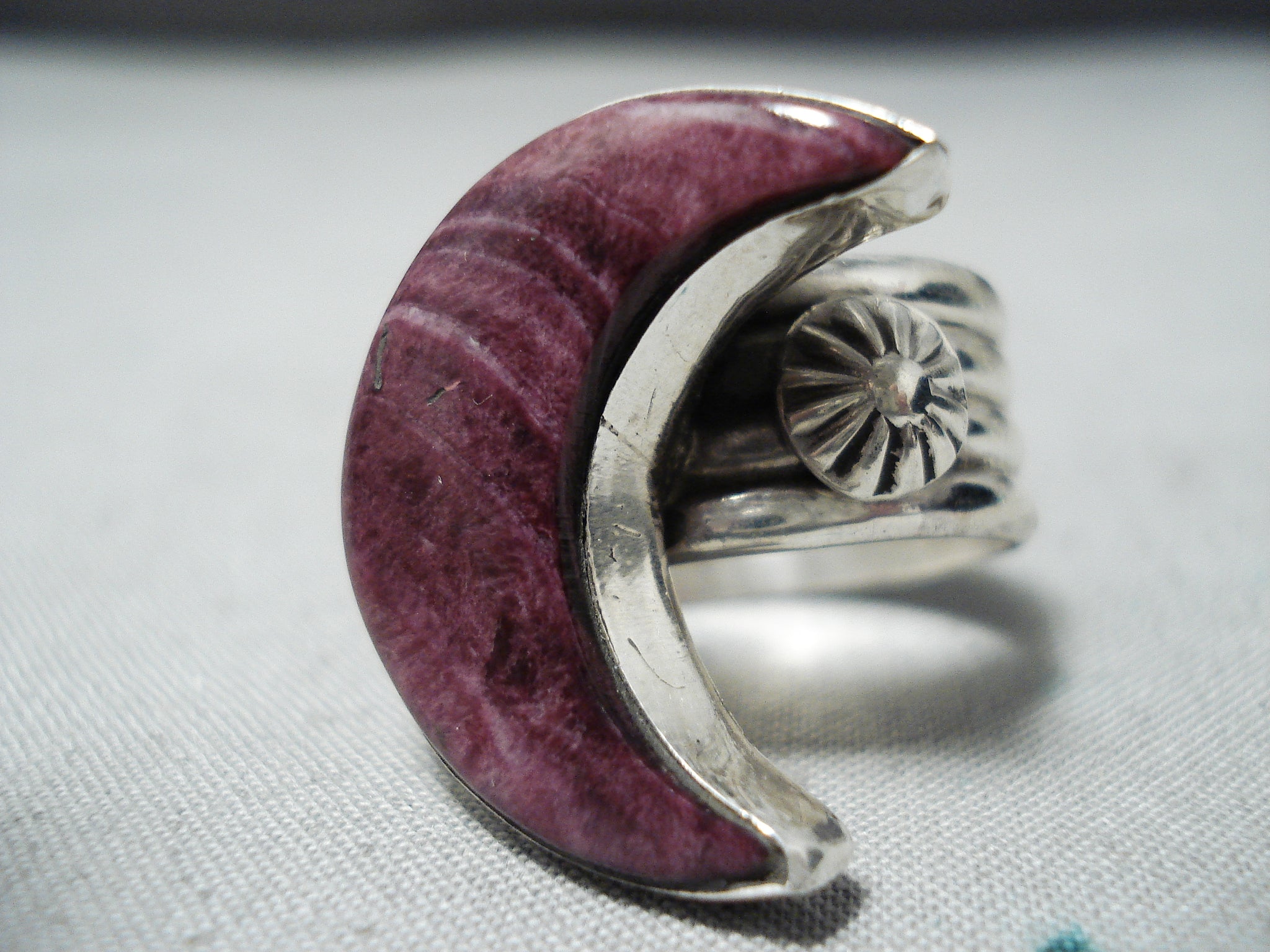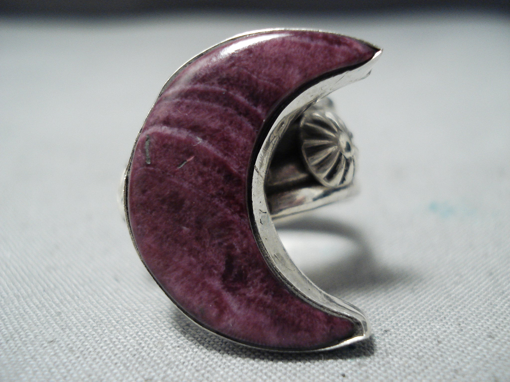 Dynamic Navajo Purple Spiny Oyster Sterling Silver Ring Native American