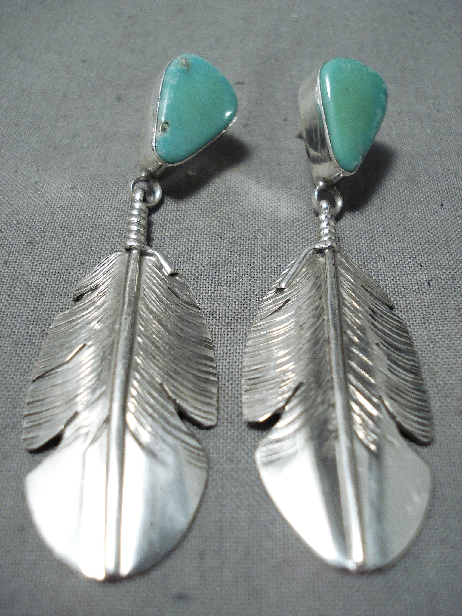 Dynamic Navajo Royston Turquoise Sterling Silver Earrings Native American
