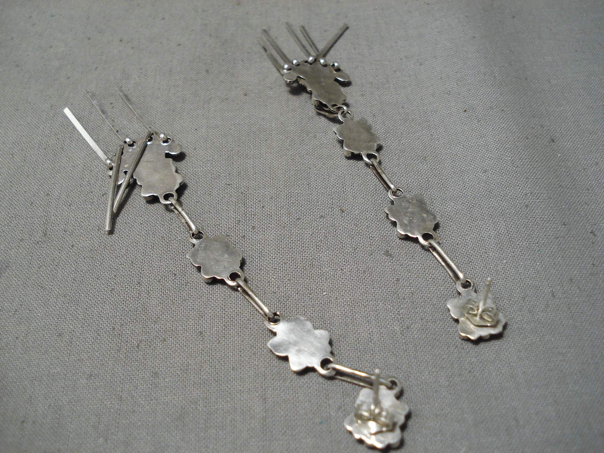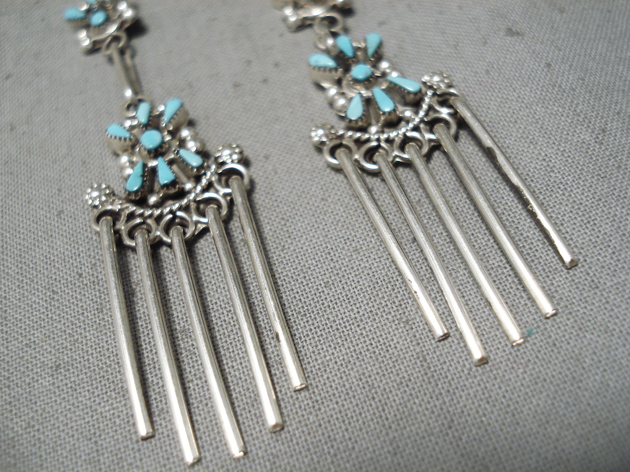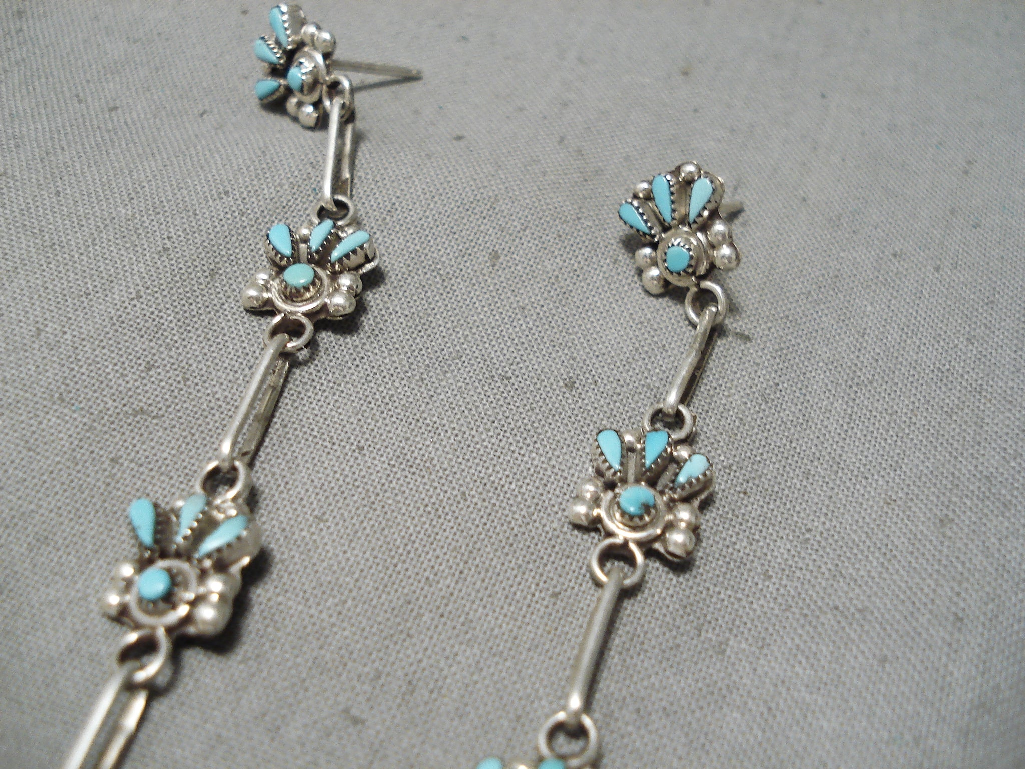 Dynamic Vintage Native American Zuni Turquoise Sterling Silver Dangle Earrings Old
