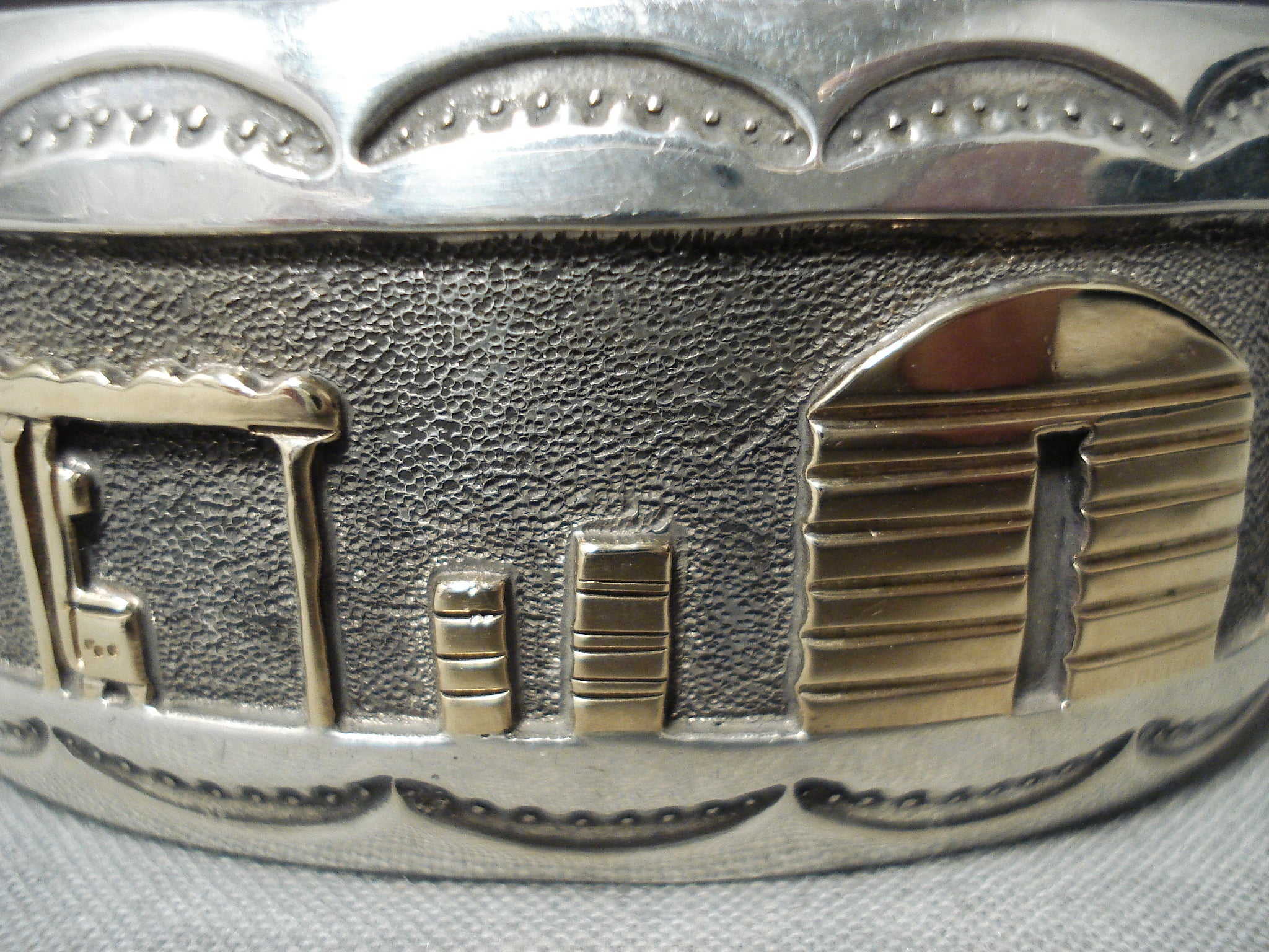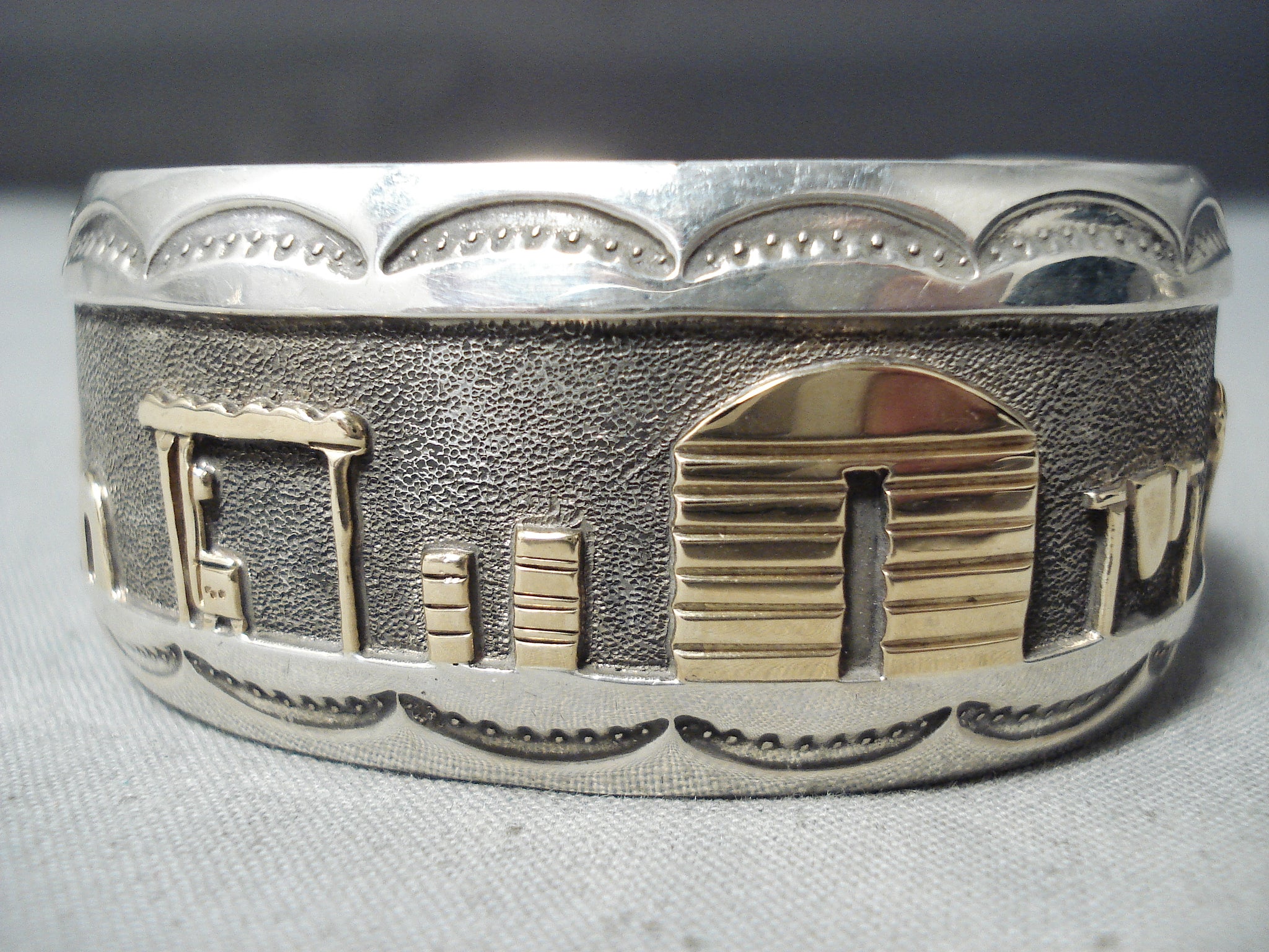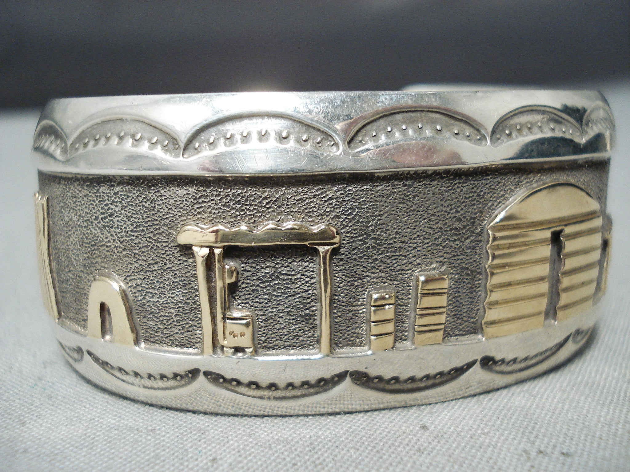 Dynamic Vintage Zuni Sterling Silver & 14k Gold Bracelet Native American Old