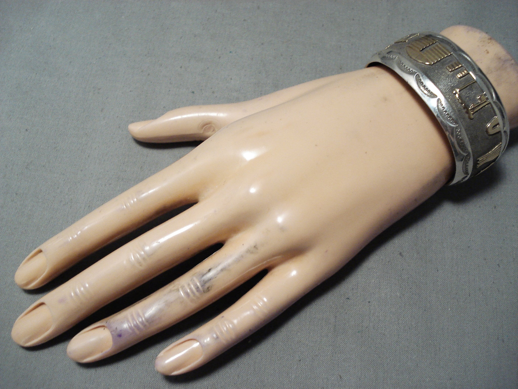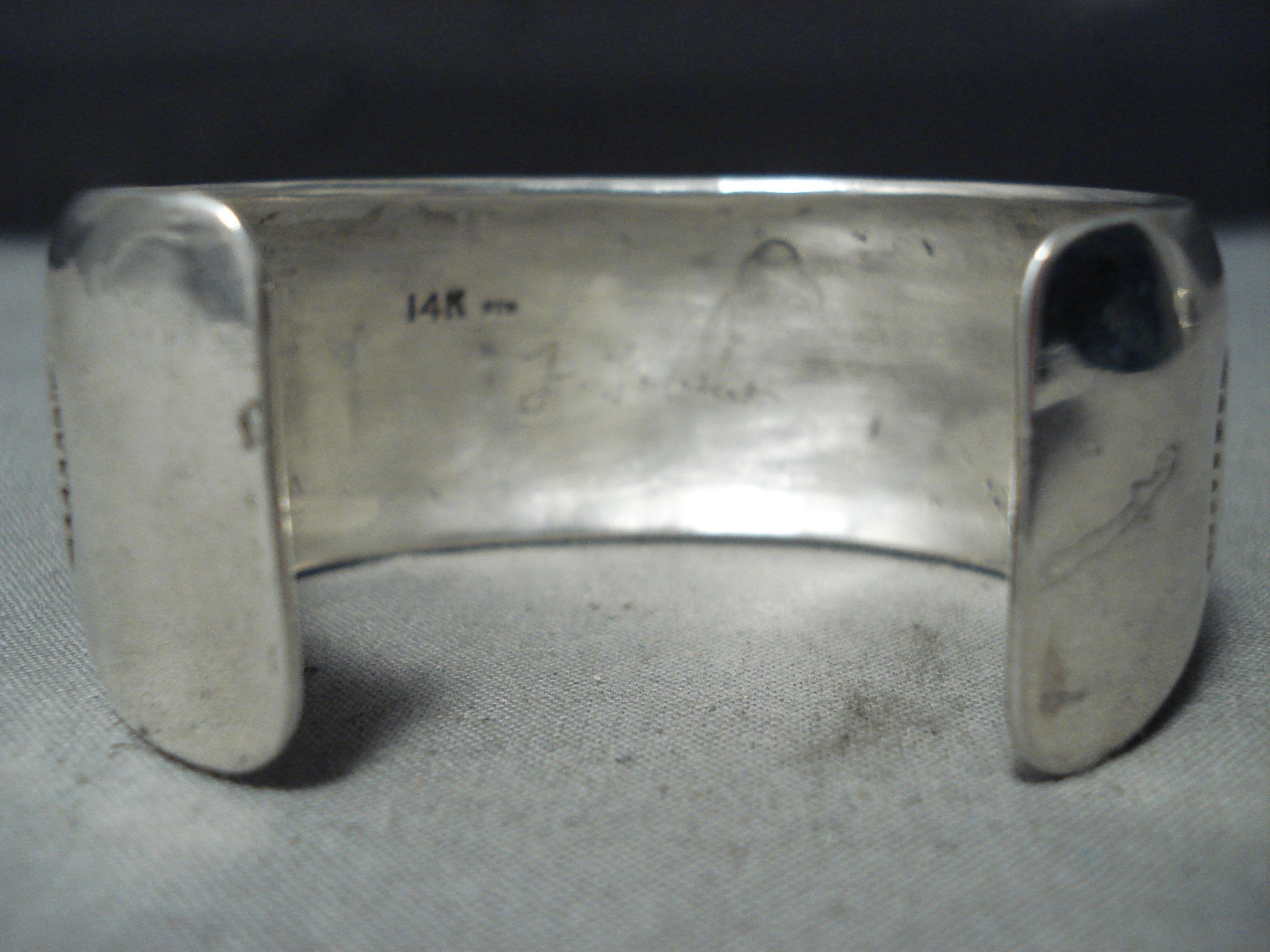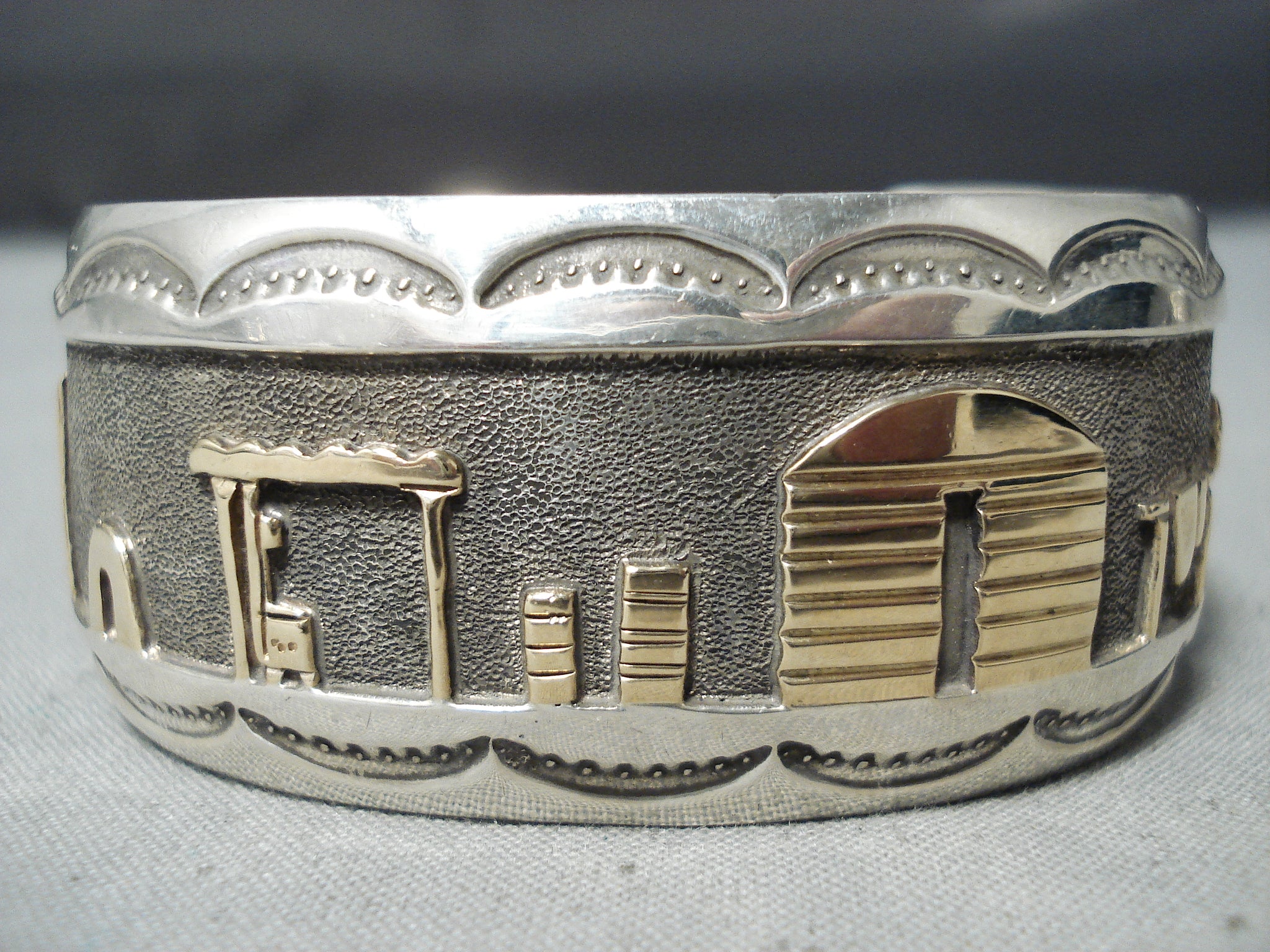 Dynamic Vintage Zuni Sterling Silver & 14k Gold Bracelet Native American Old