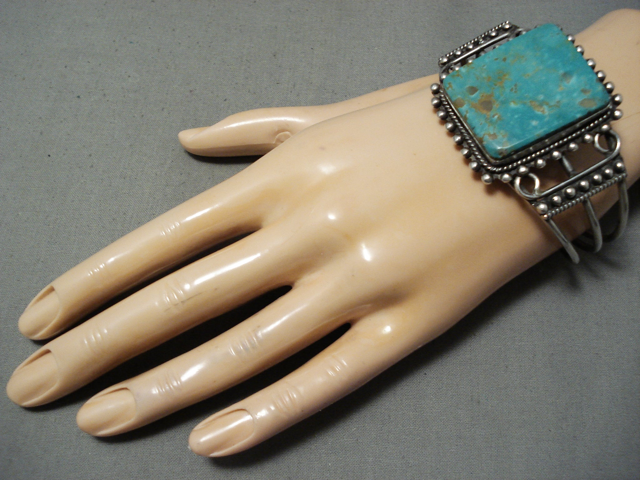 Dynamite Vintage Native American Navajo Squared Royston Turquoise Sterling Silver Bracelet