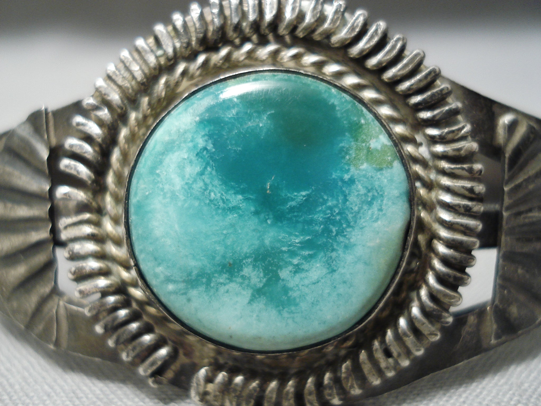 Earlier 1900's Vintage Native American Navajo Carico Lake Turquoise Sterling Silver Bracelet Old