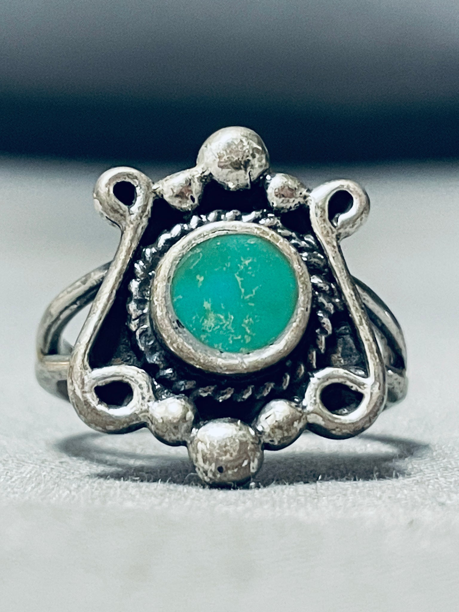 Earlier Vintage Native American Navajo Cerrillos Turquoise Sterling Silver Ring Old