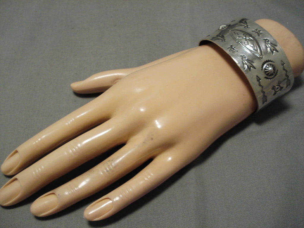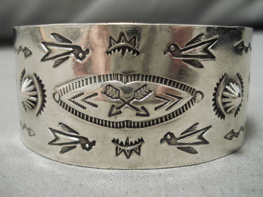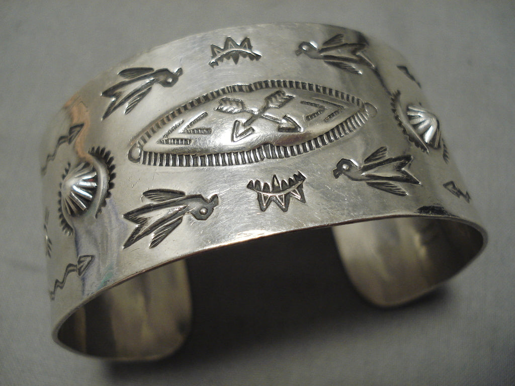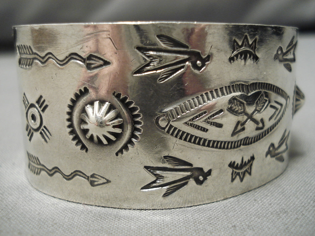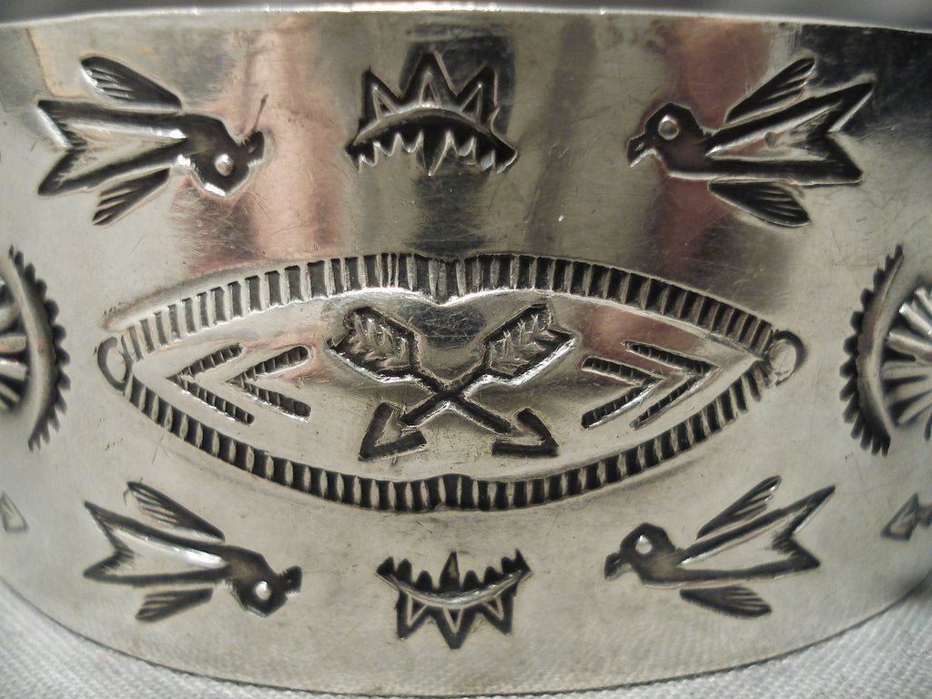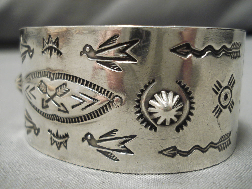 Early 1900's Hand Wrought Vintage Native American Navajo Sterling Silver Bracelet Old