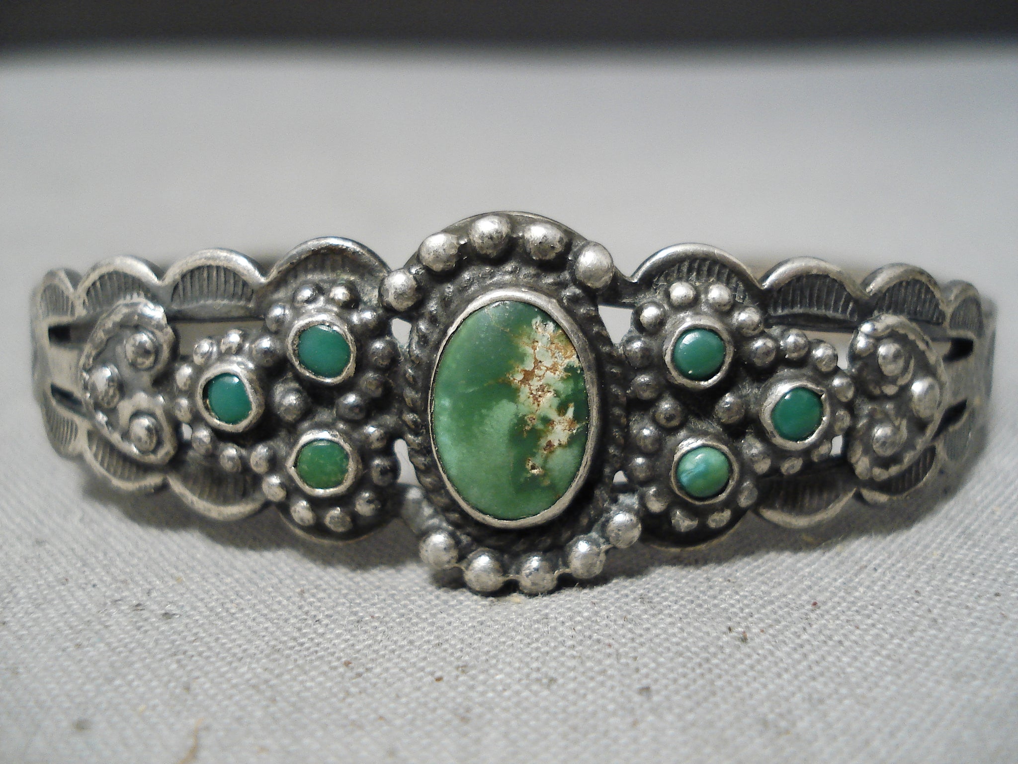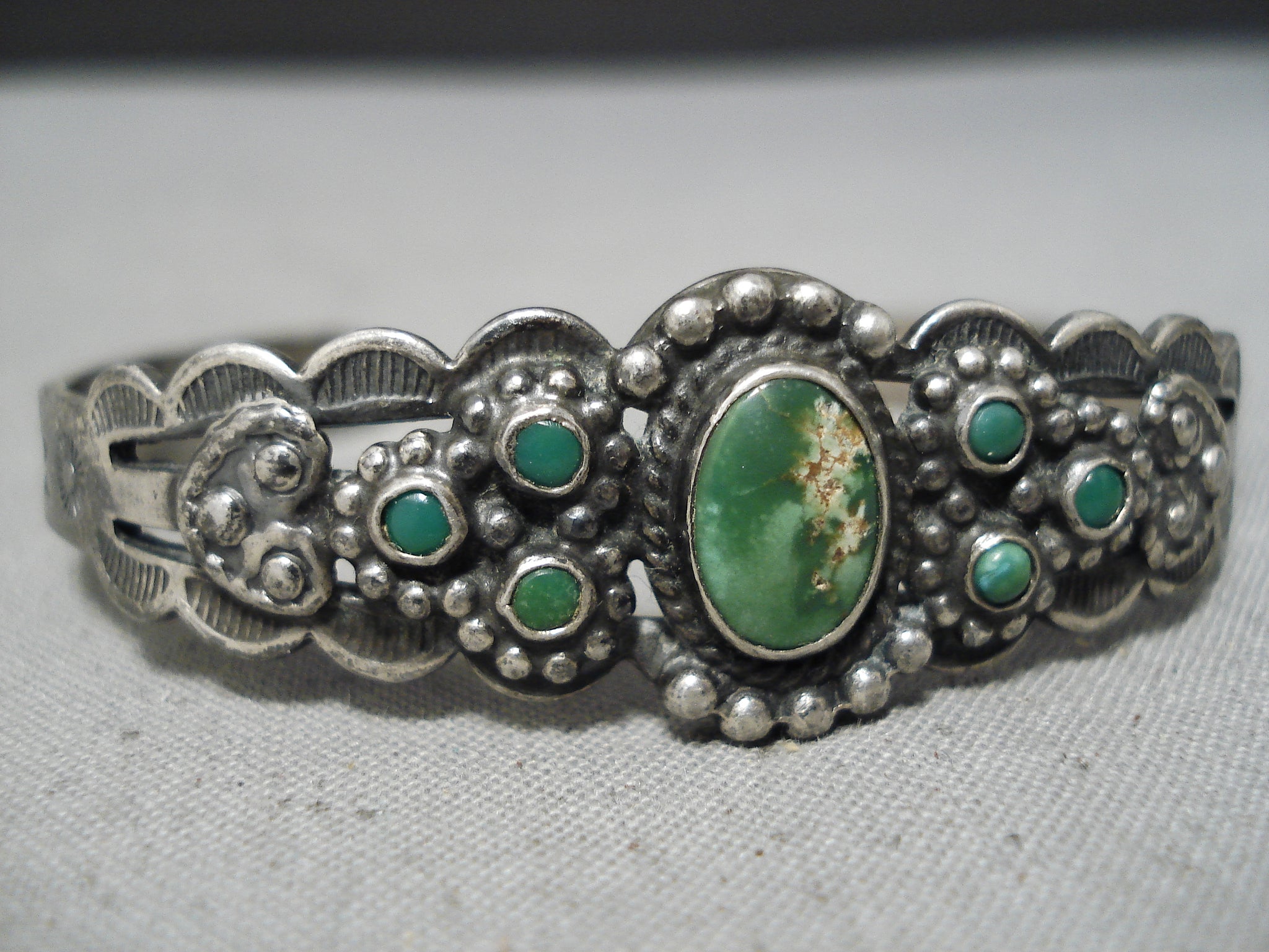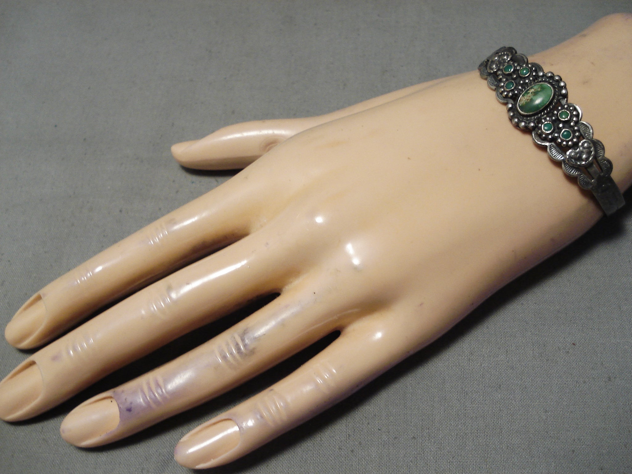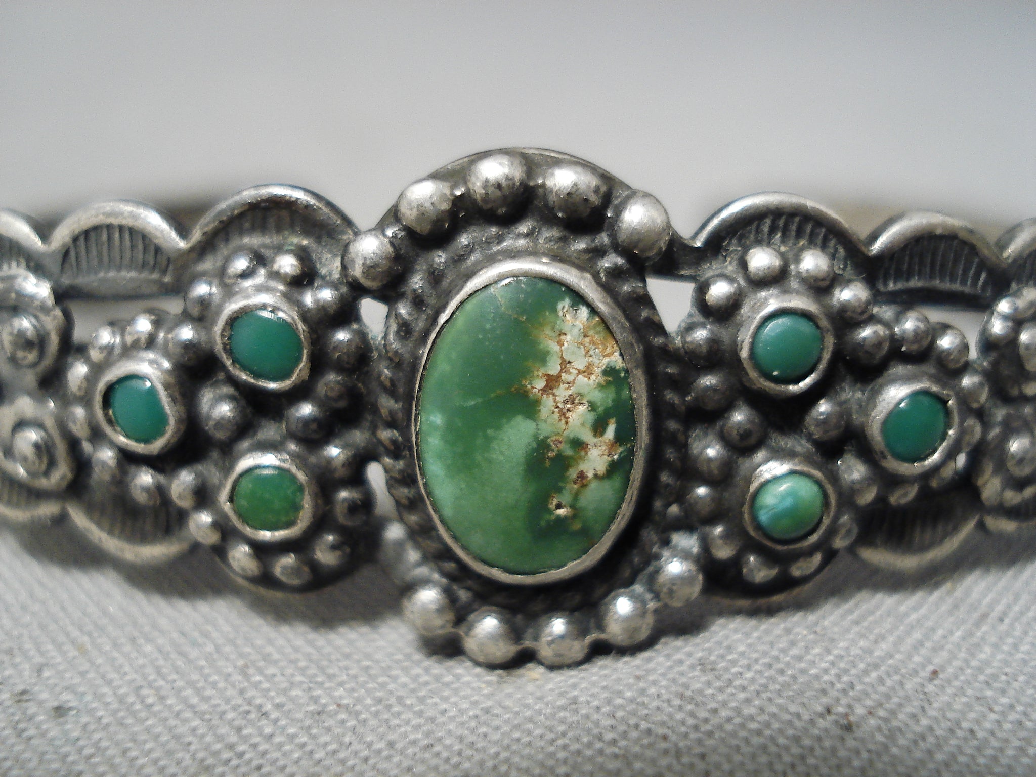 Early 1900's Vintage Native American Navajo Cerrillos Turquoise Sterling Silver Bracelet Old