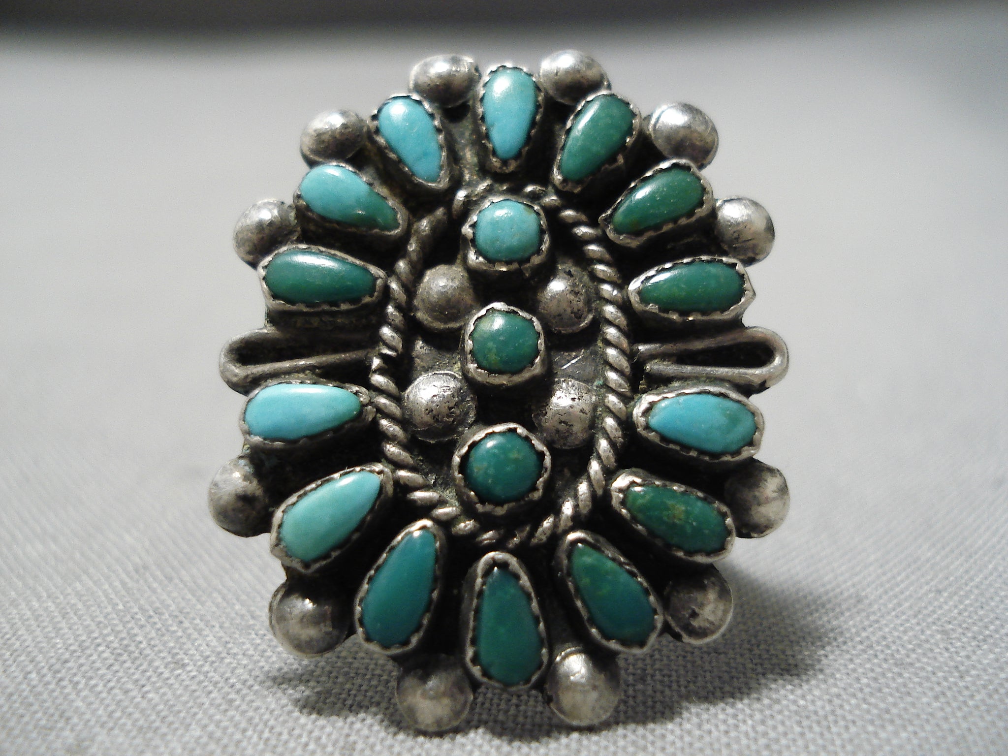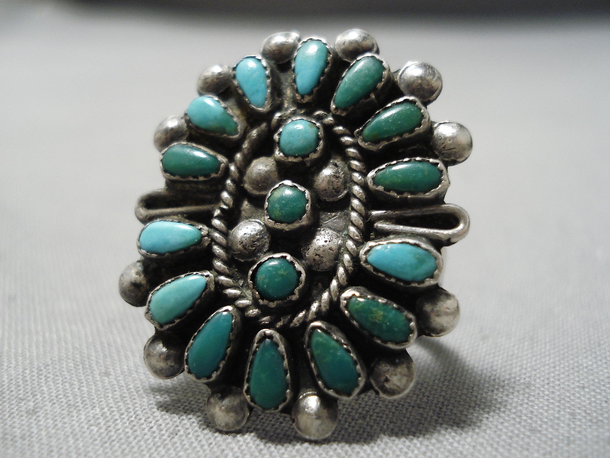 Early 1900's Vintage Native American Navajo Cerrillos Turquoise Sterling Silver Ring Old