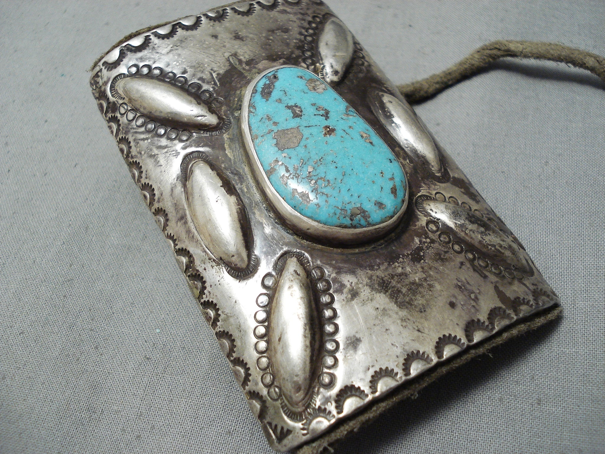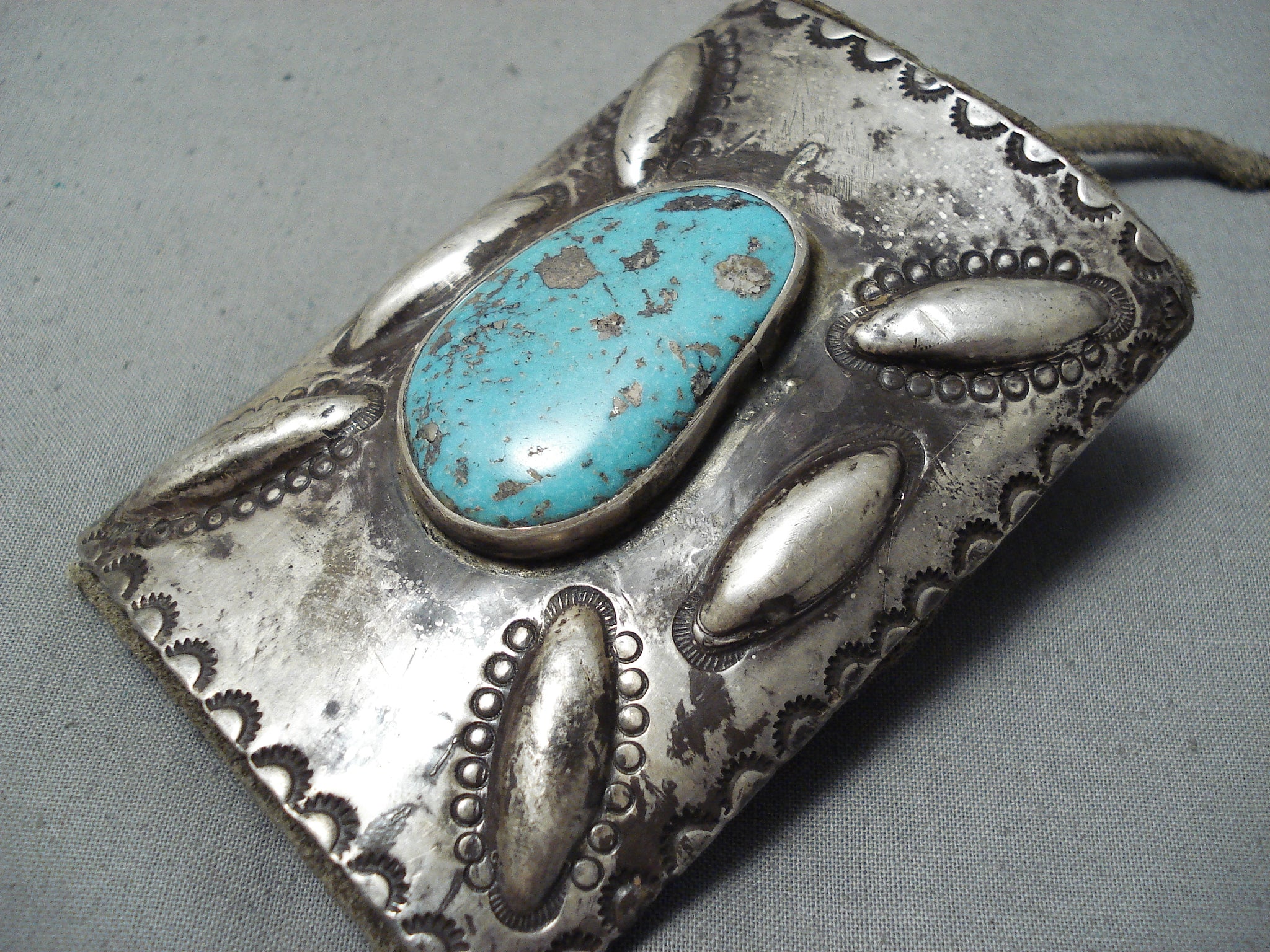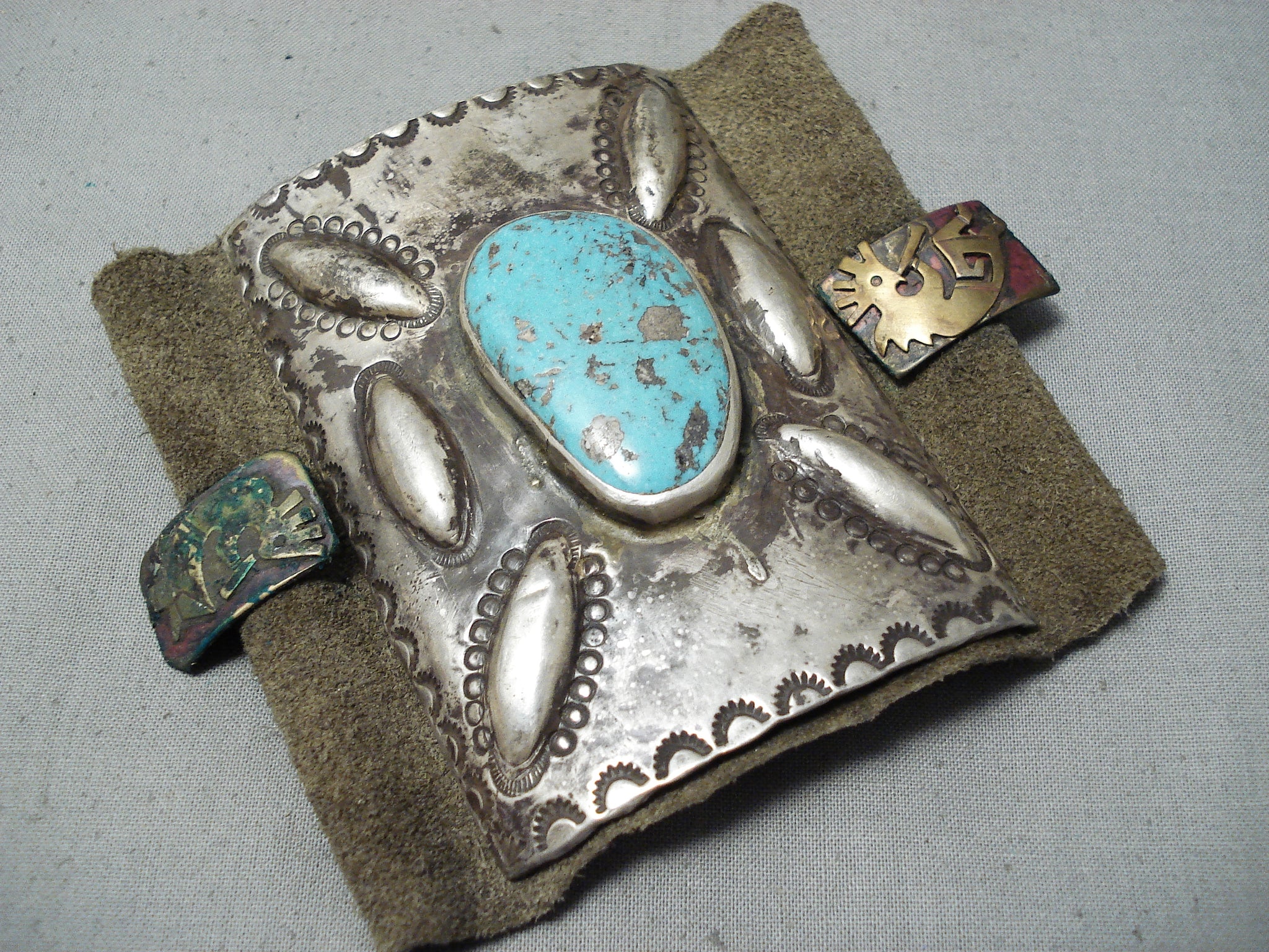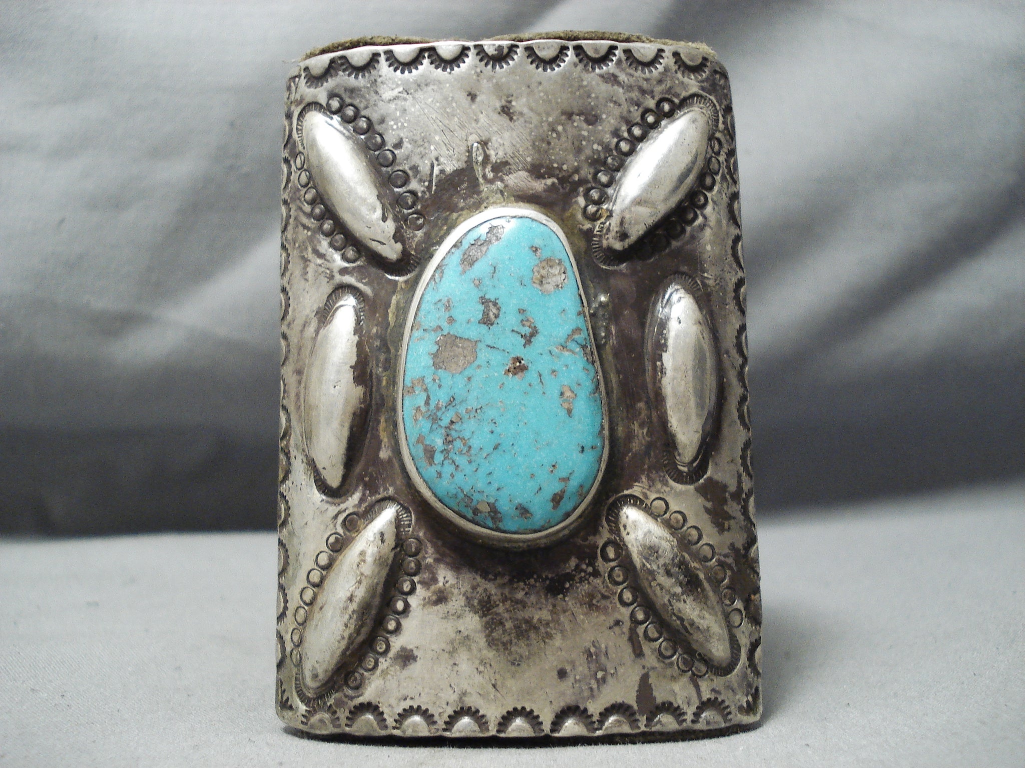Early 1900's Vintage Native American Navajo Turquoise Sterling Silver Bracelet Bowguard Old