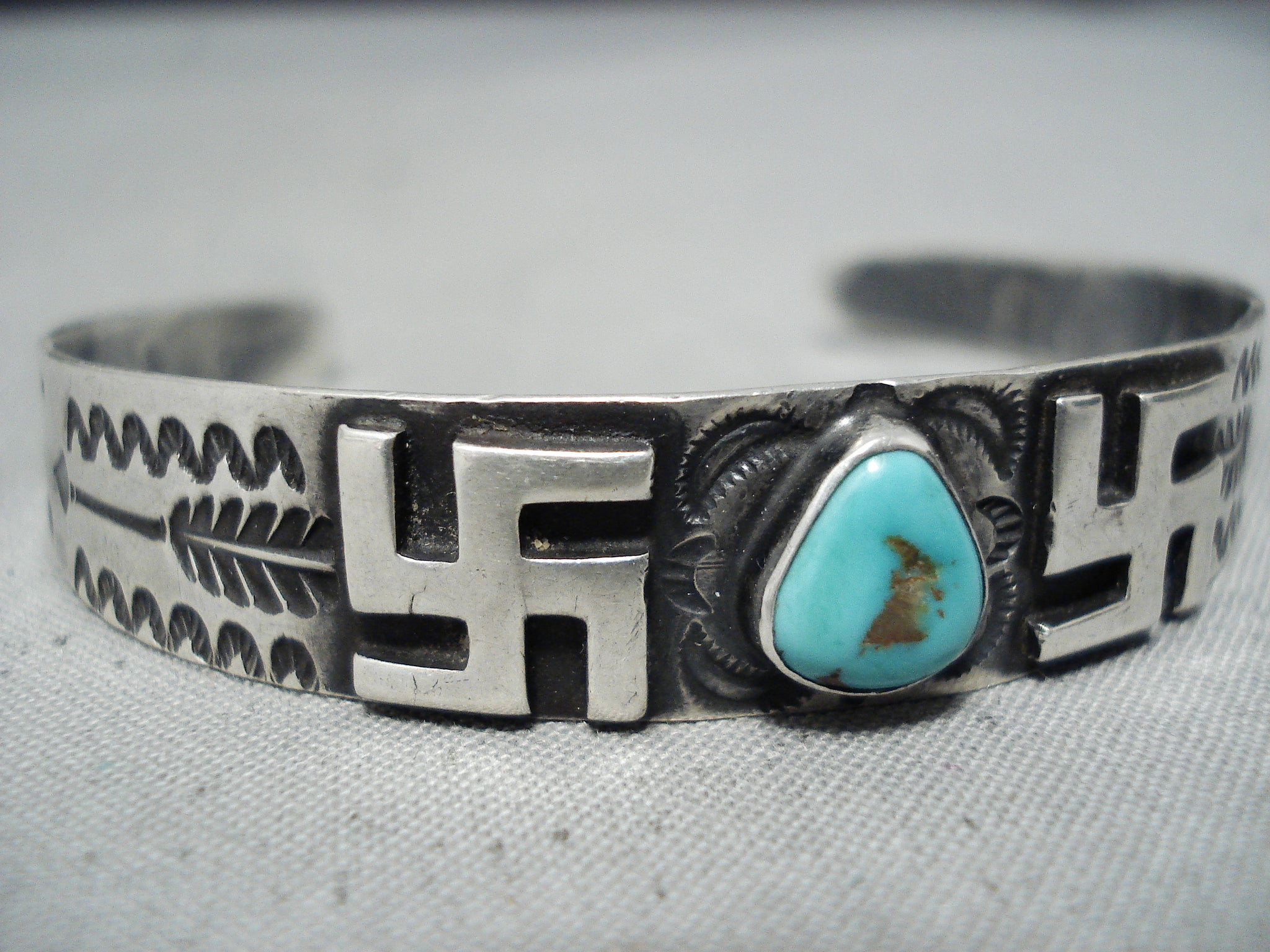 Early 1900's Vintage Native American Navajo Whirling Logs Turquoise Sterling Silver Bracelet