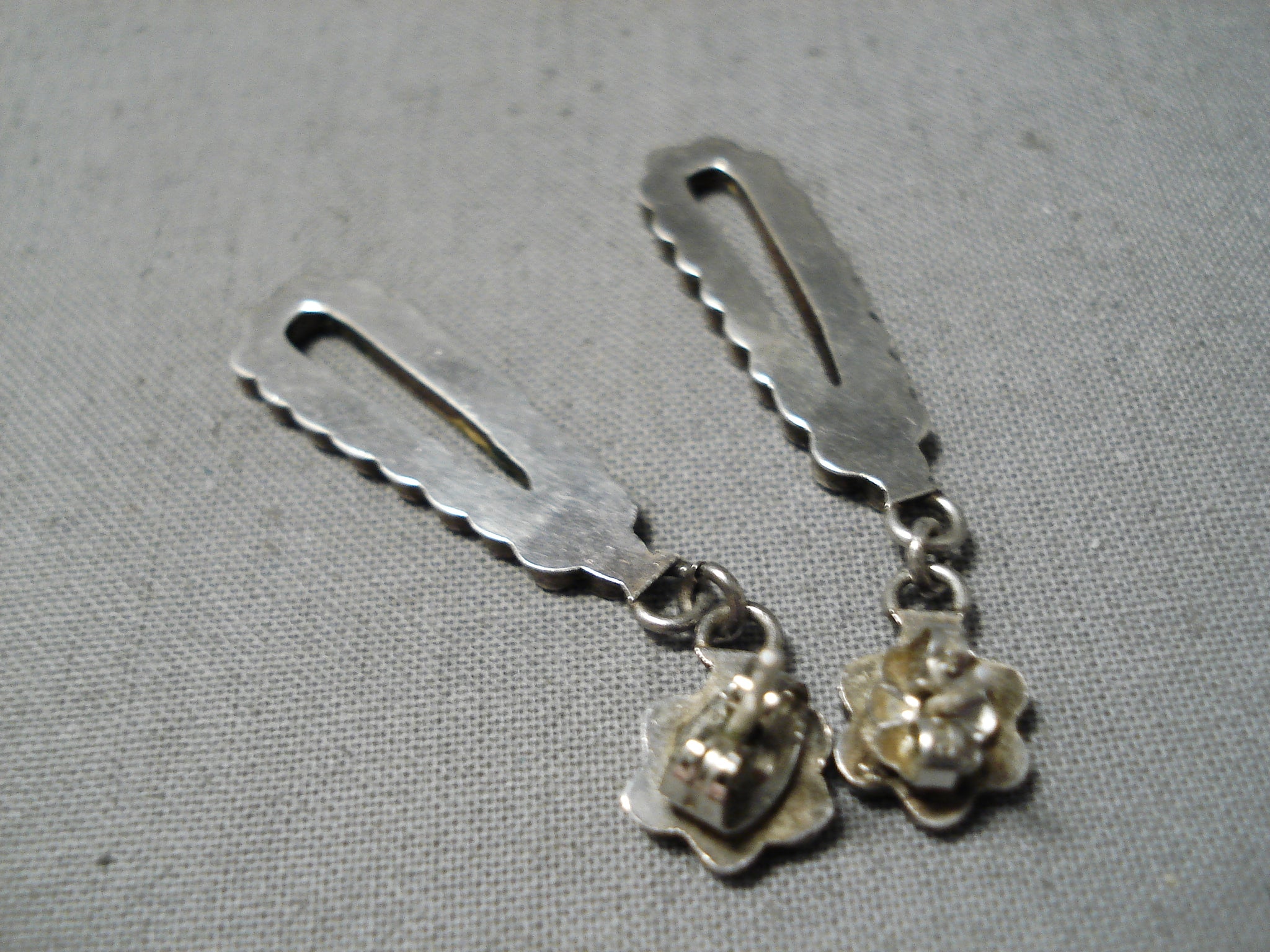 Early 1900's Vintage Native American Zuni Snake Eyes Turquoise Sterling Silver Earrings Old