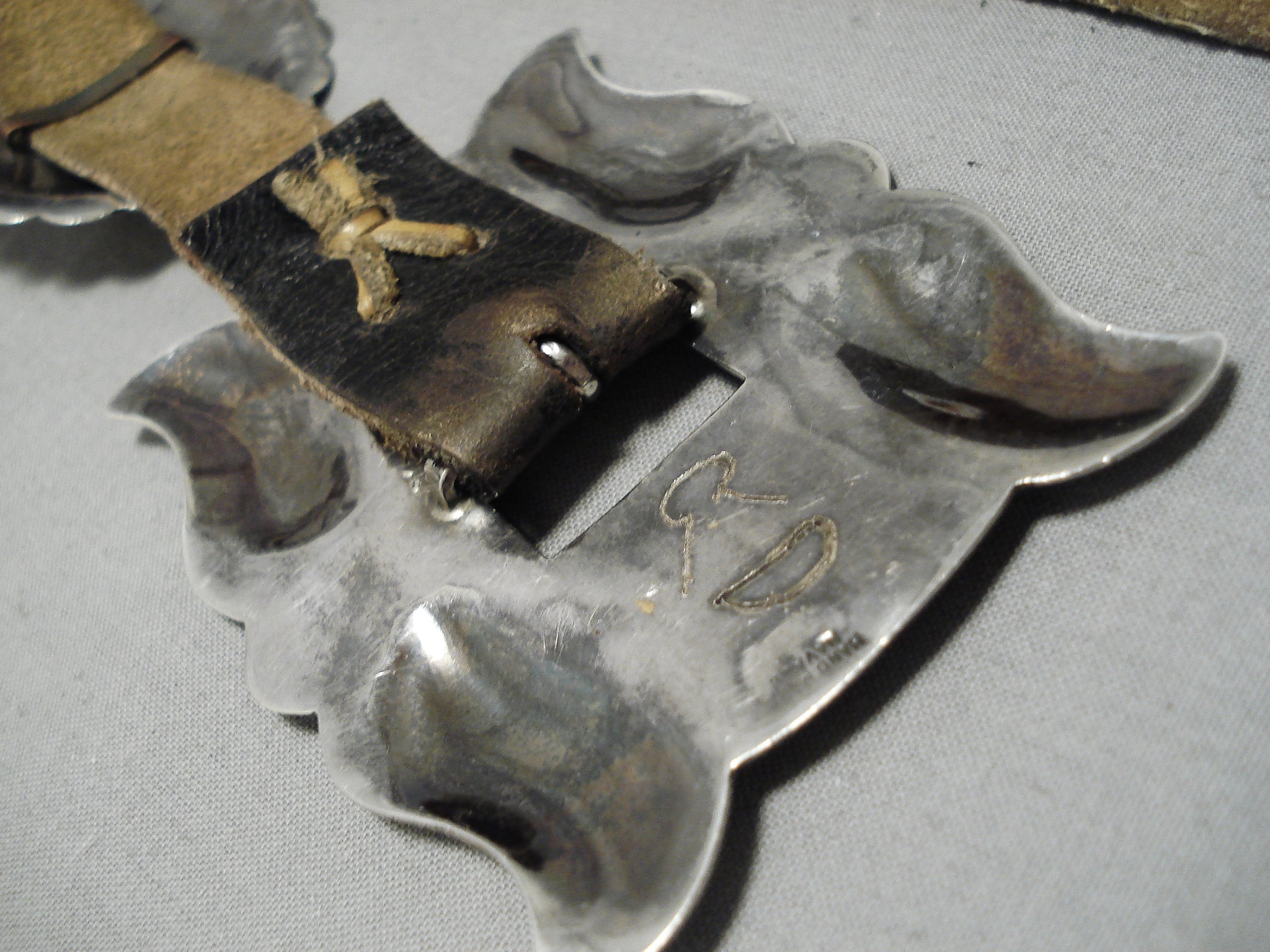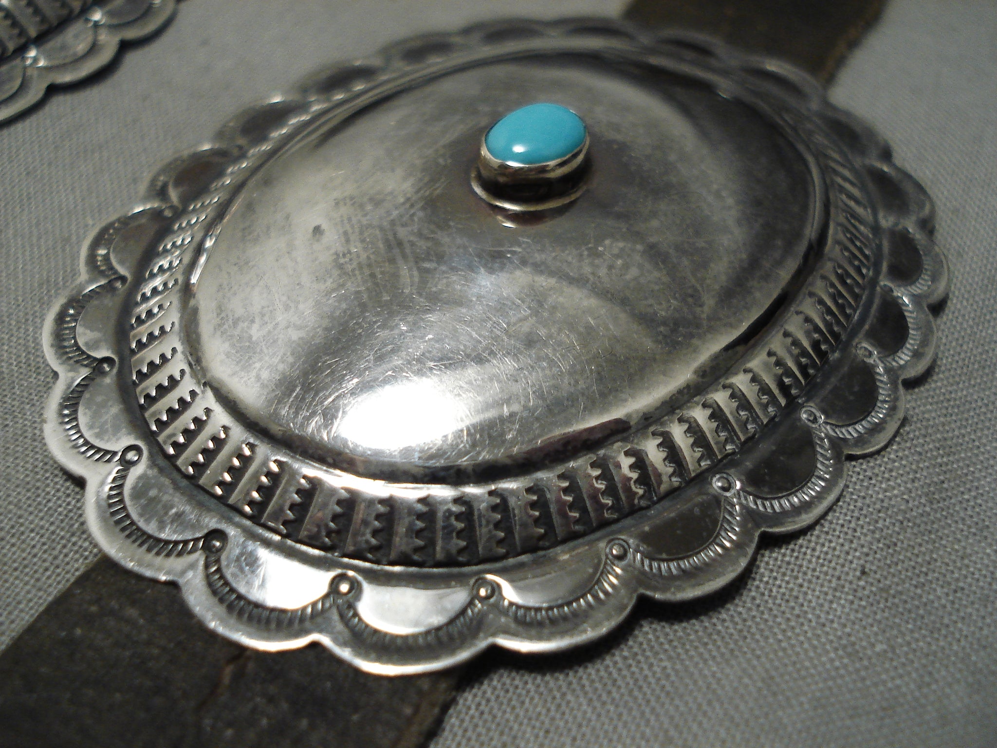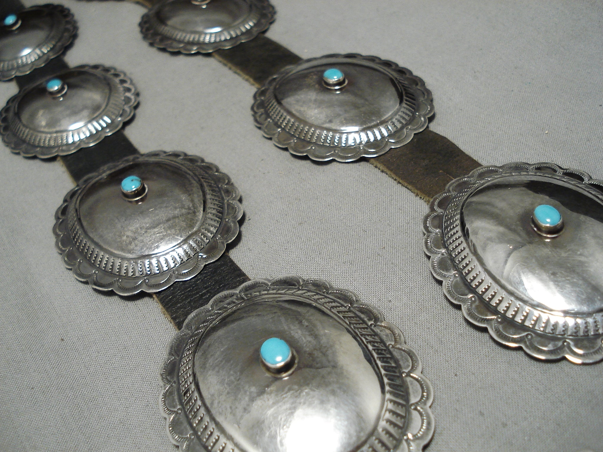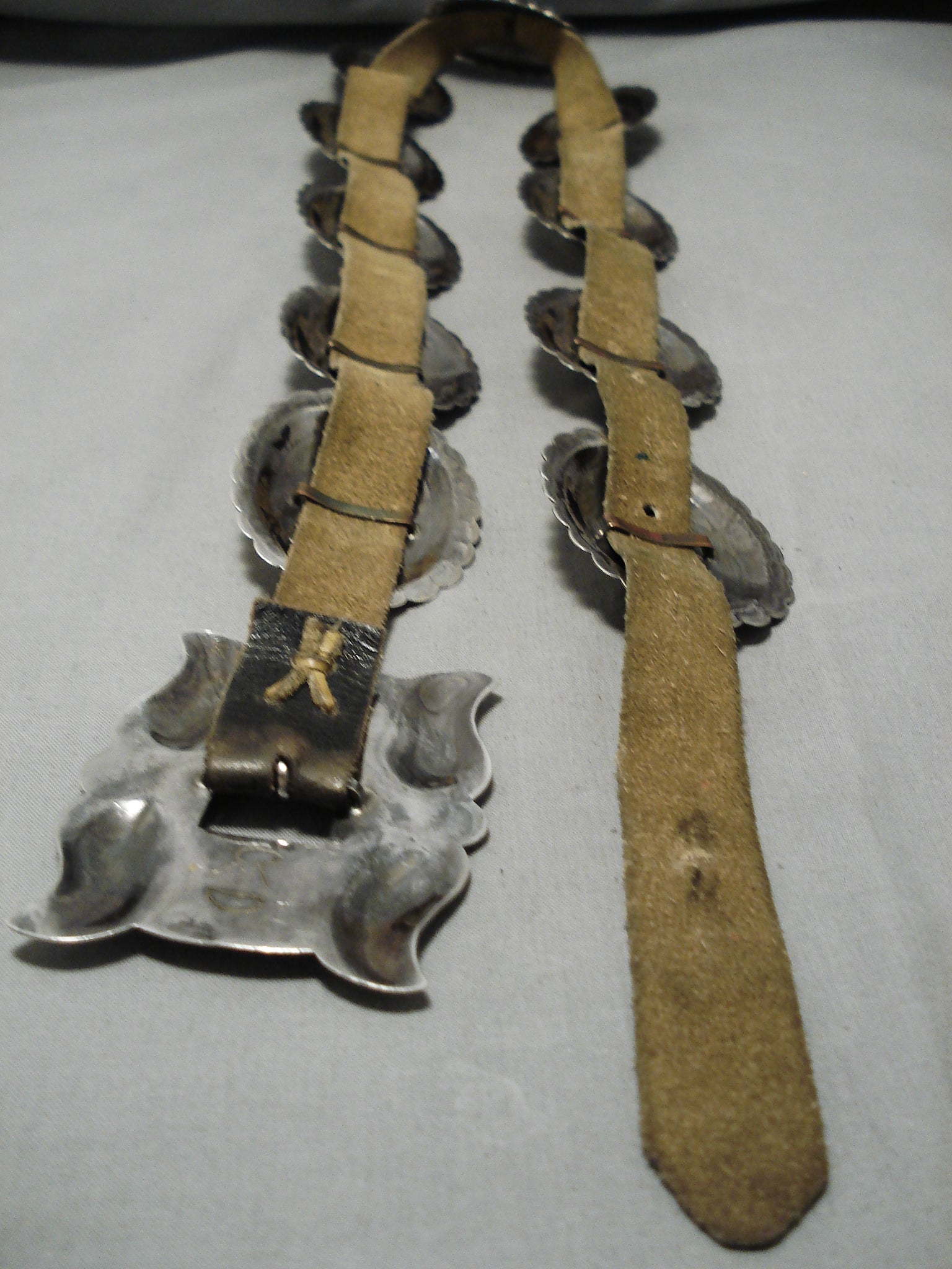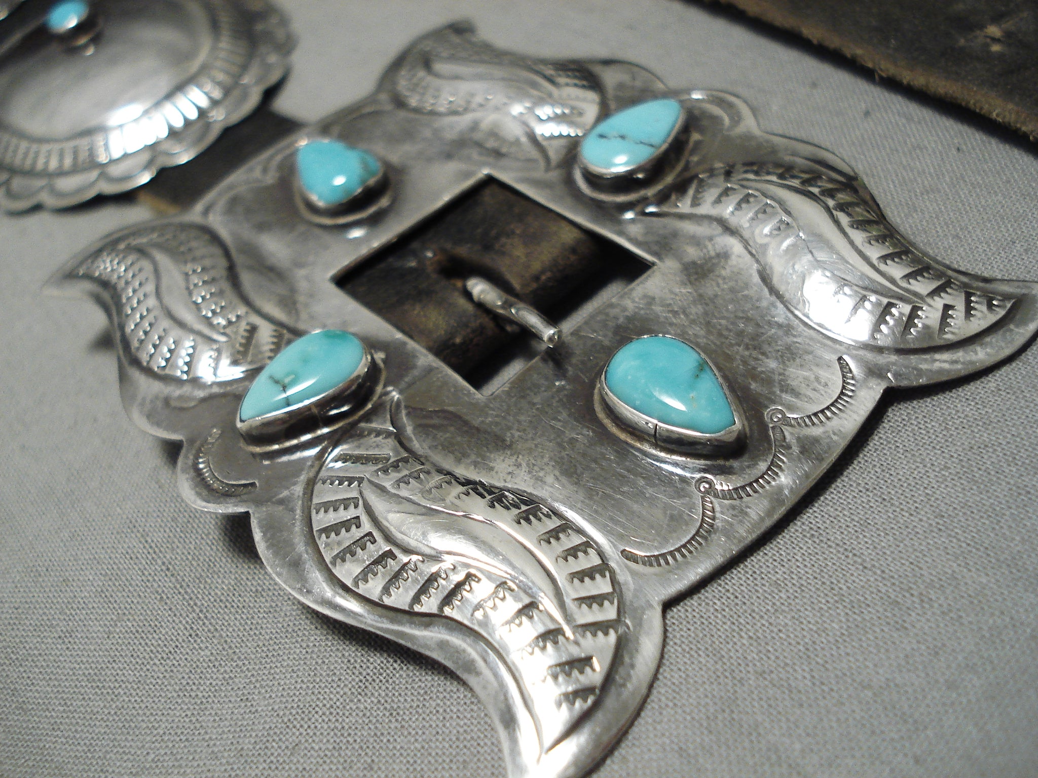 Early Hand Wrought Vintage Native American Navajo Turquoise Sterling Silver Concho Belt Old