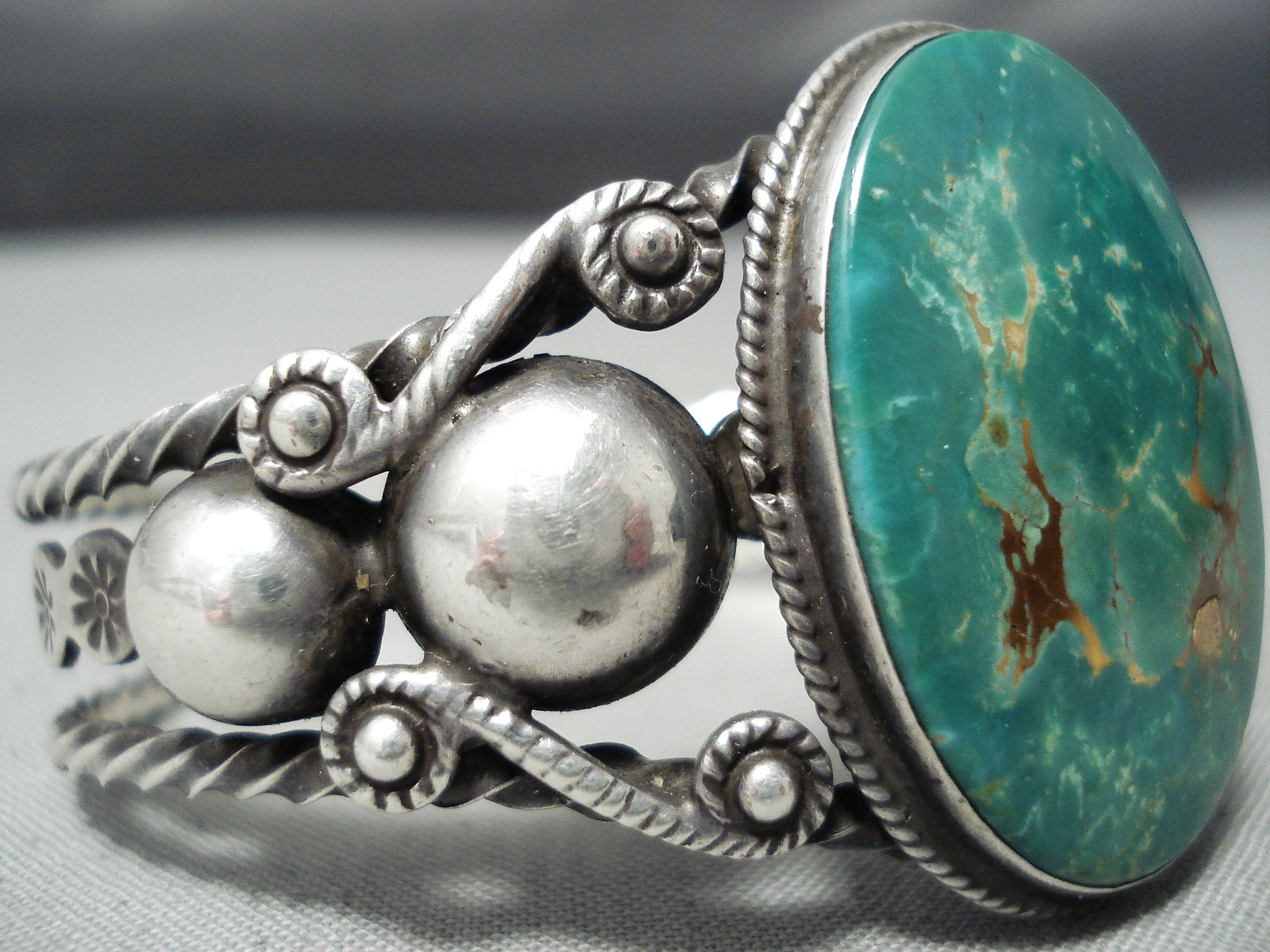 Early Huge Vintage Native American Navajo Cerrillos Turquoise Coiled Sterling Silver Bracelet