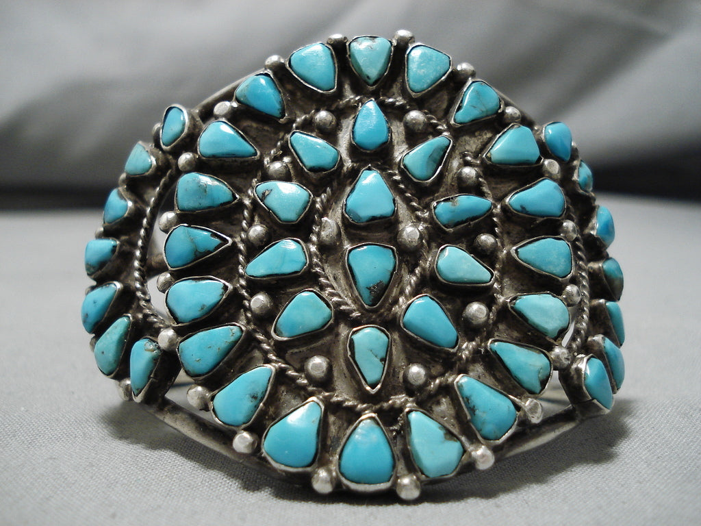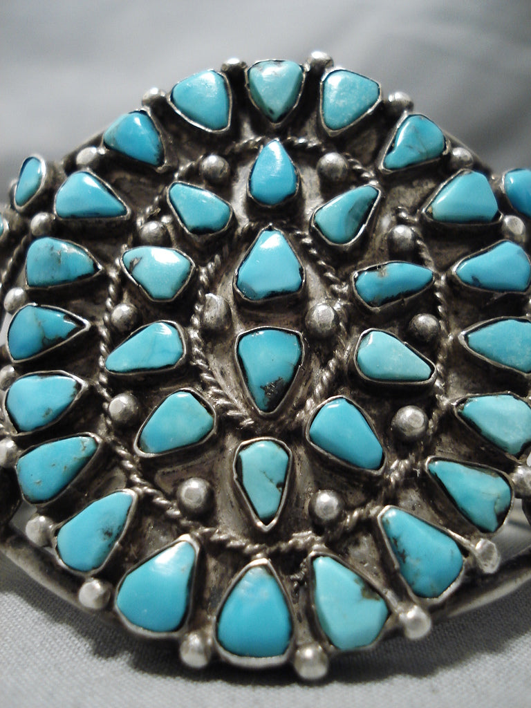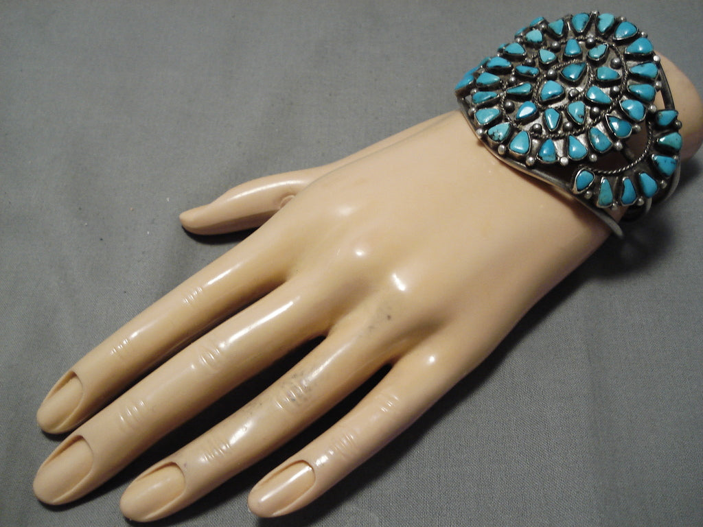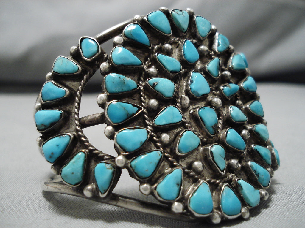 Early Huge Vintage Native American Navajo Teardrop Turquoise Sterling Silver Bracelet Old