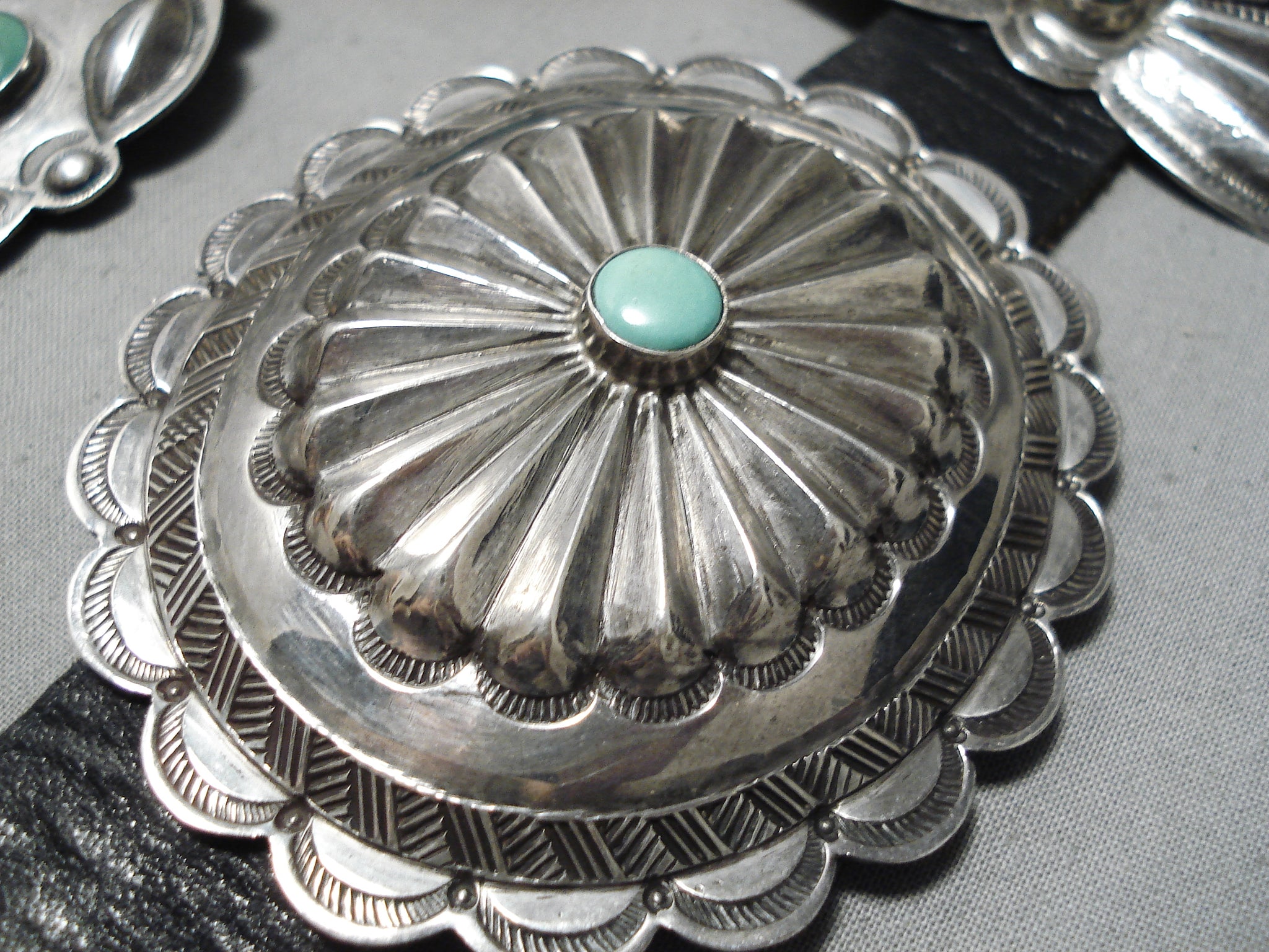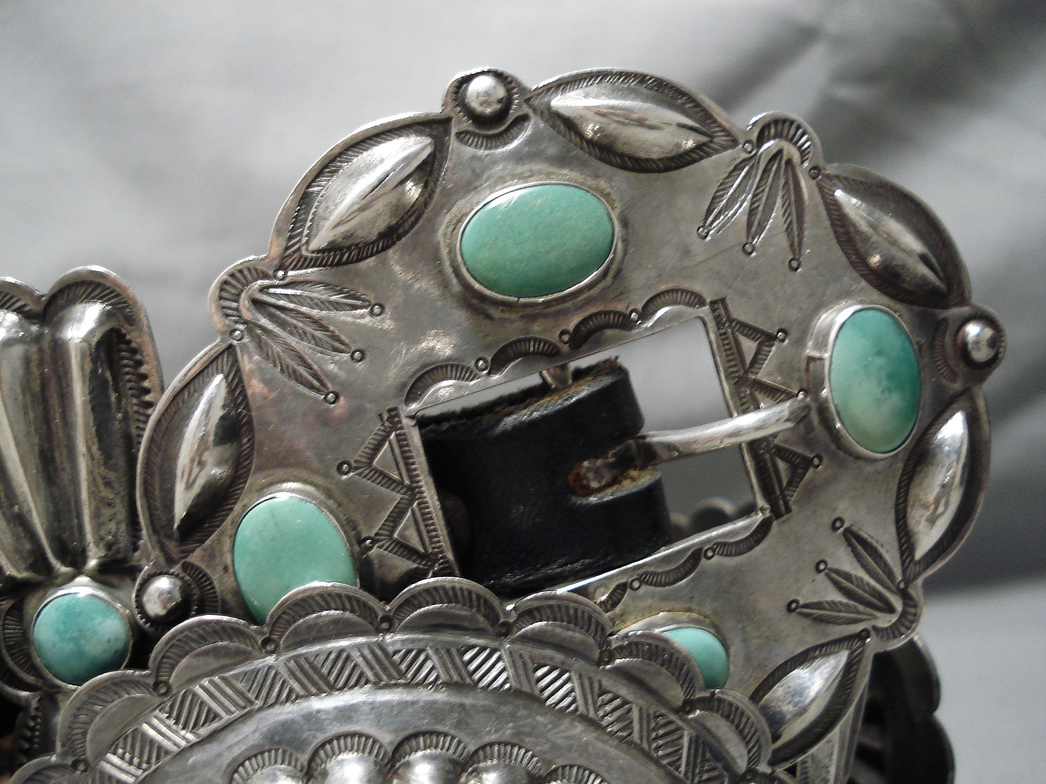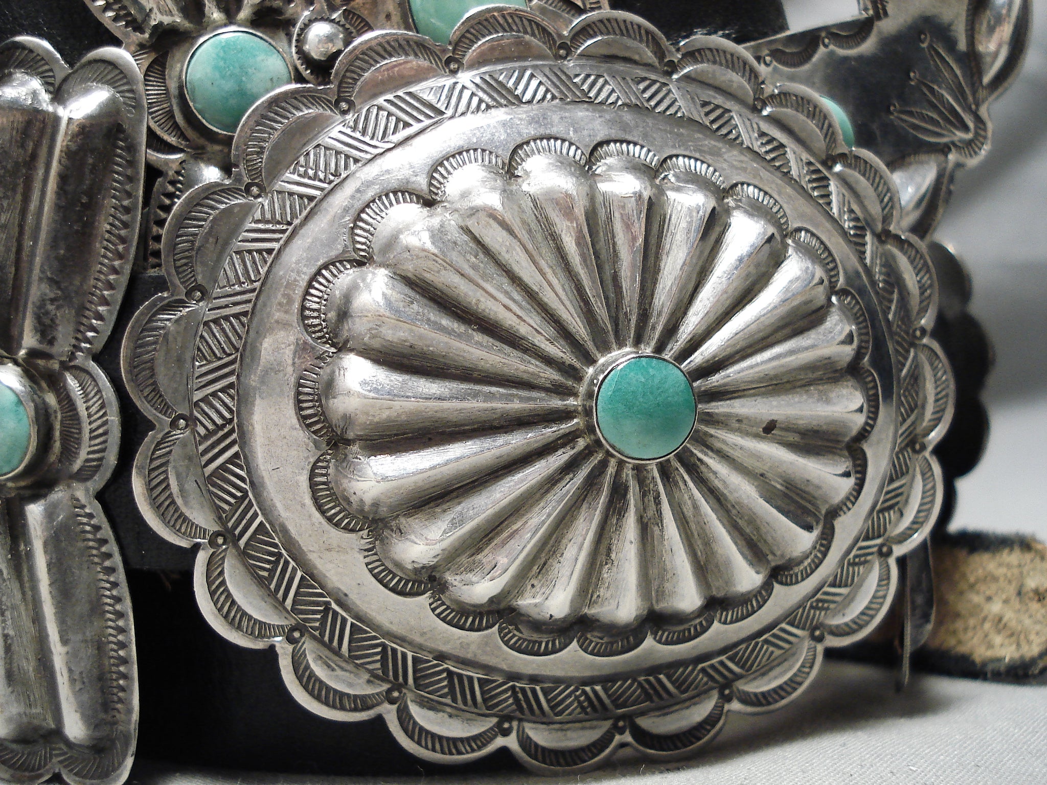 Early Museum Vintage Native American Navajo Royston Turquoise Sterling Silver Concho Belt