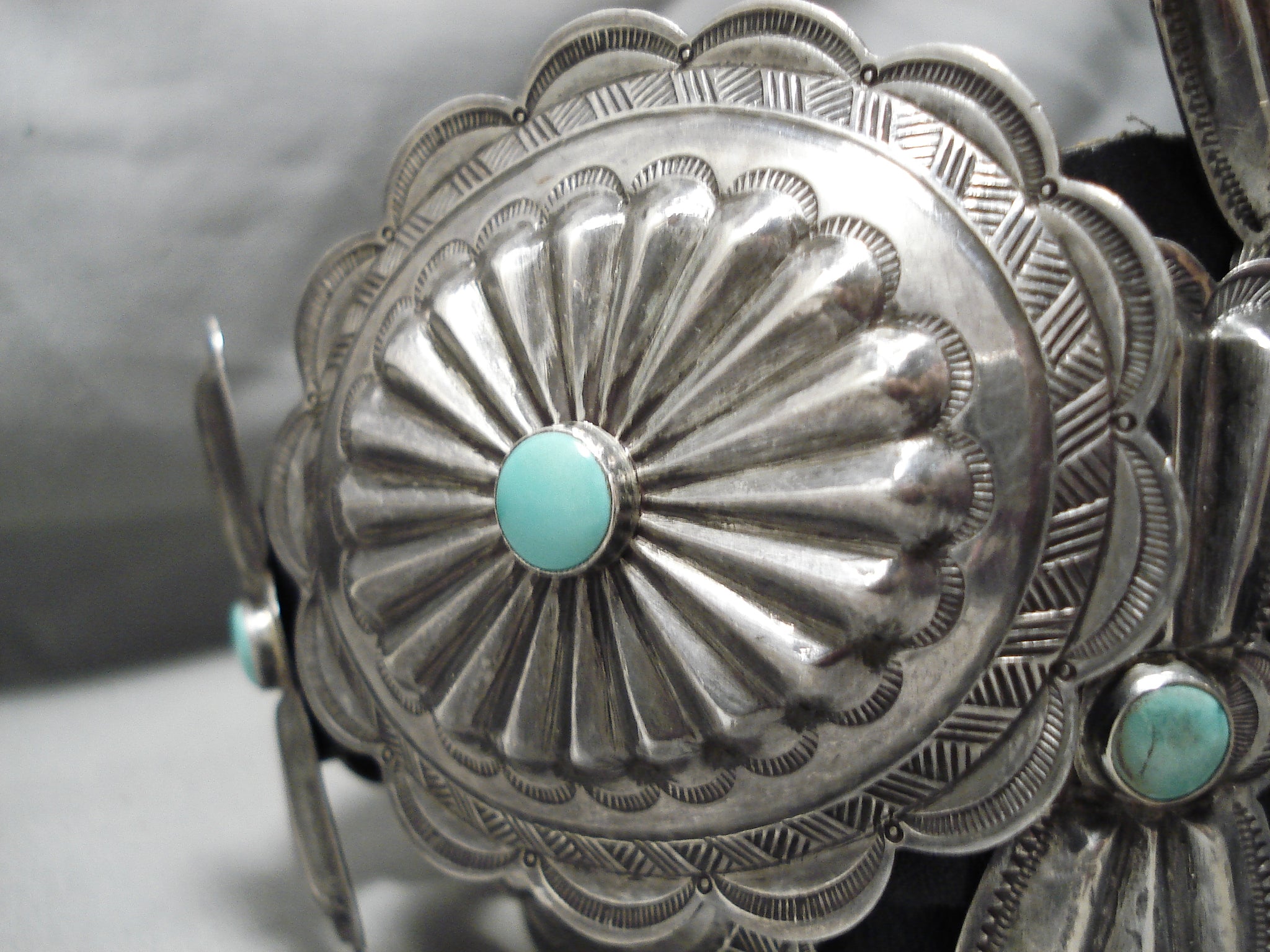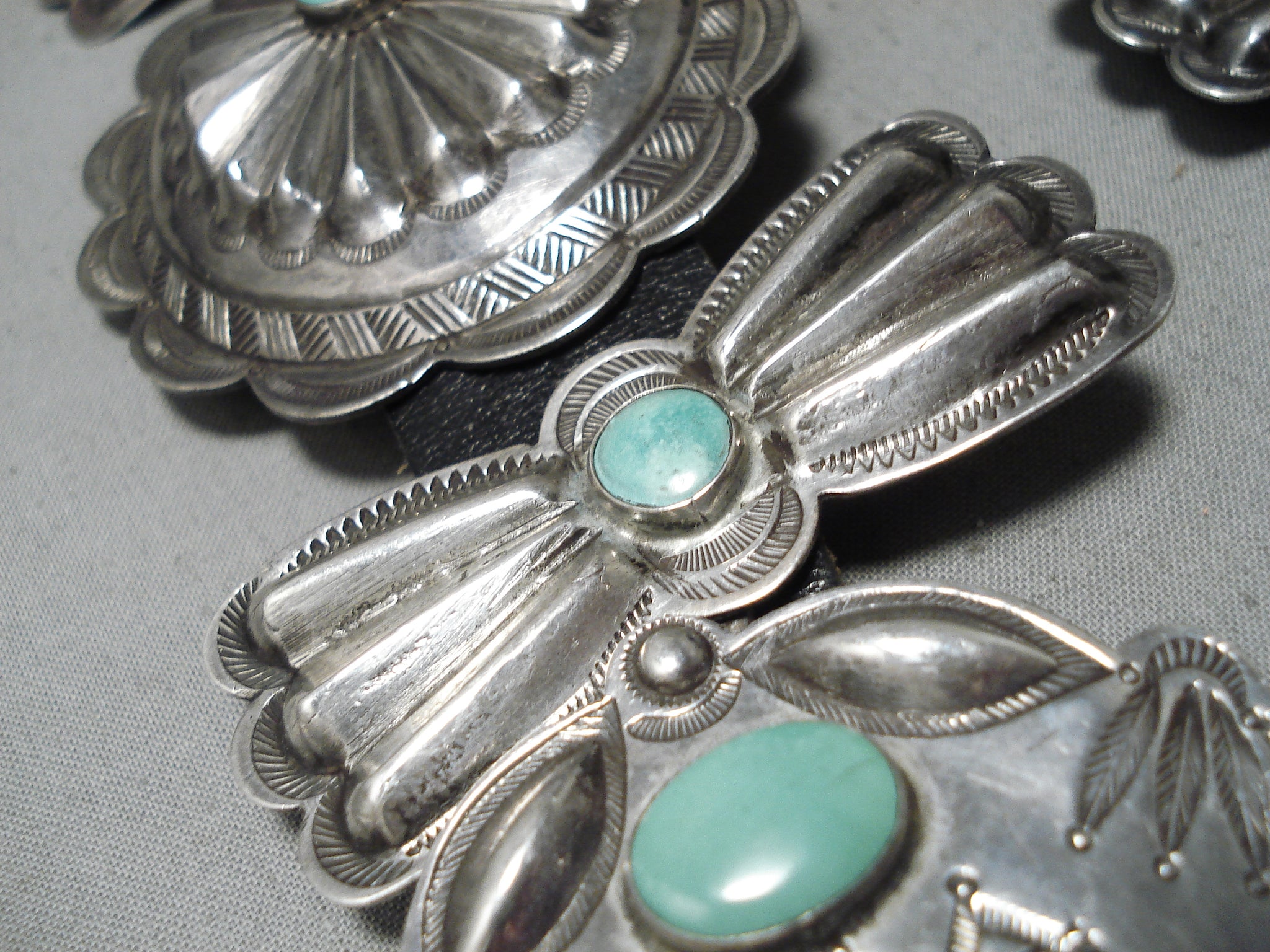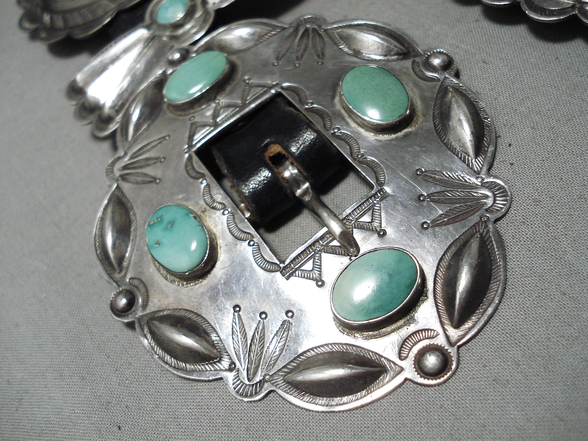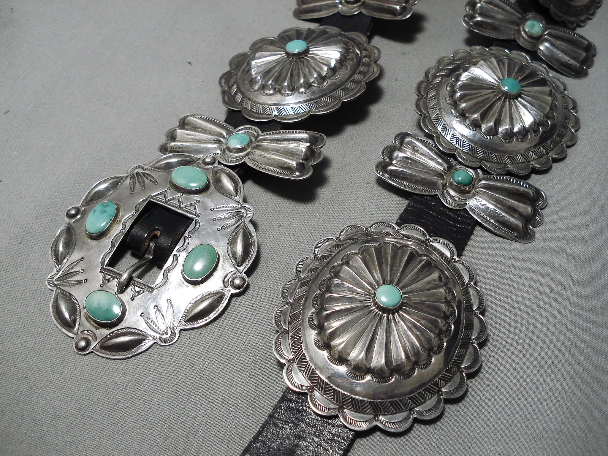 Early Museum Vintage Native American Navajo Royston Turquoise Sterling Silver Concho Belt