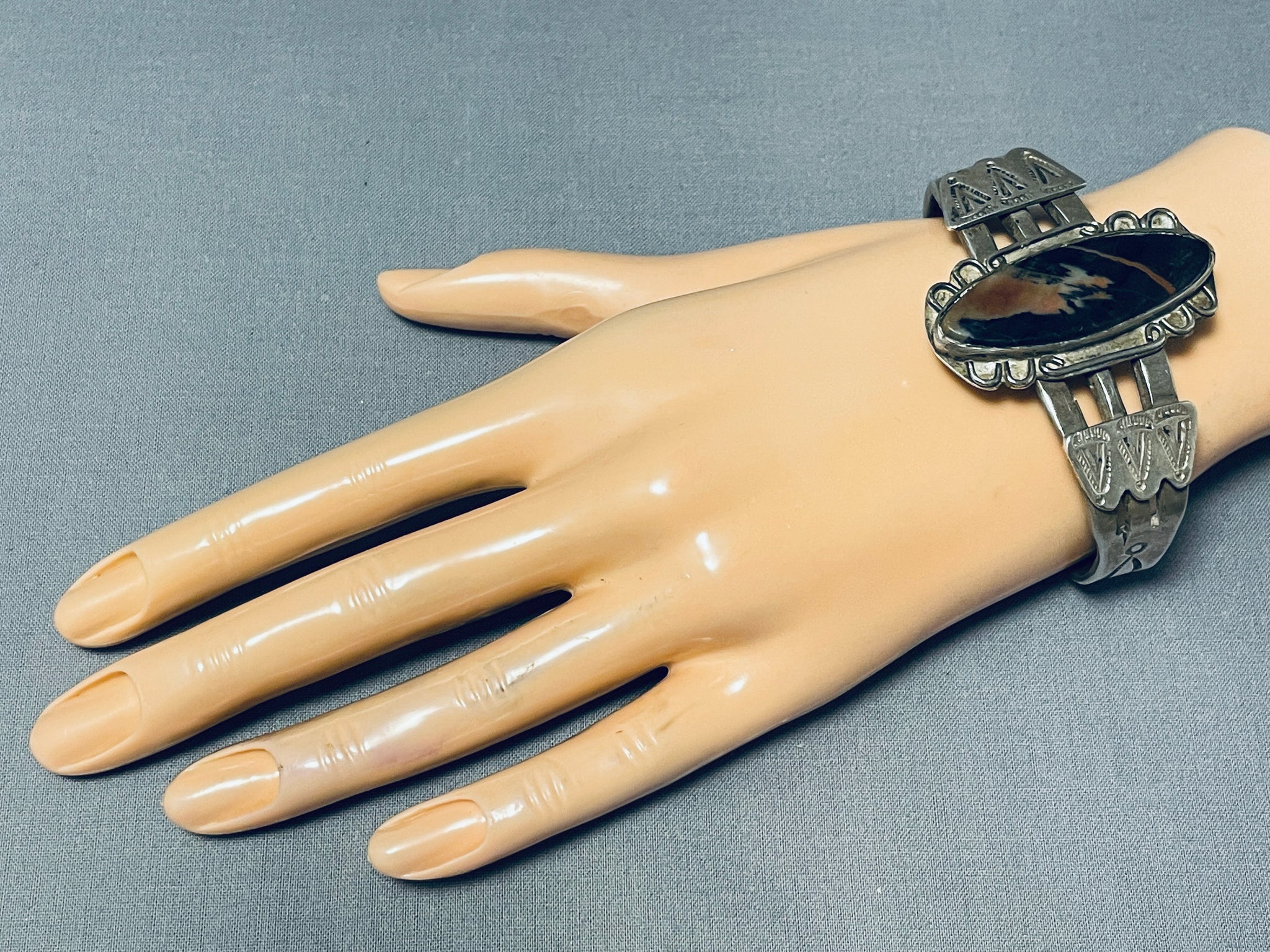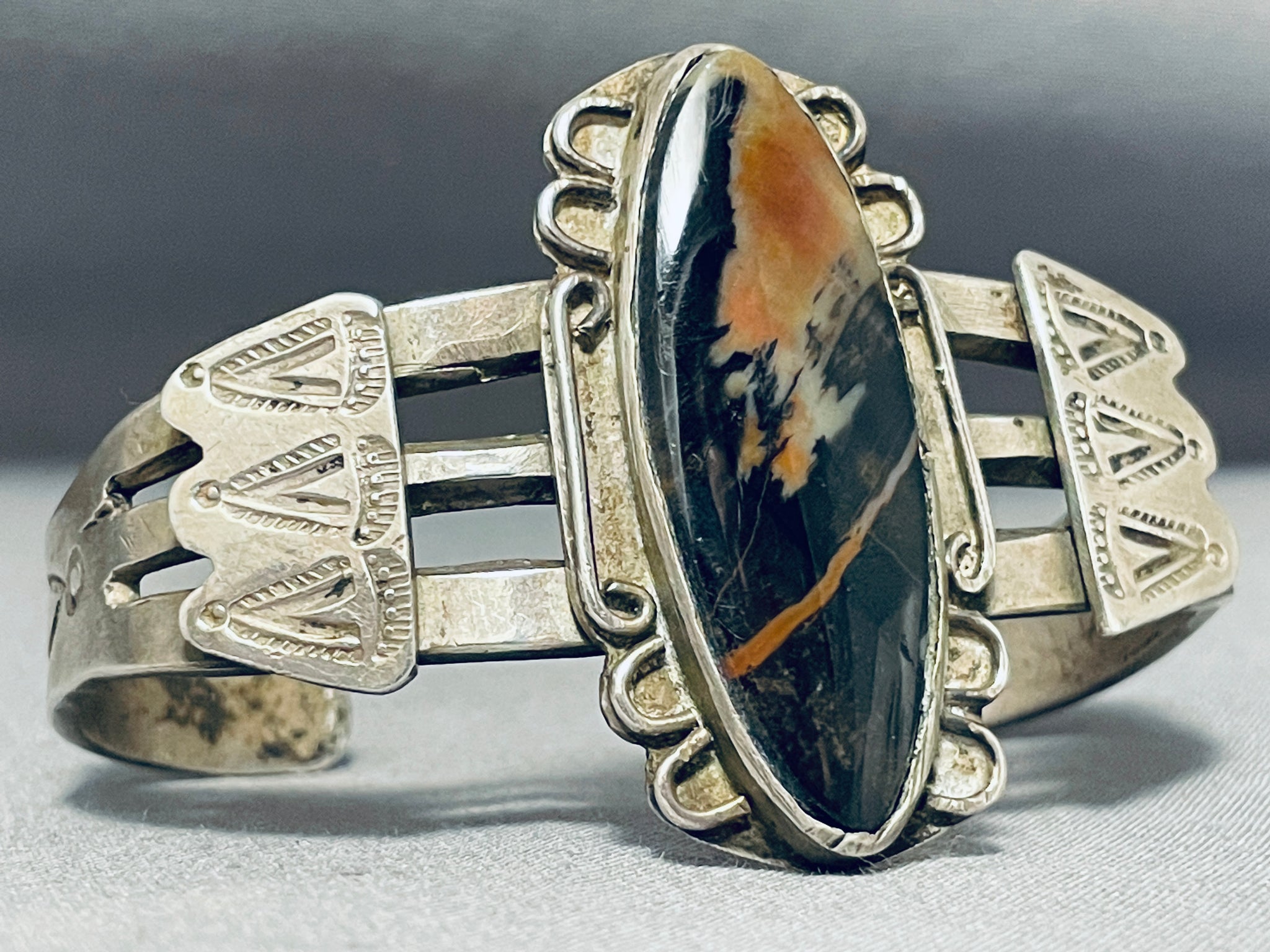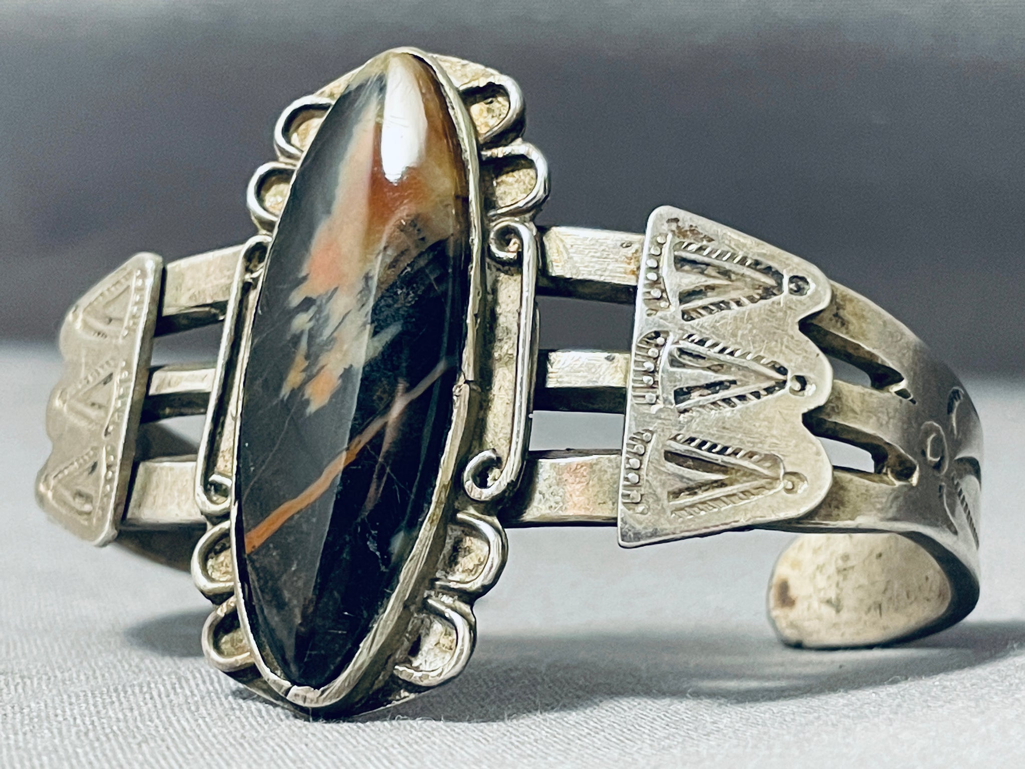 Early Vintage Native American Navajo Petrified Wood Sterling Silver Bracelet