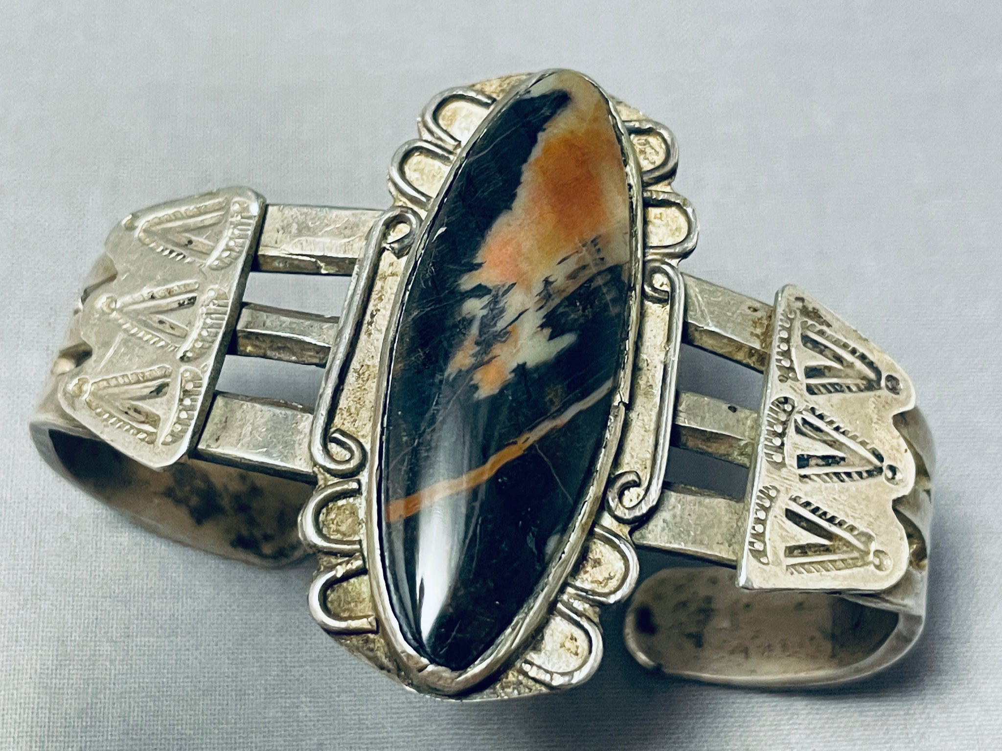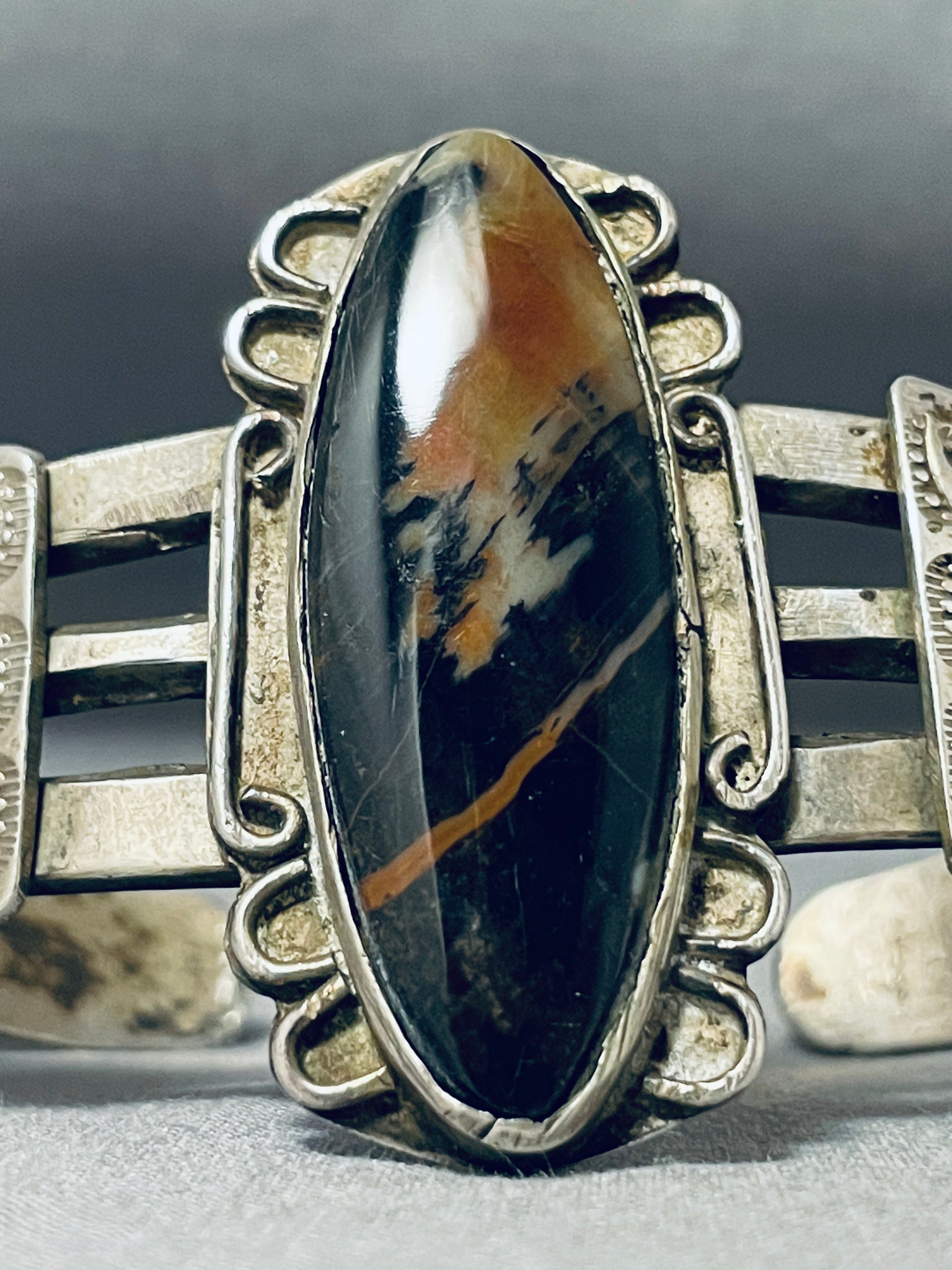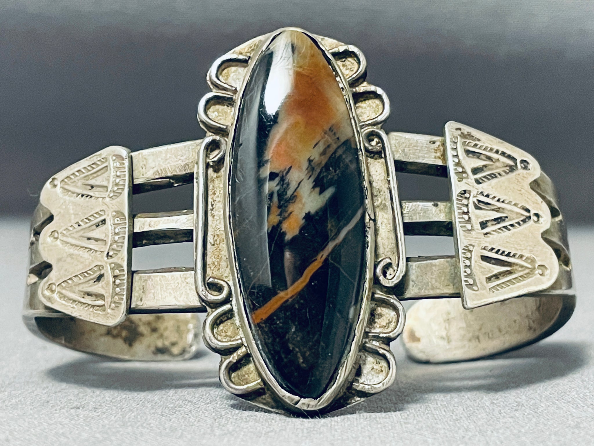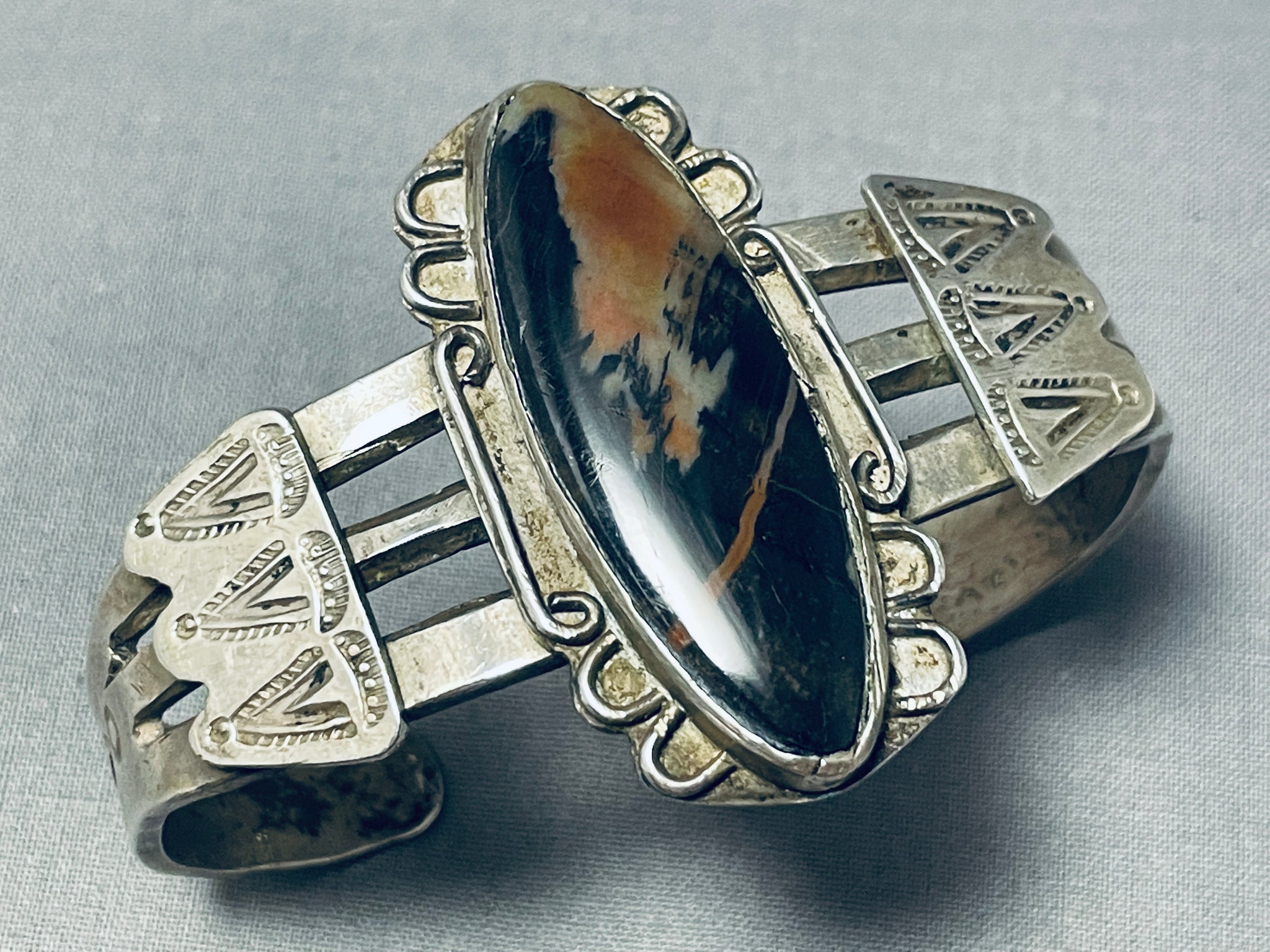 Early Vintage Native American Navajo Petrified Wood Sterling Silver Bracelet