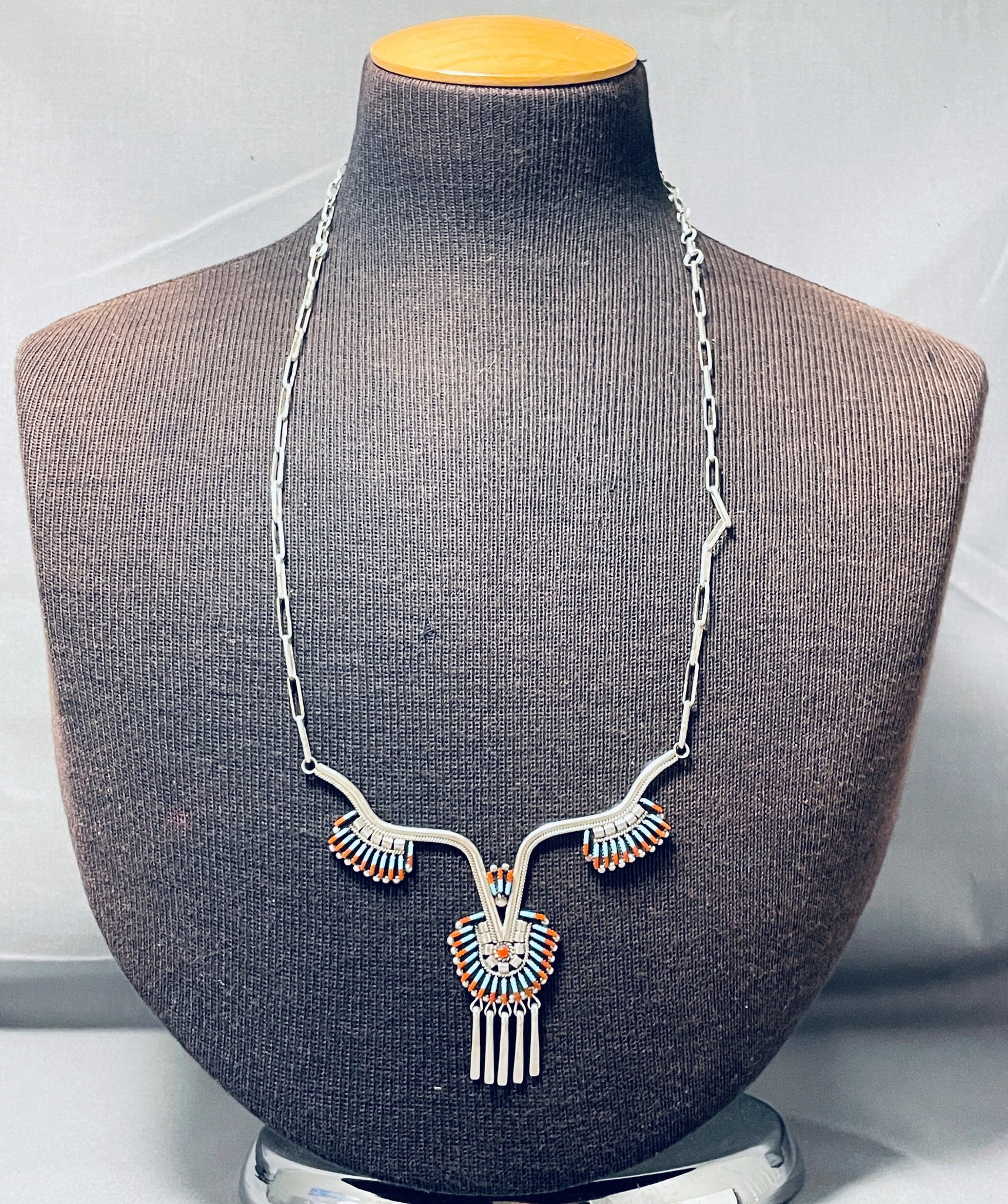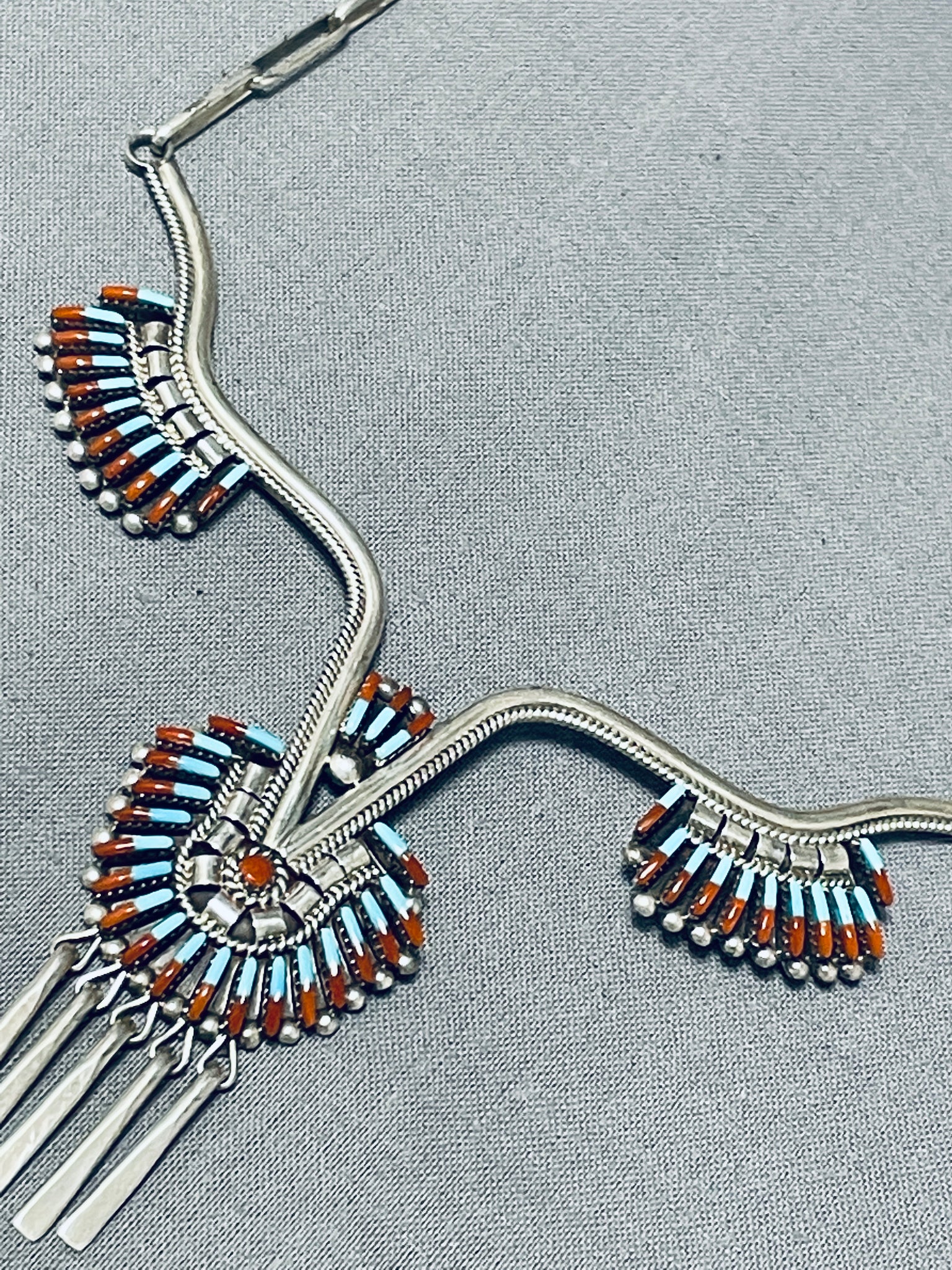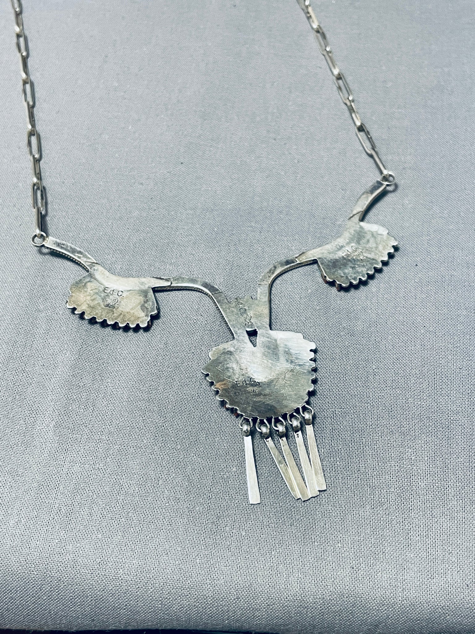 Ed Cooyate Native American Zuni Blue Gem Turquoise Sterling Silver Necklace