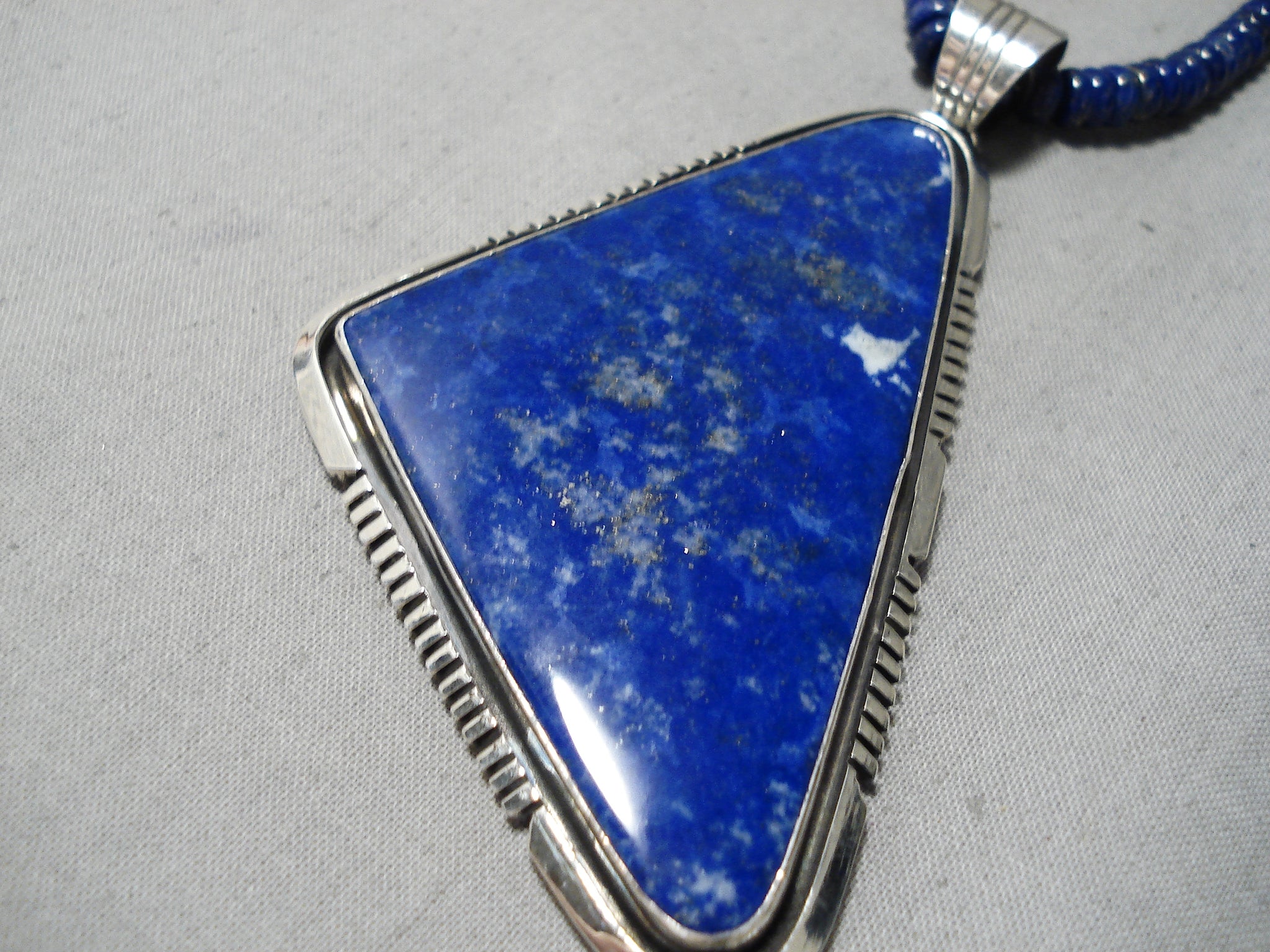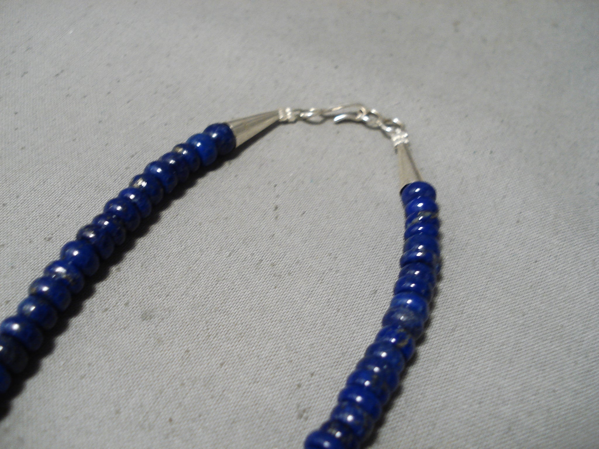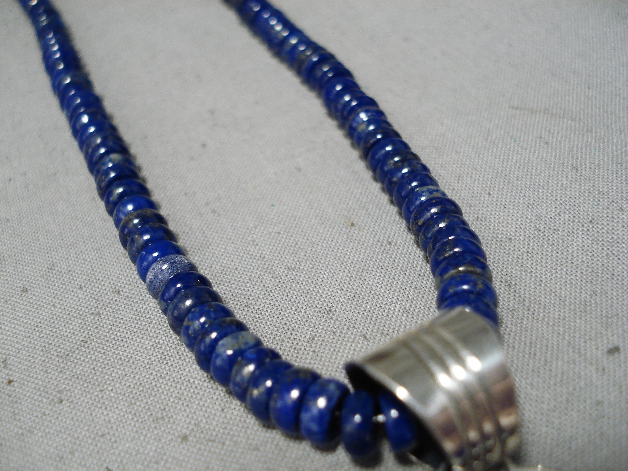 Electrifying Vintage Native American Navajo Lapis Sterling Silver Necklace Old
