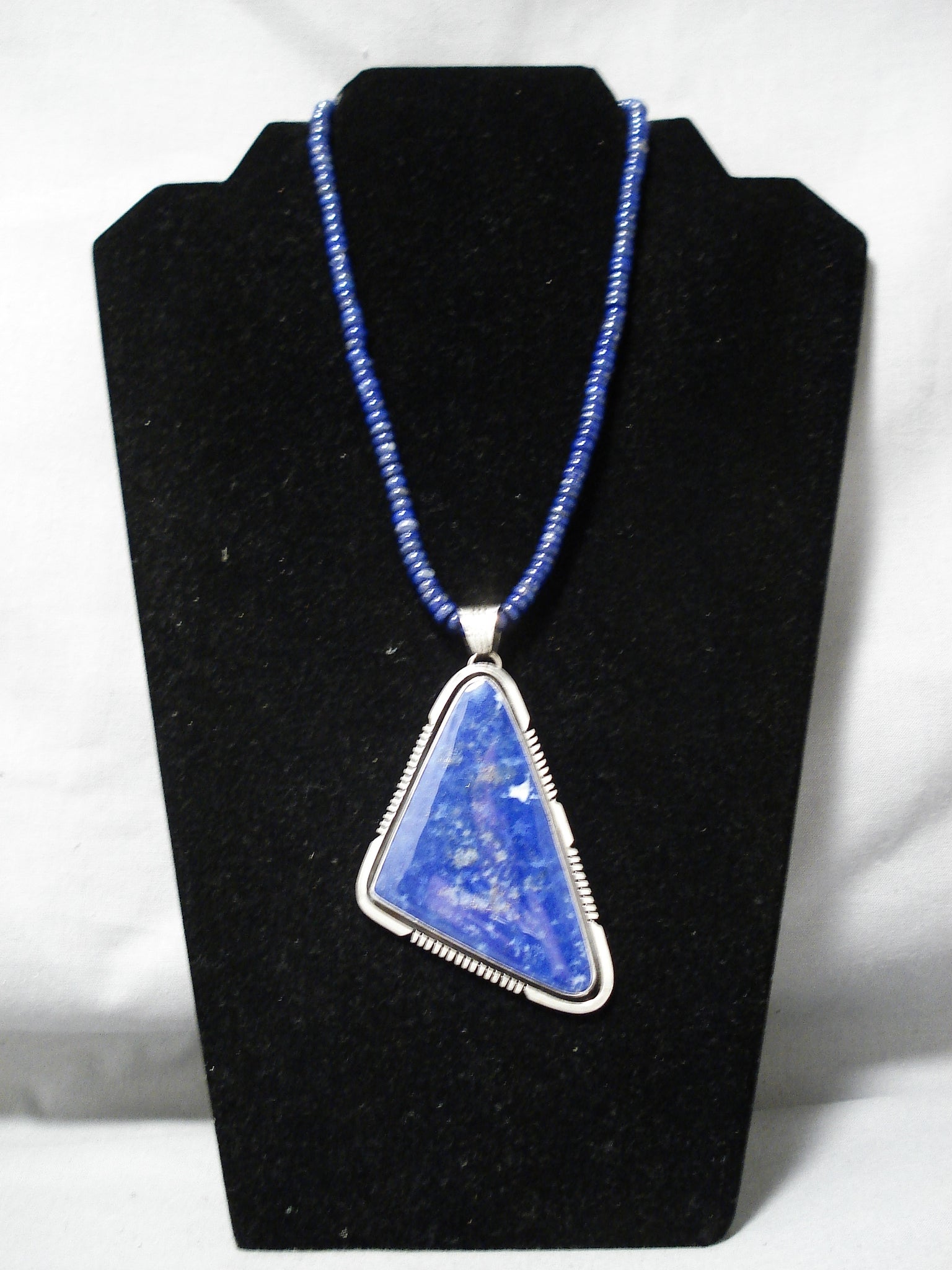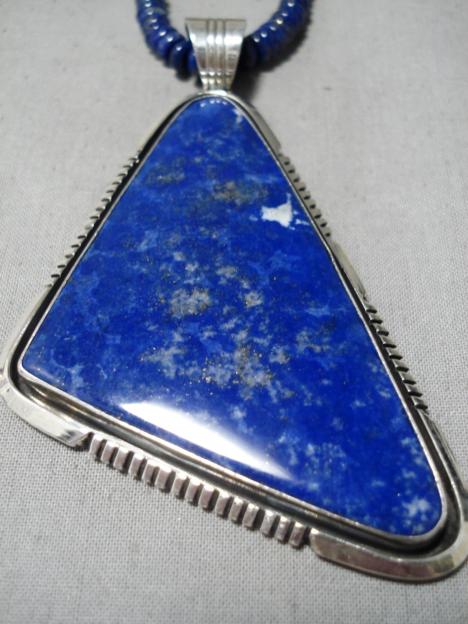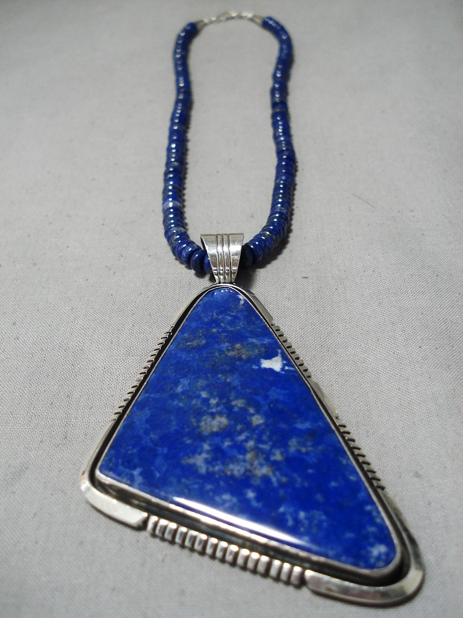 Electrifying Vintage Native American Navajo Lapis Sterling Silver Necklace Old