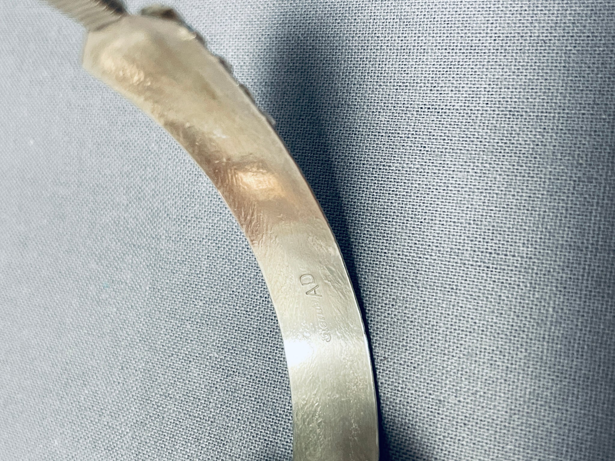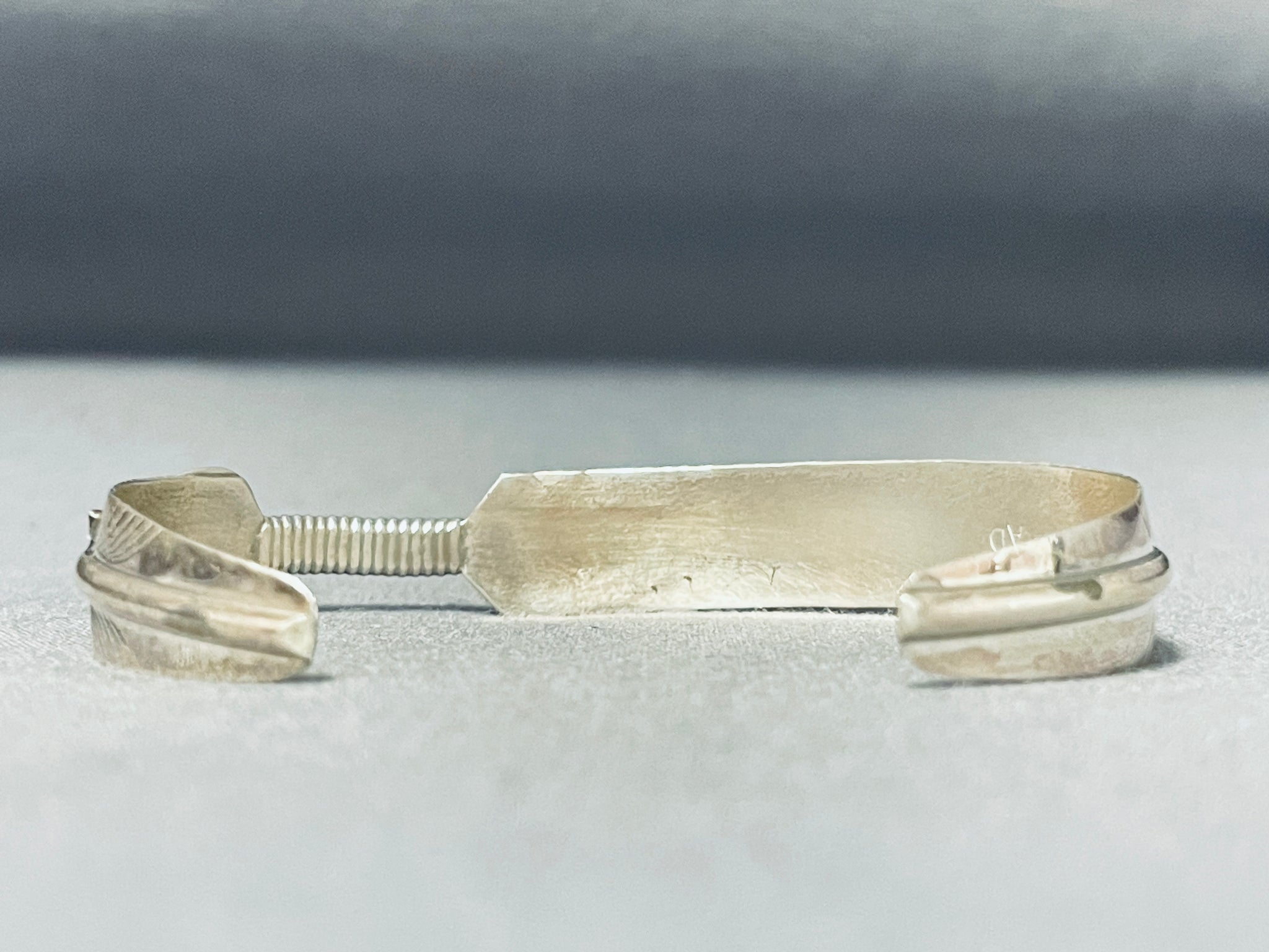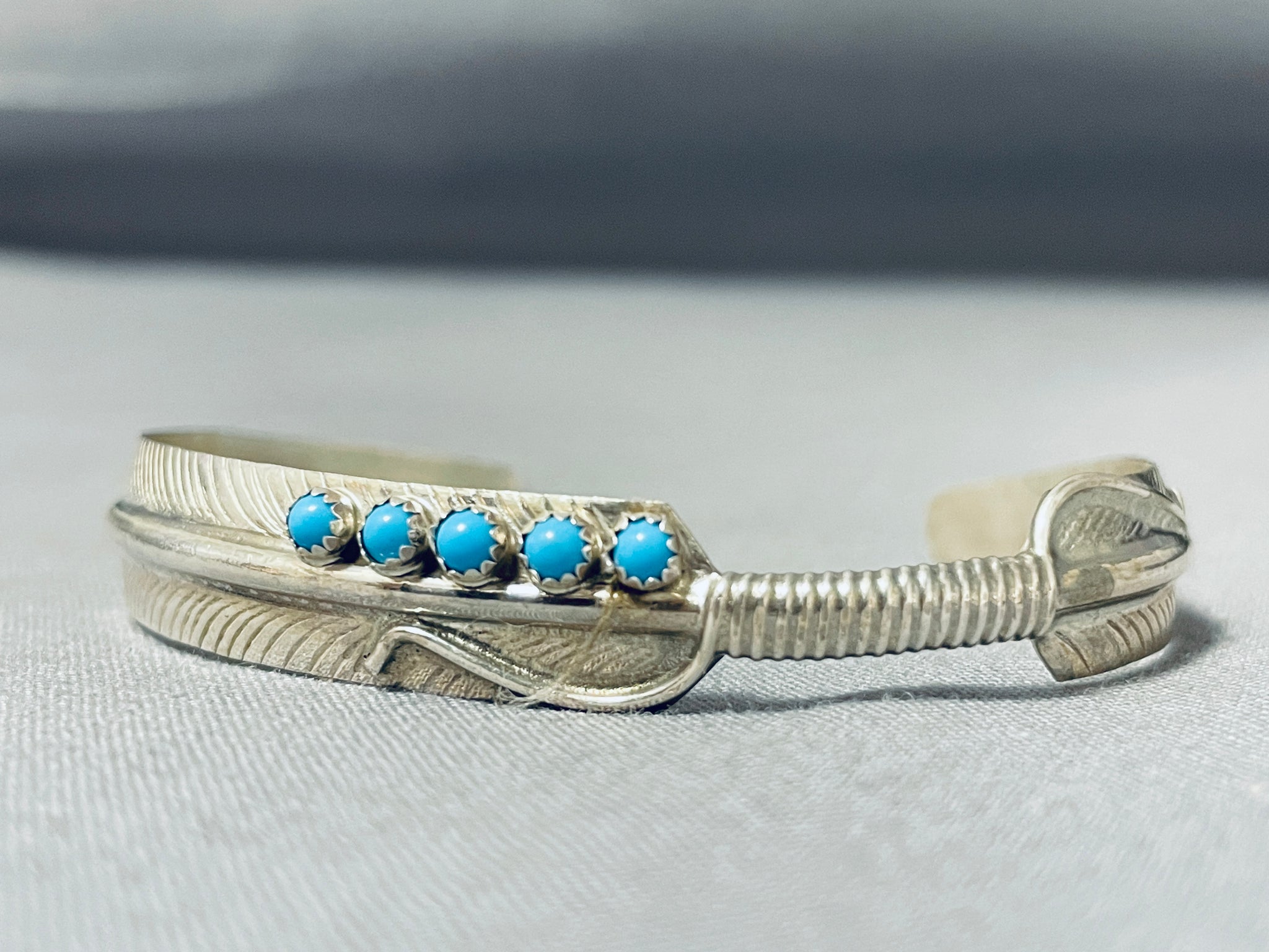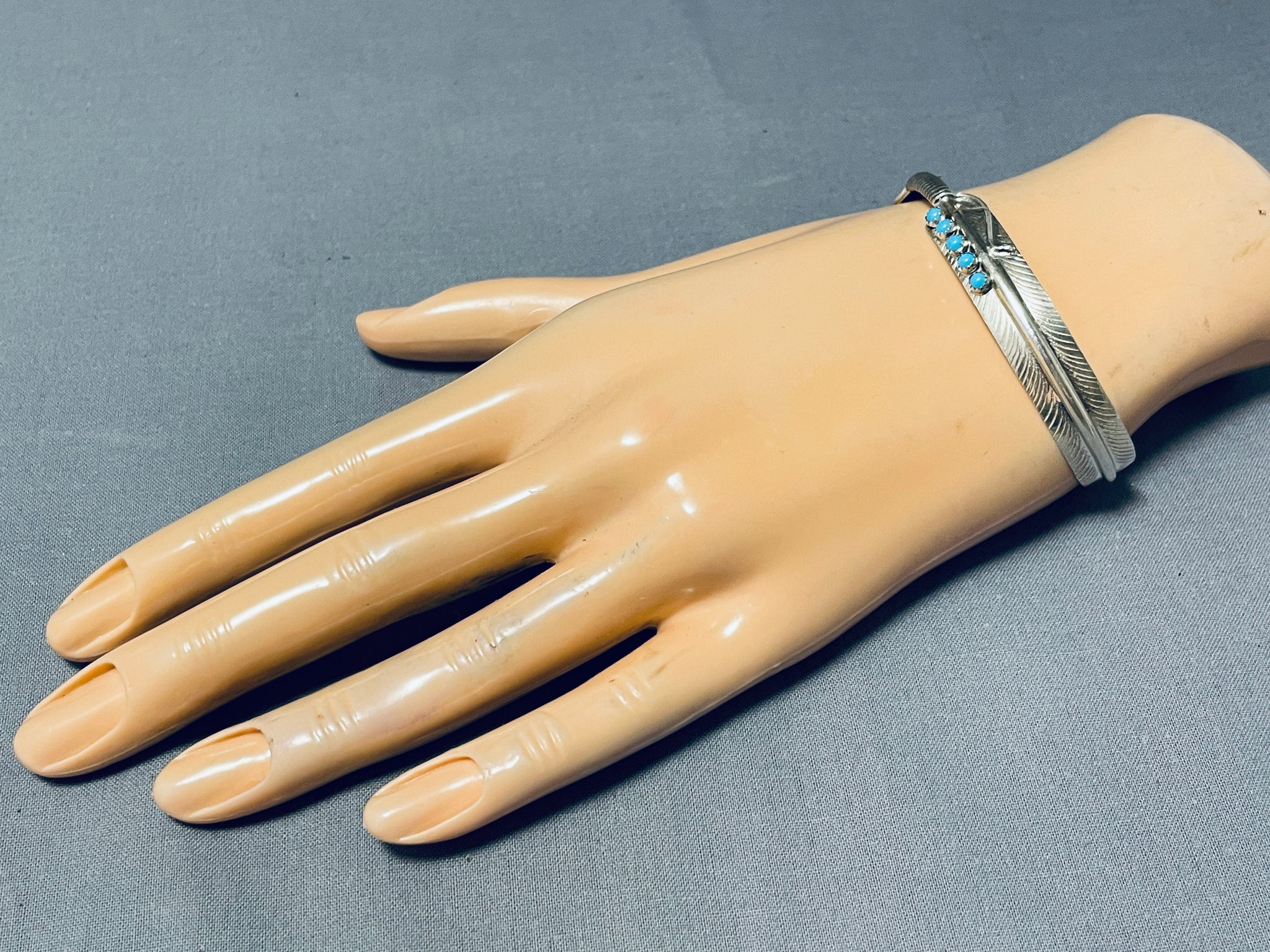 Elegant Native American Hopi Sleeping Beauty Turquoise Sterling Silver Feather Bracelet