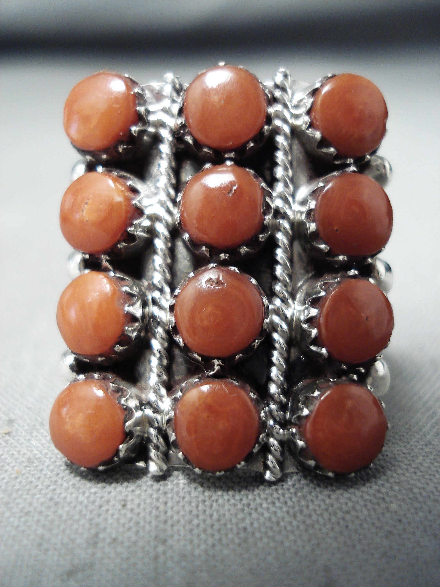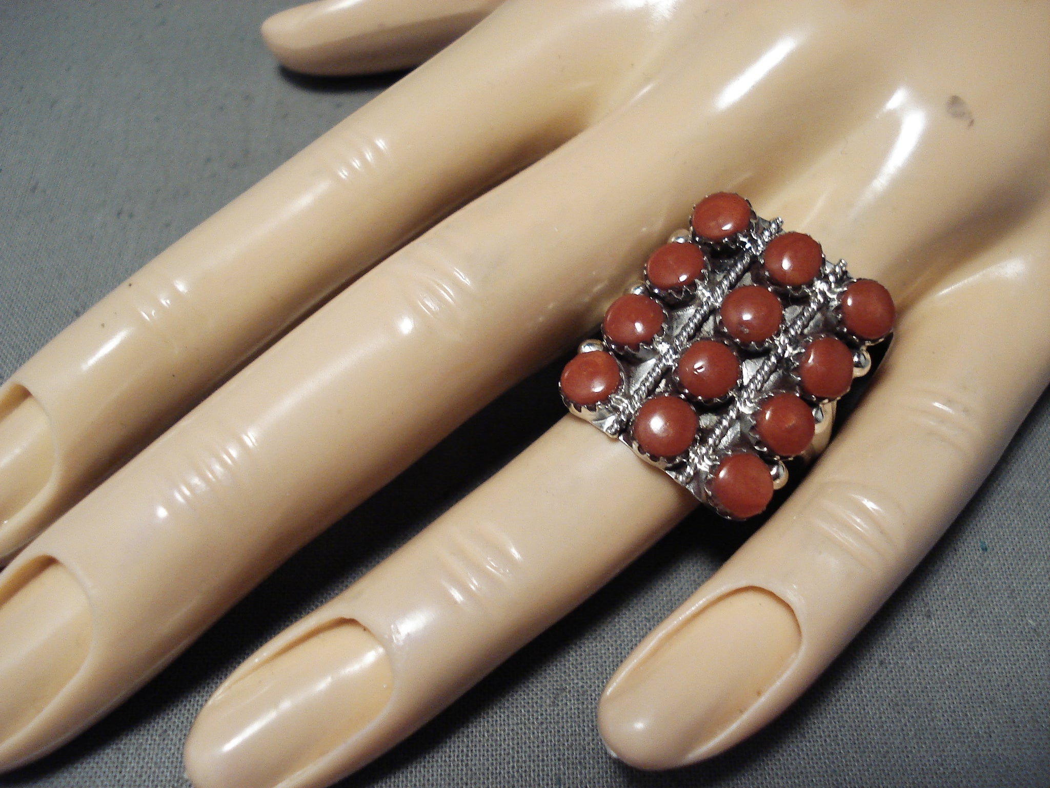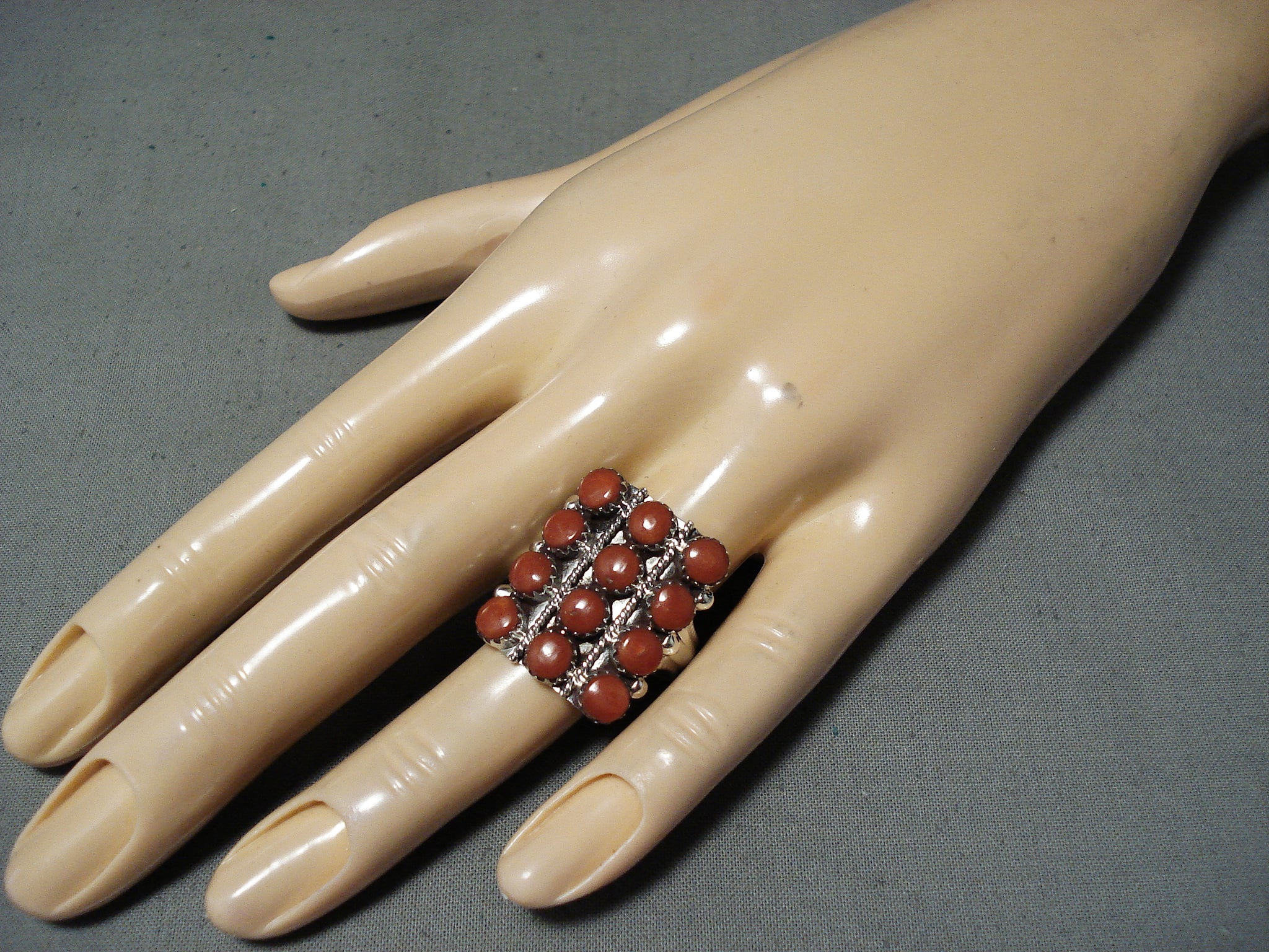 Elonda Waco Signed Native American Zuni Coral Sterling Silver Ring