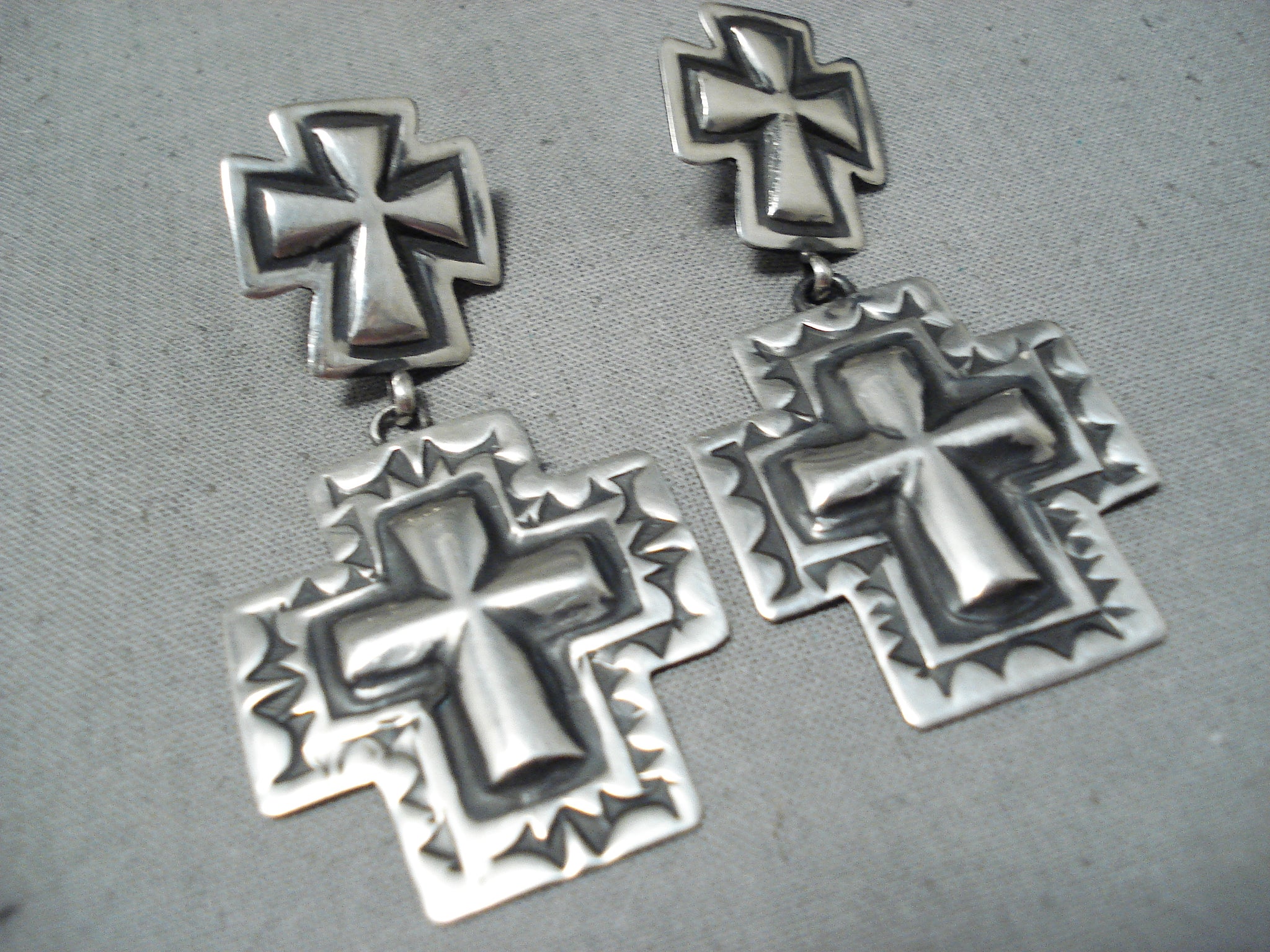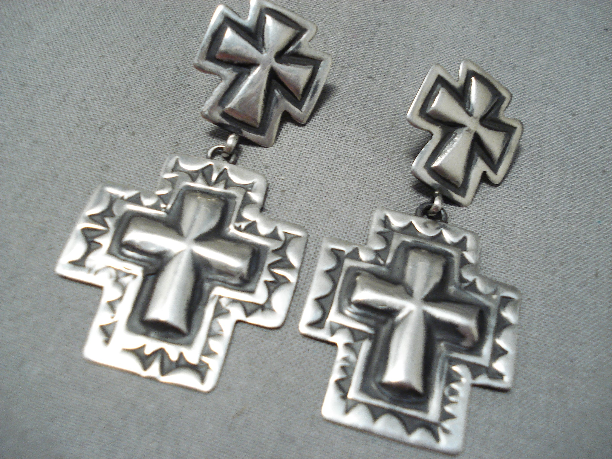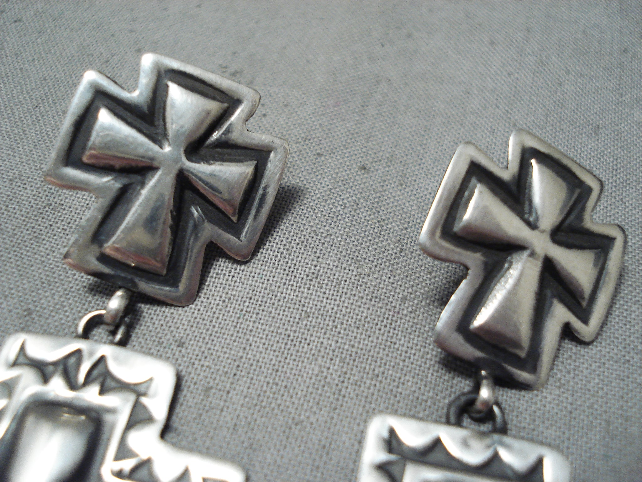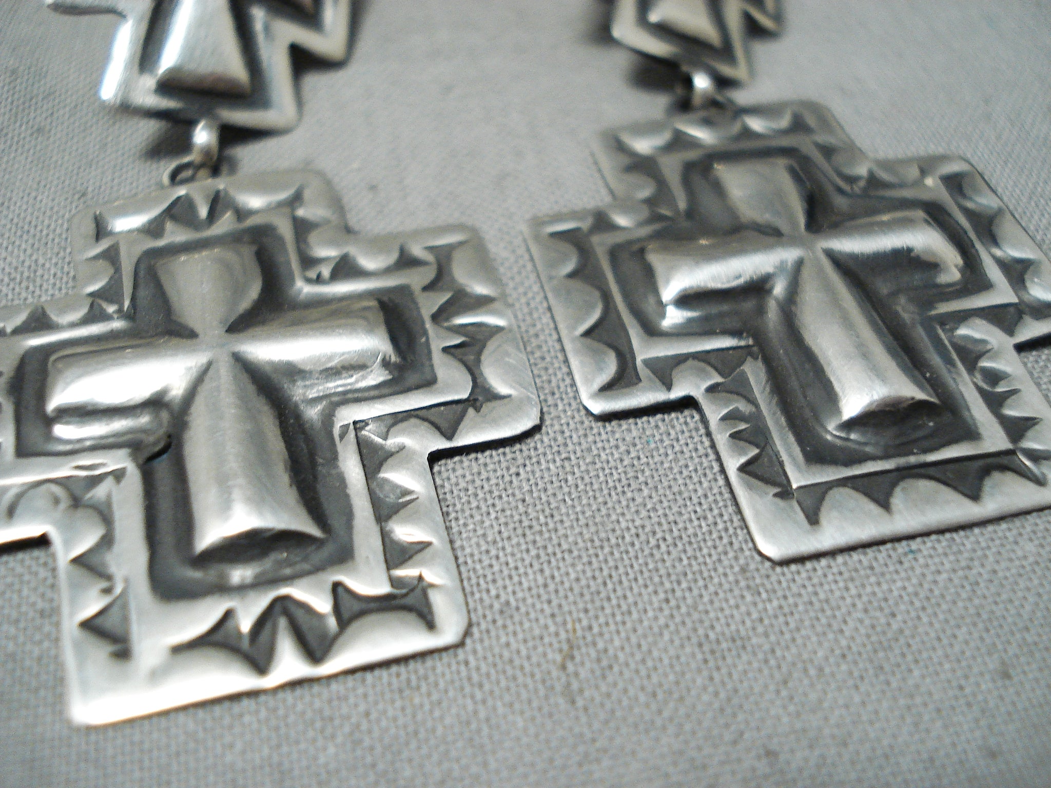 Exceptional Navajo Sterling Silver Repousse Cross Earrings Native American