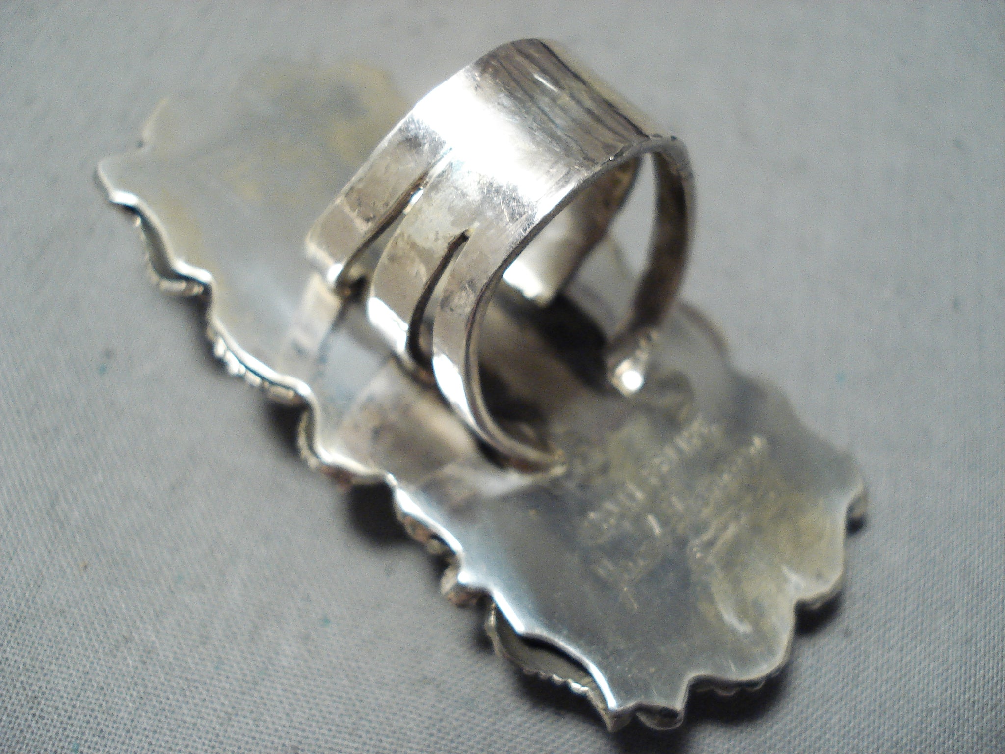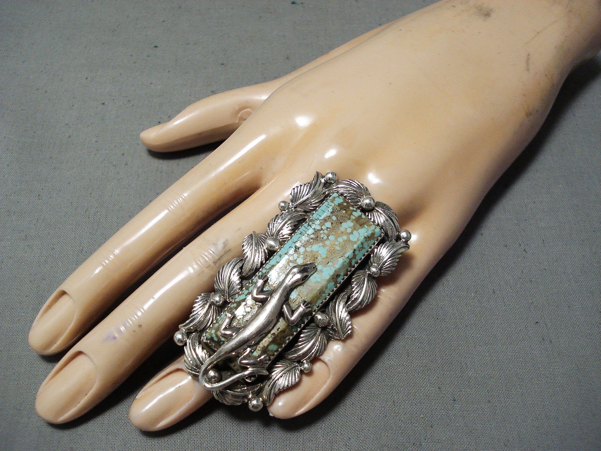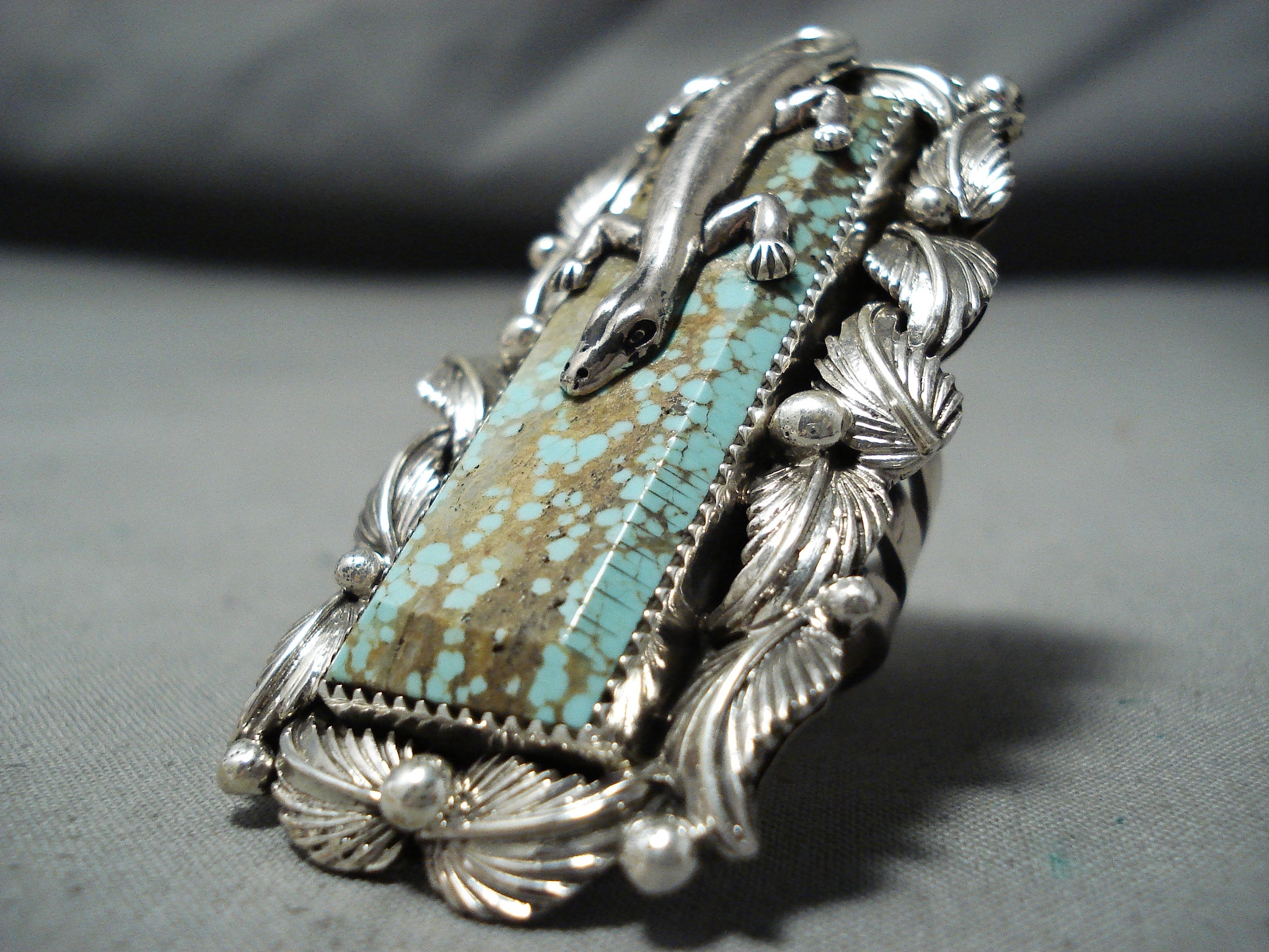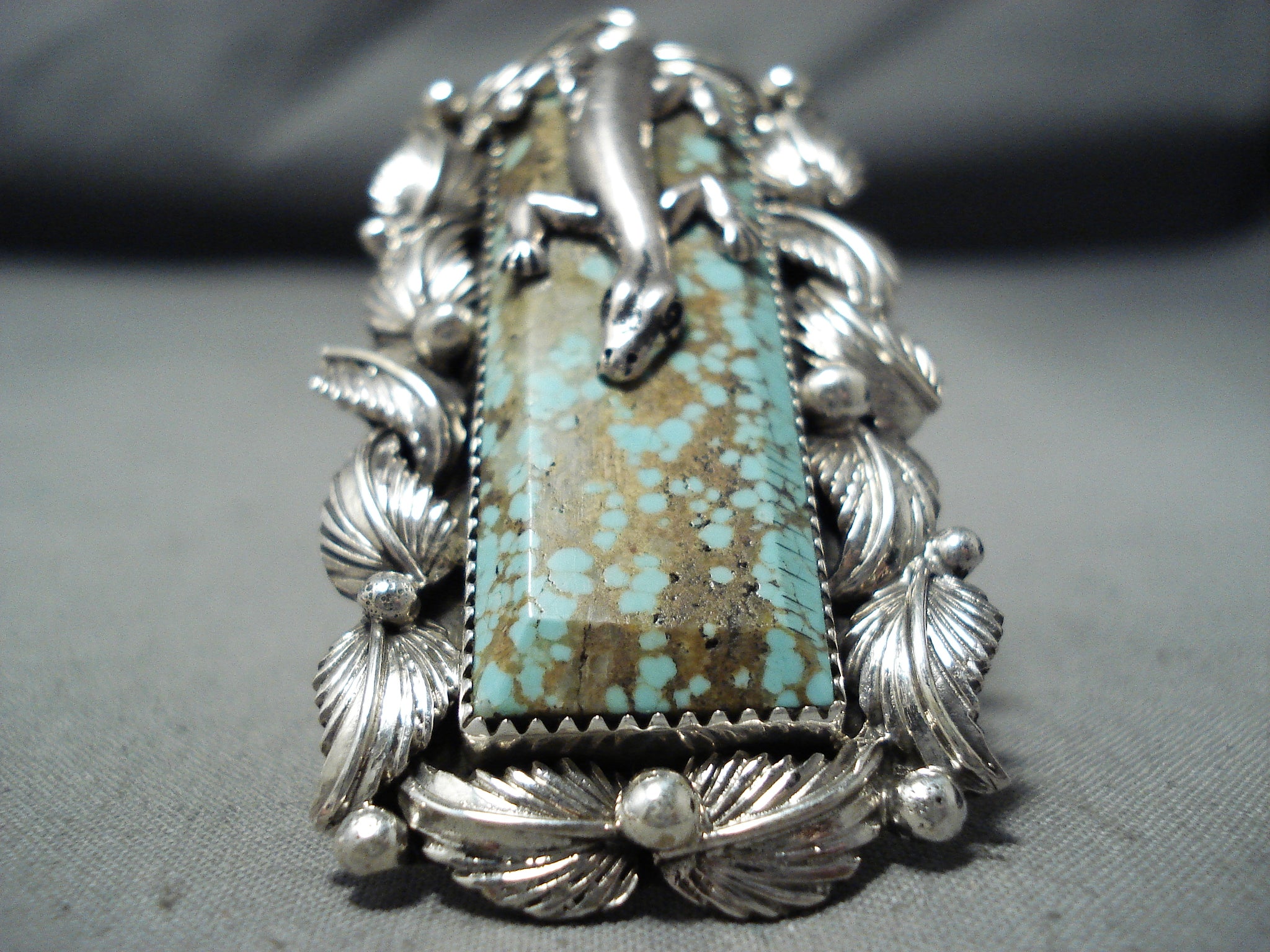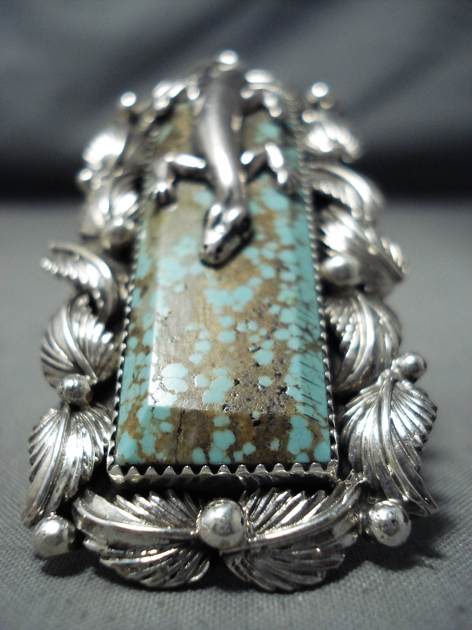 Exceptional San Felipe Native American 8 Turquoise Sterling Silver Gecko Ring