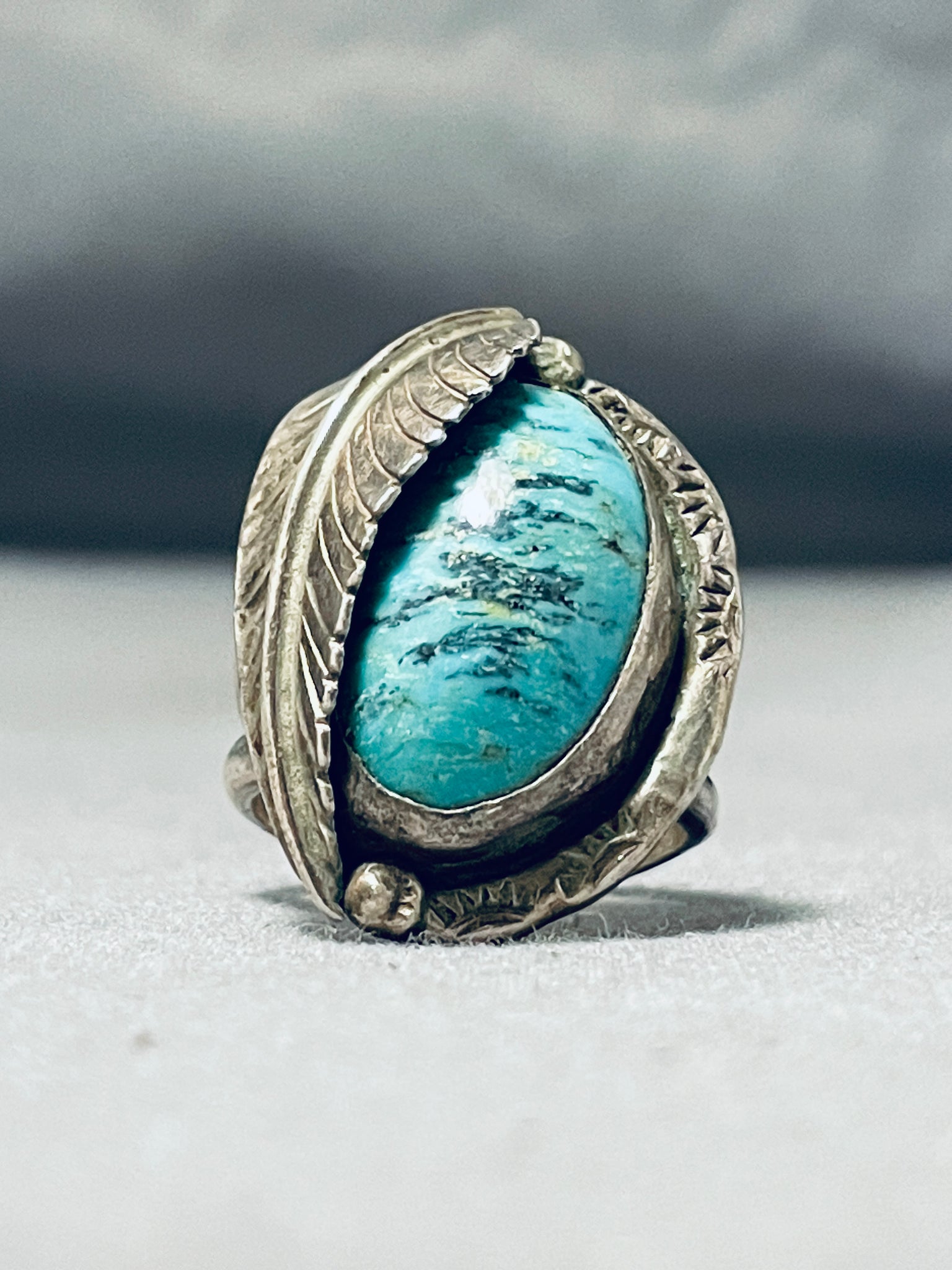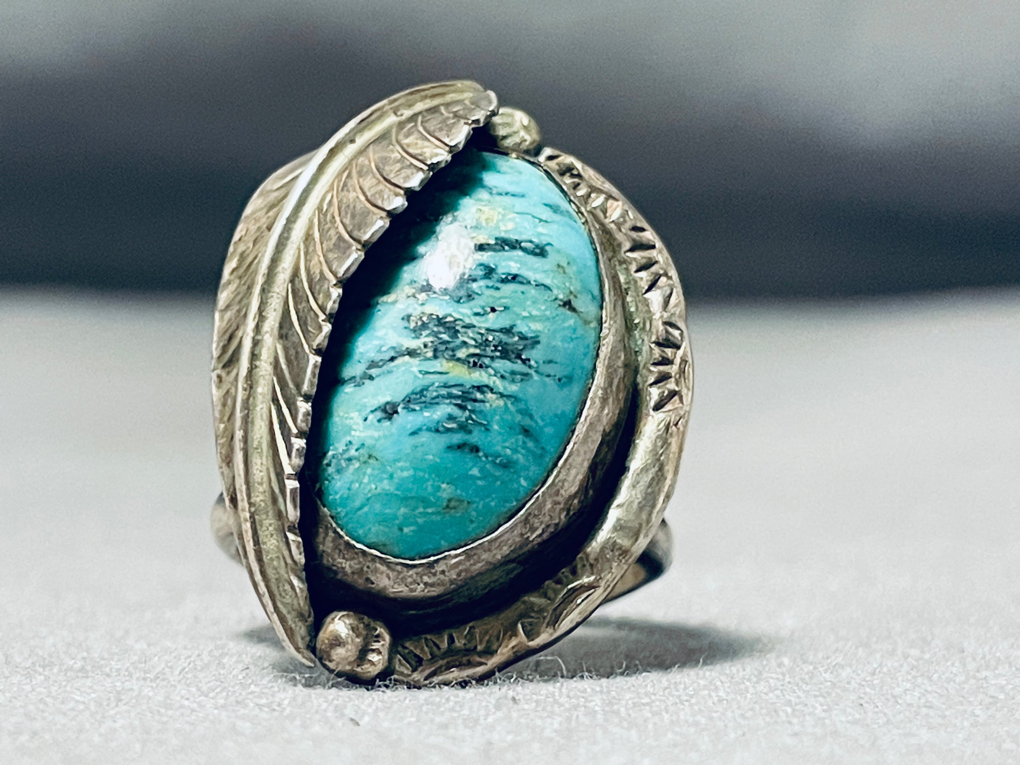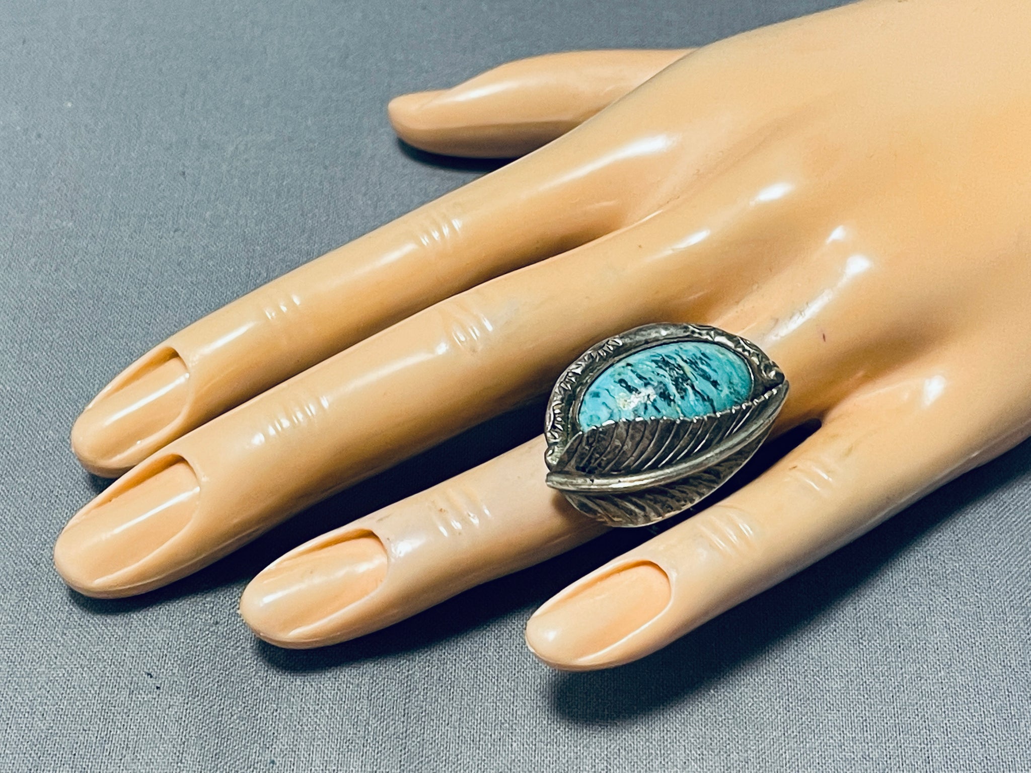 Exceptional Vintage Native American Navajo Blue Diamond Turquoise Sterling Silver Ring