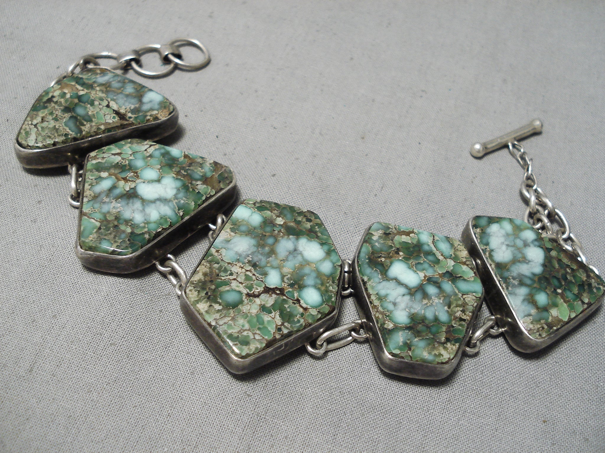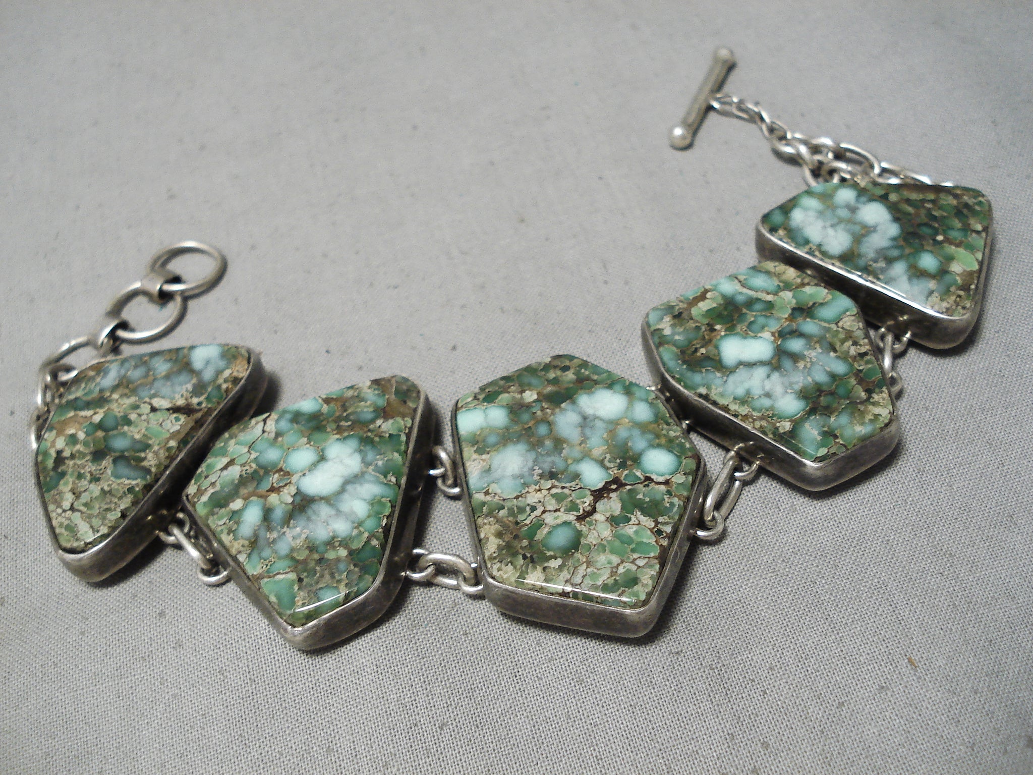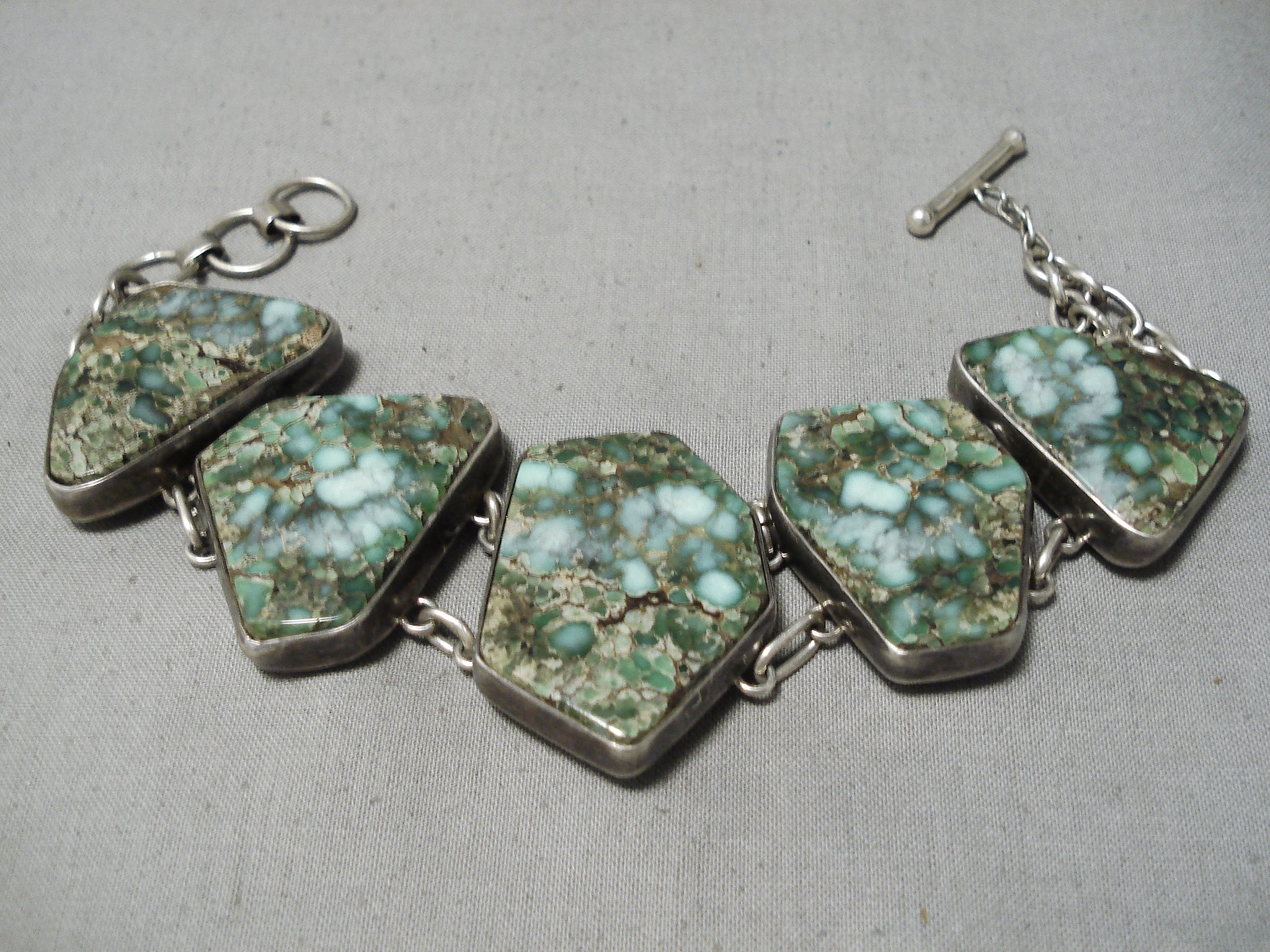 Exceptional Vintage Native American Navajo Carico Lake Turquoise Sterling Silver Bracelet Old