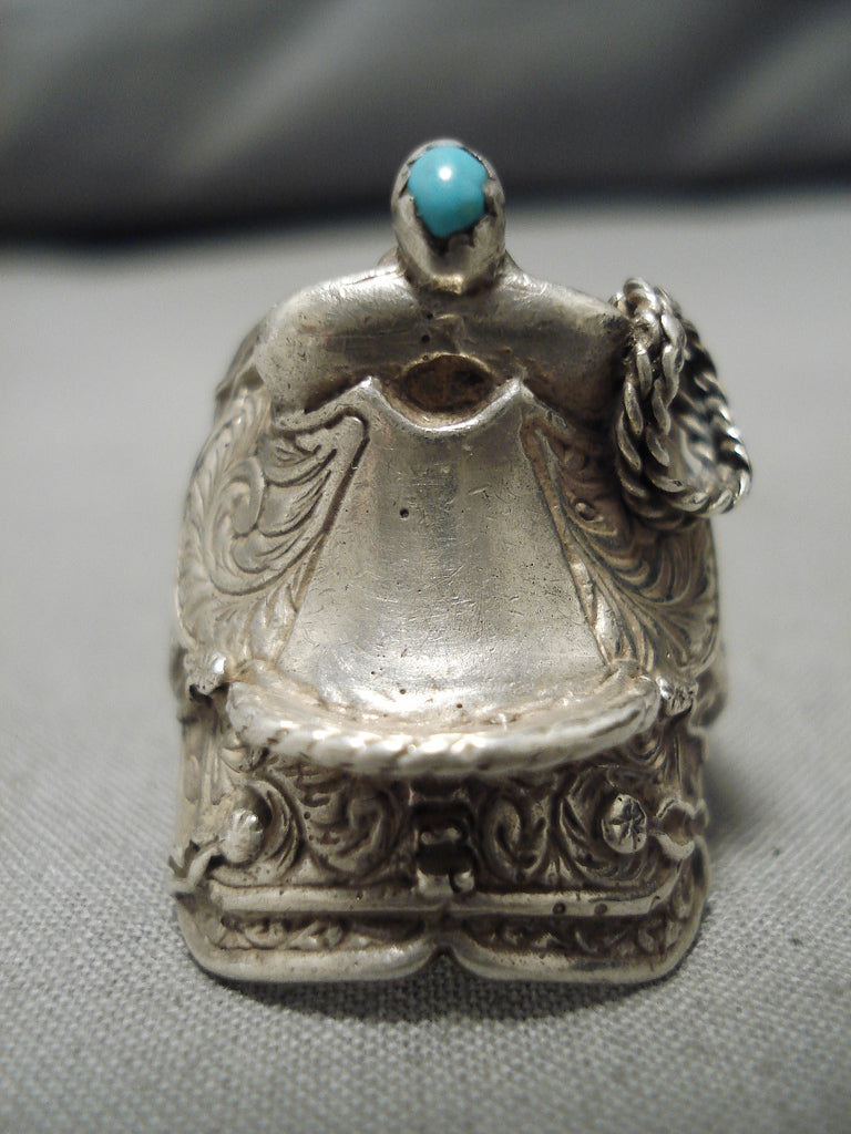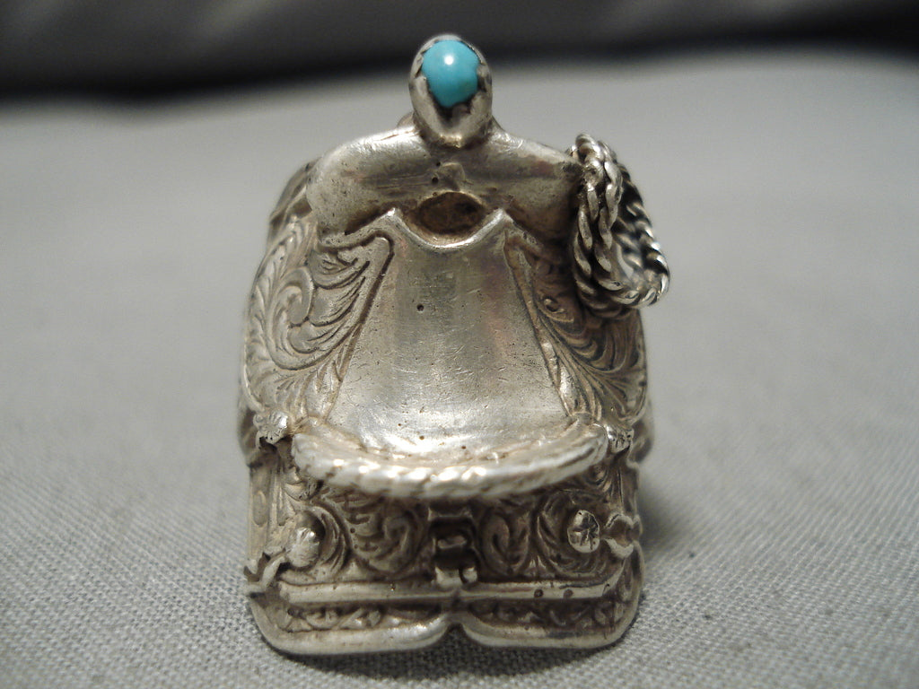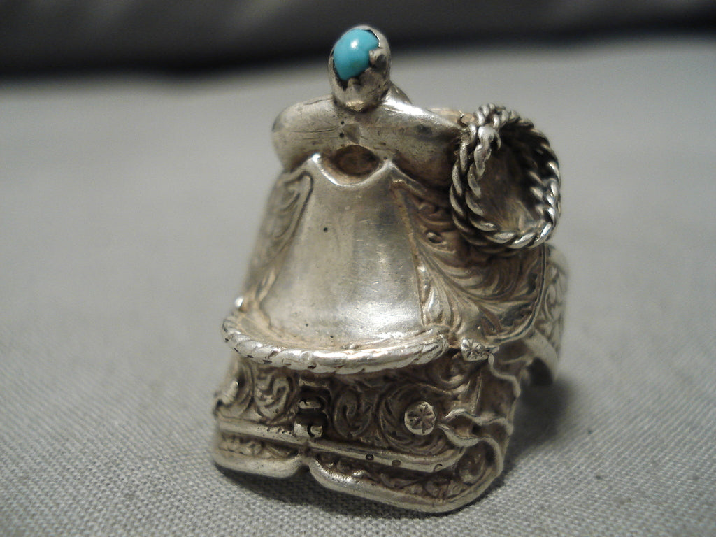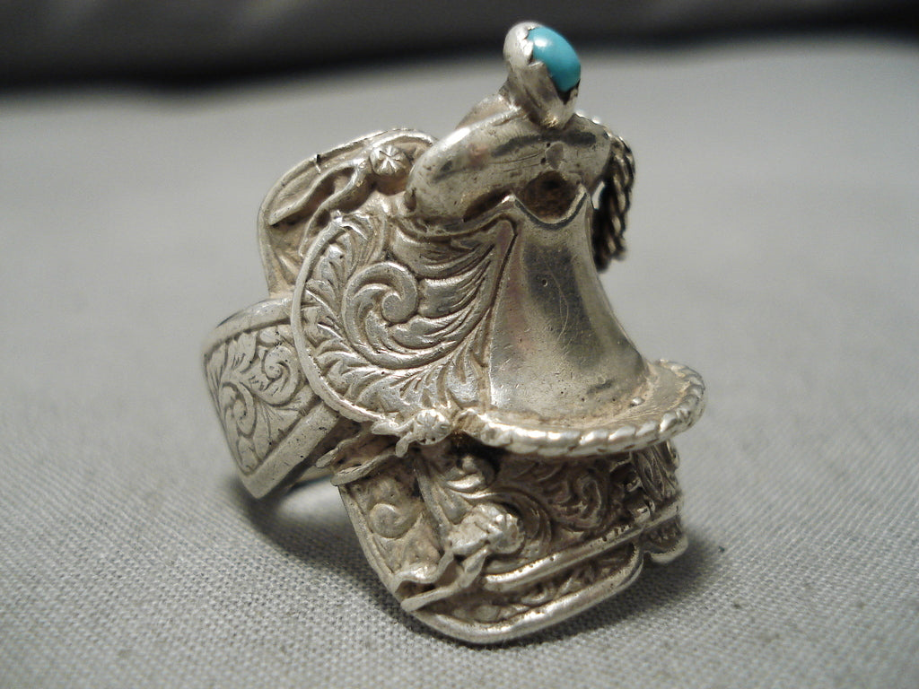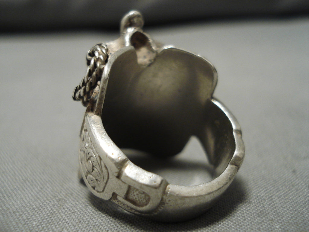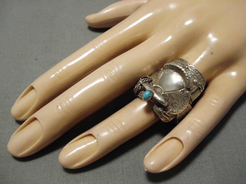 Exceptional Vintage Native American Navajo Saddle Turquoise Sterling Silver Ring