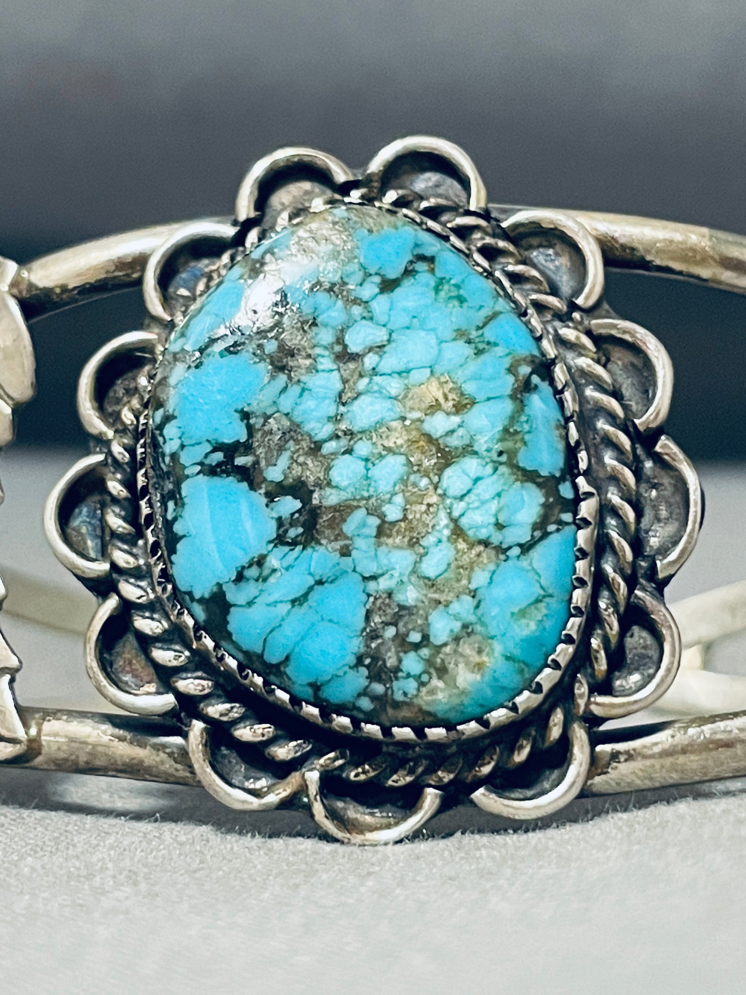 Exceptional Vintage Native American Navajo Spiderweb Turquoise Sterling Silver Bracelet