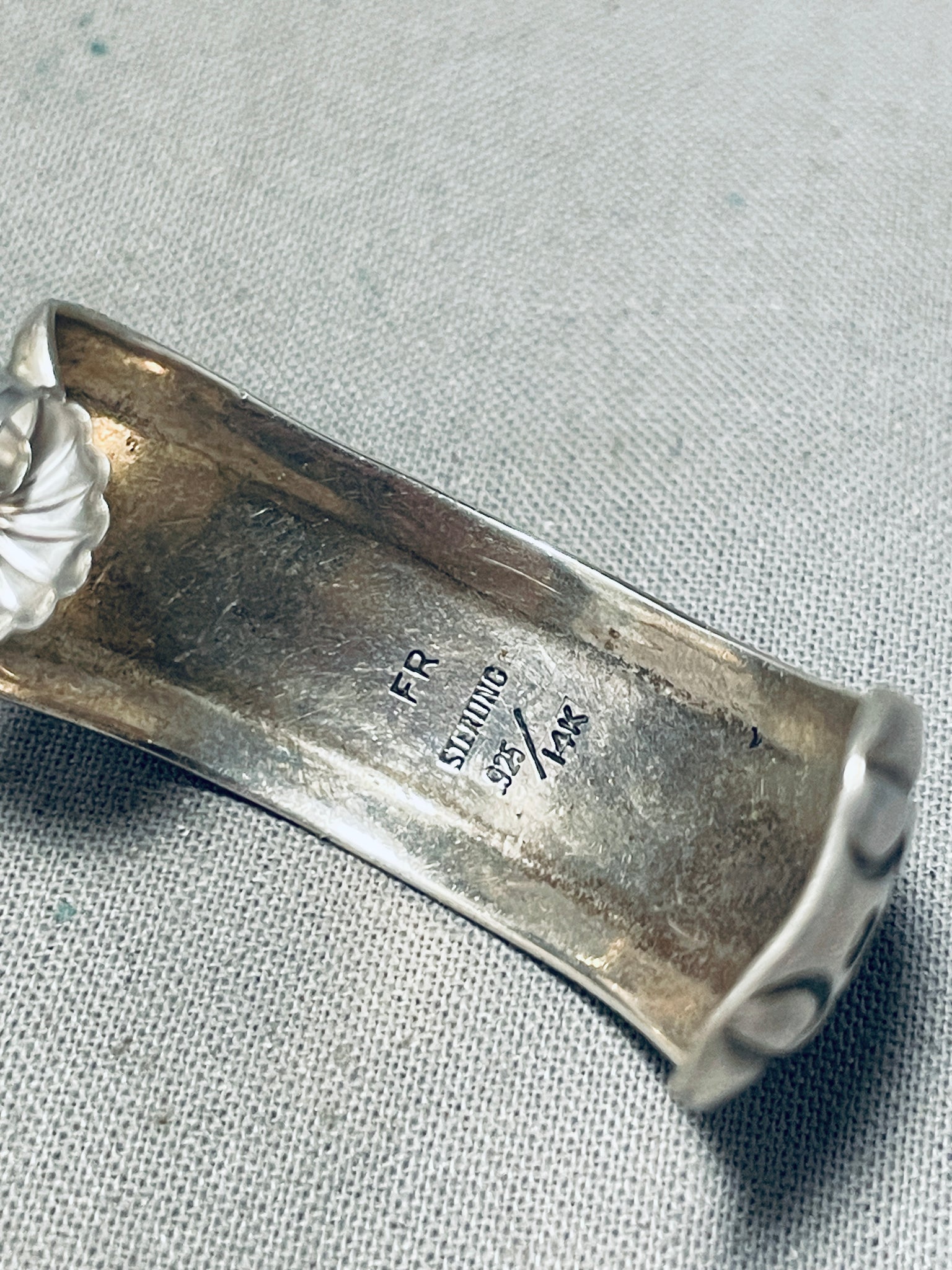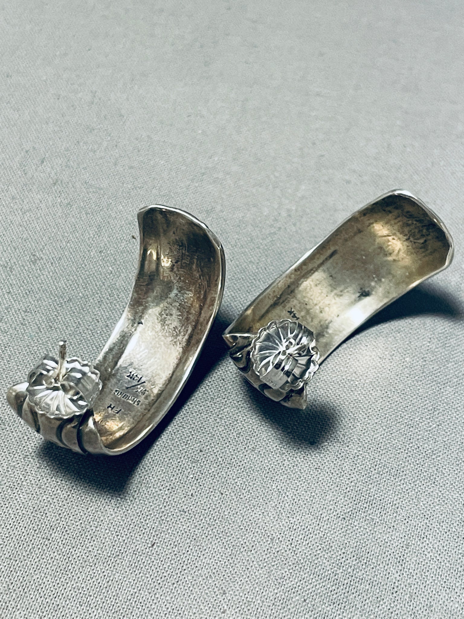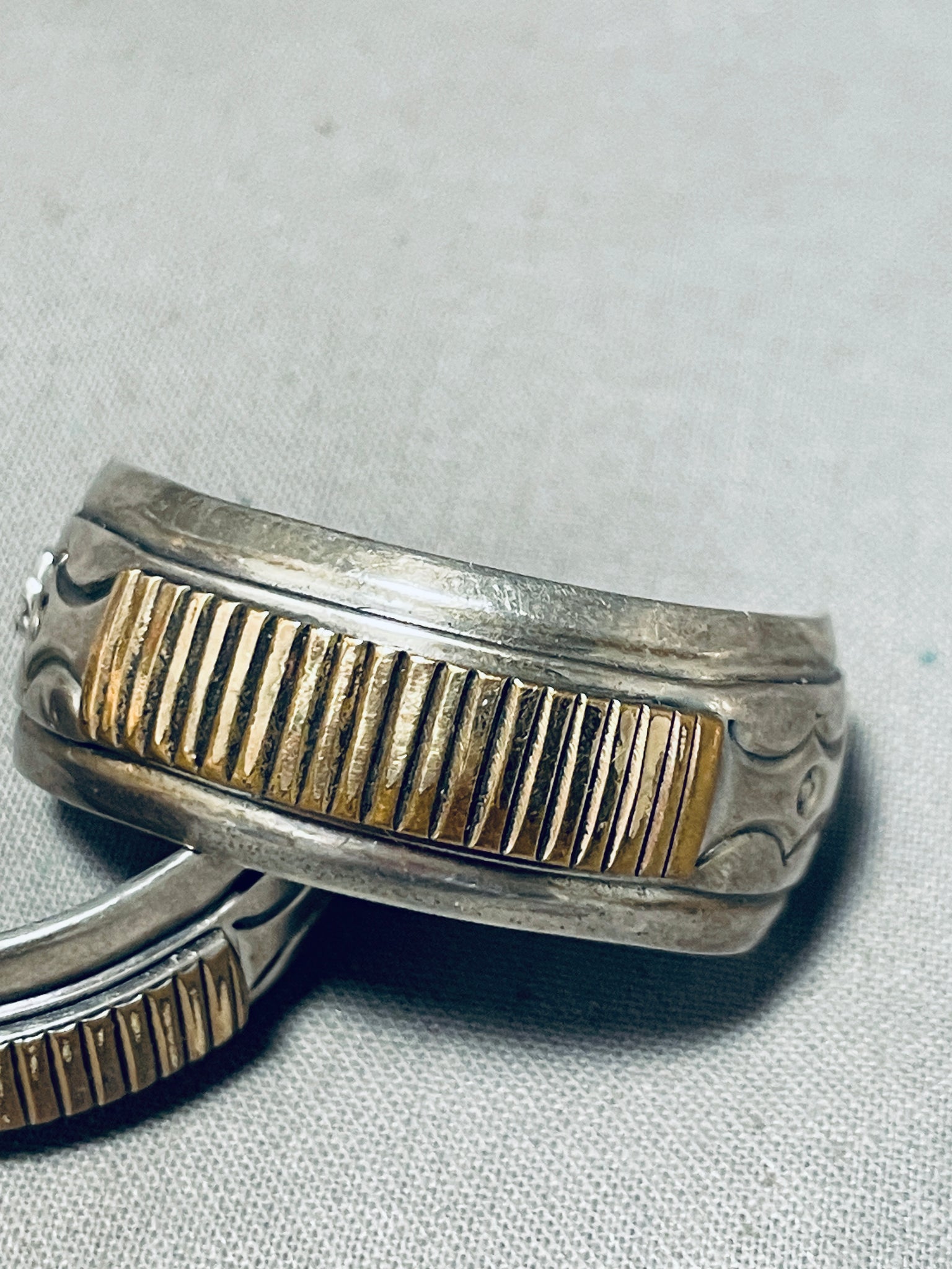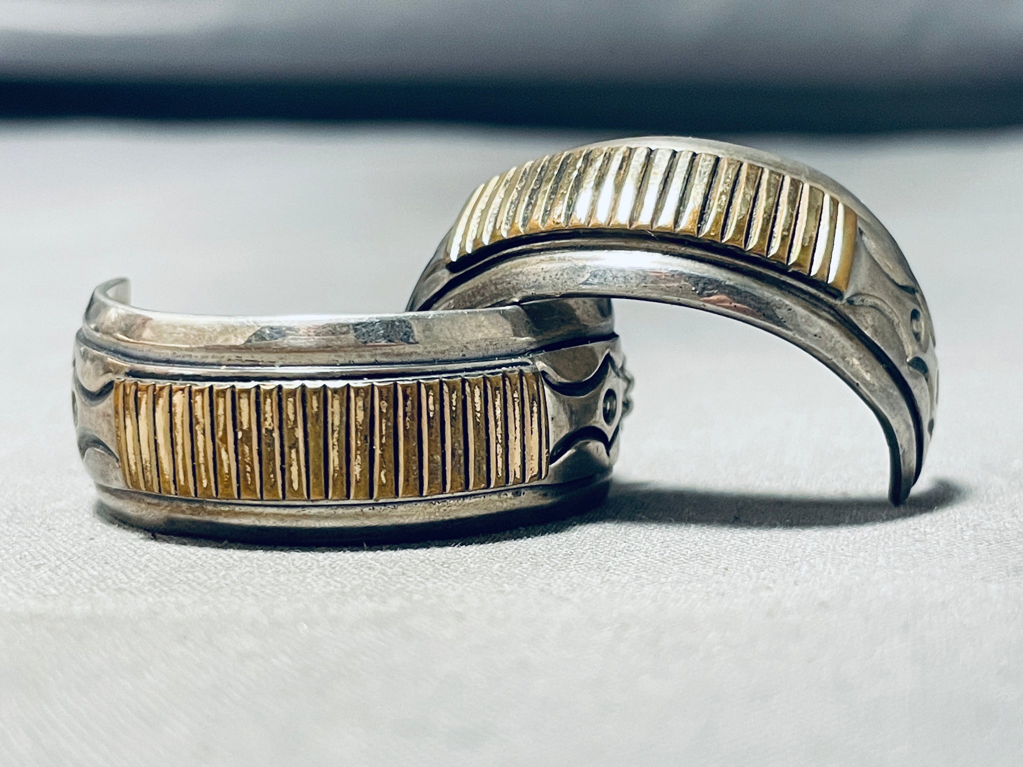 Exceptional Vintage Native American Navajo Sterling Silver & 14k Gold Two-tone Earrings Signed