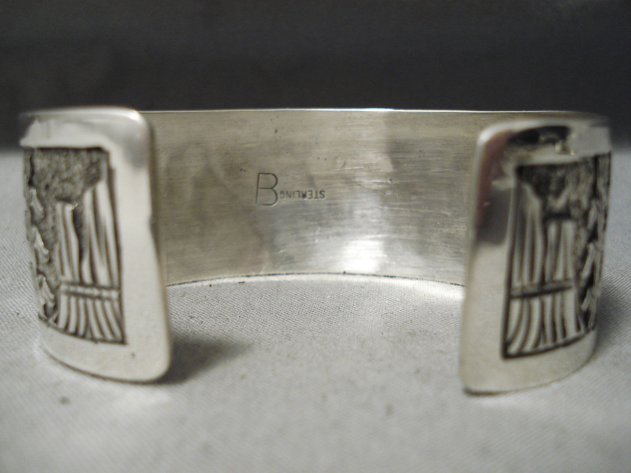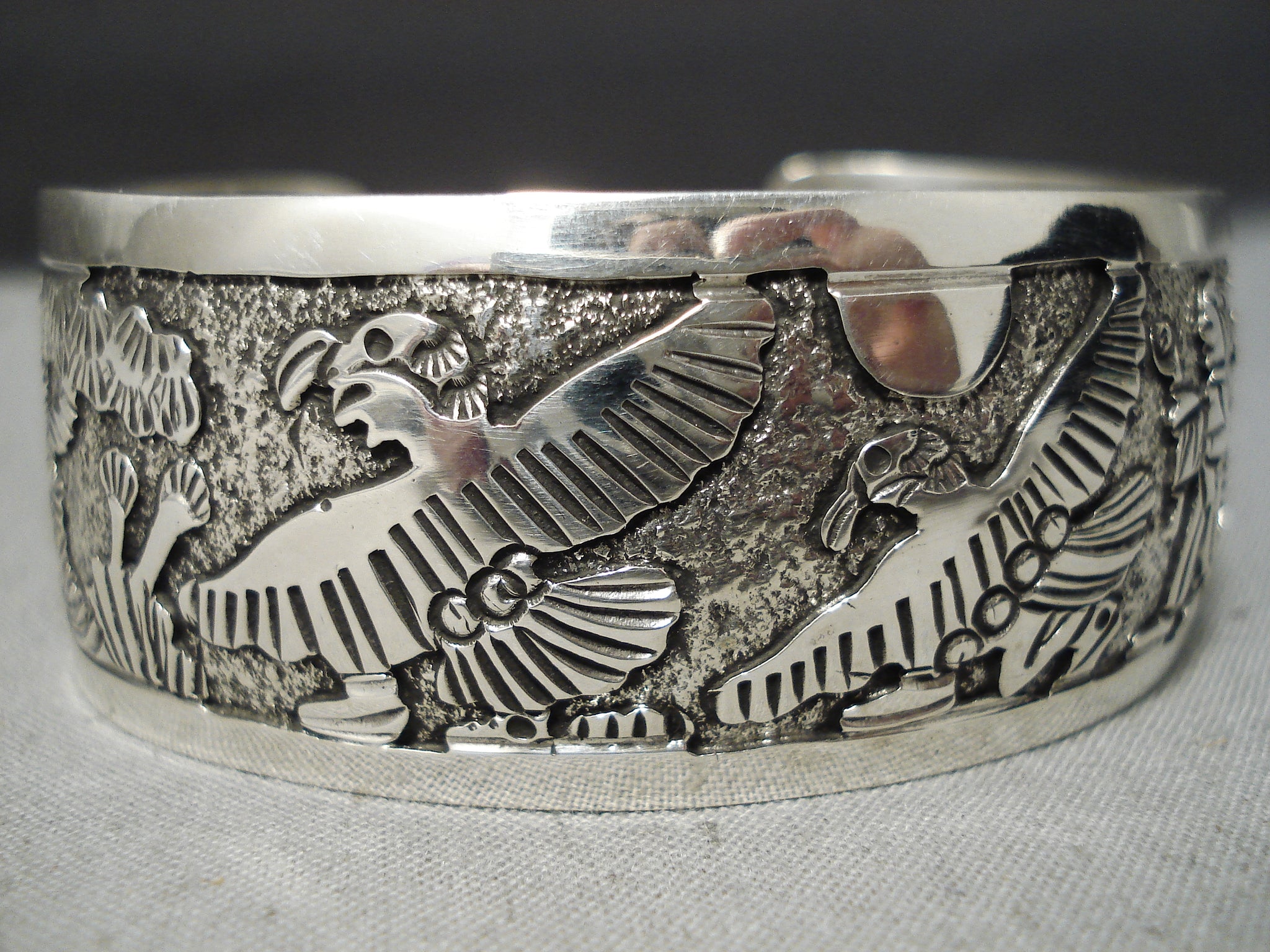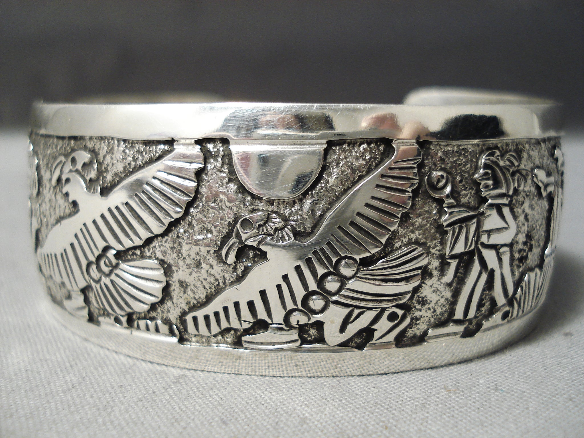 Exceptional Vintage Native American Navajo Sterling Silver Eagle Dancers Bracelet