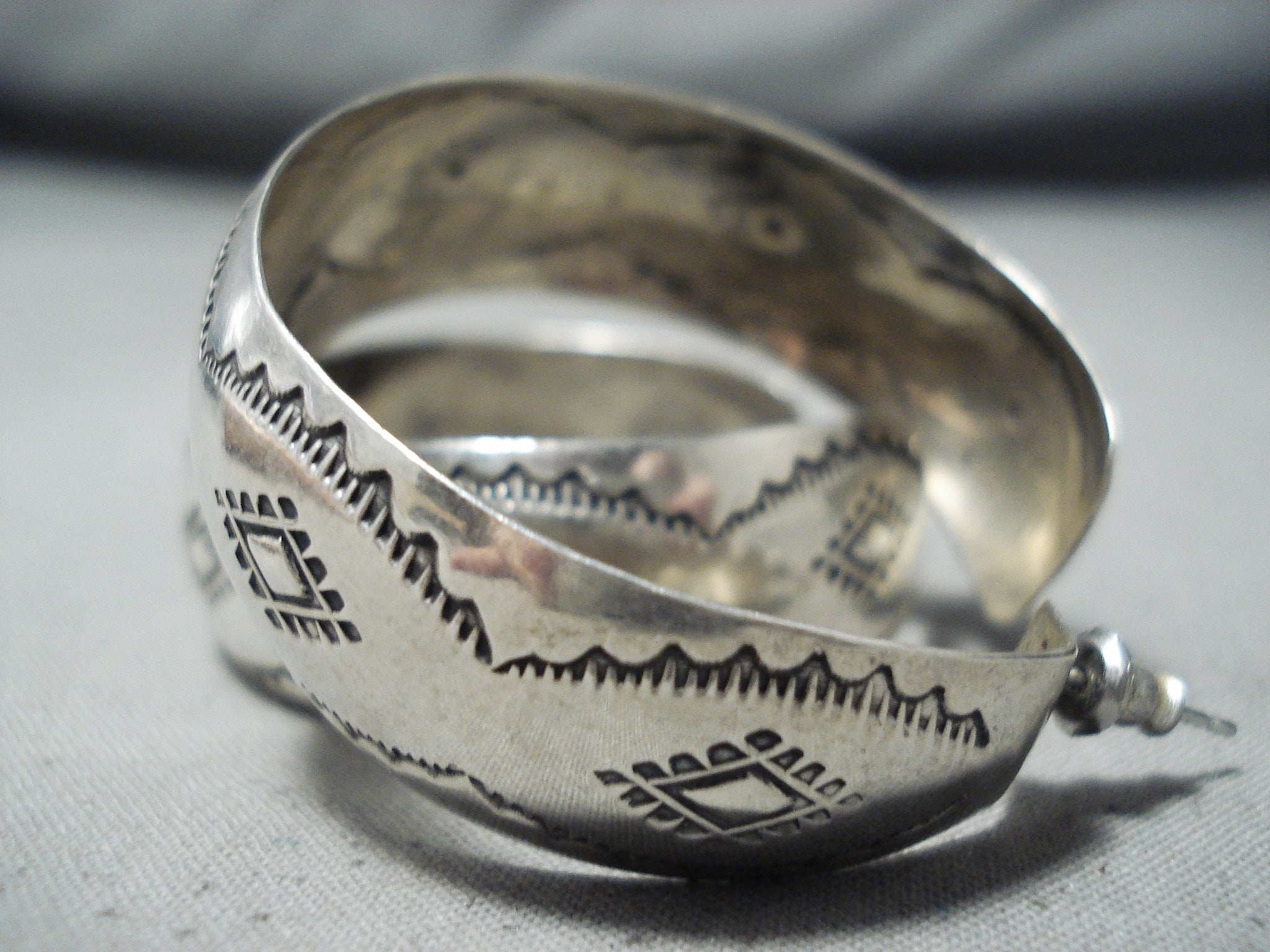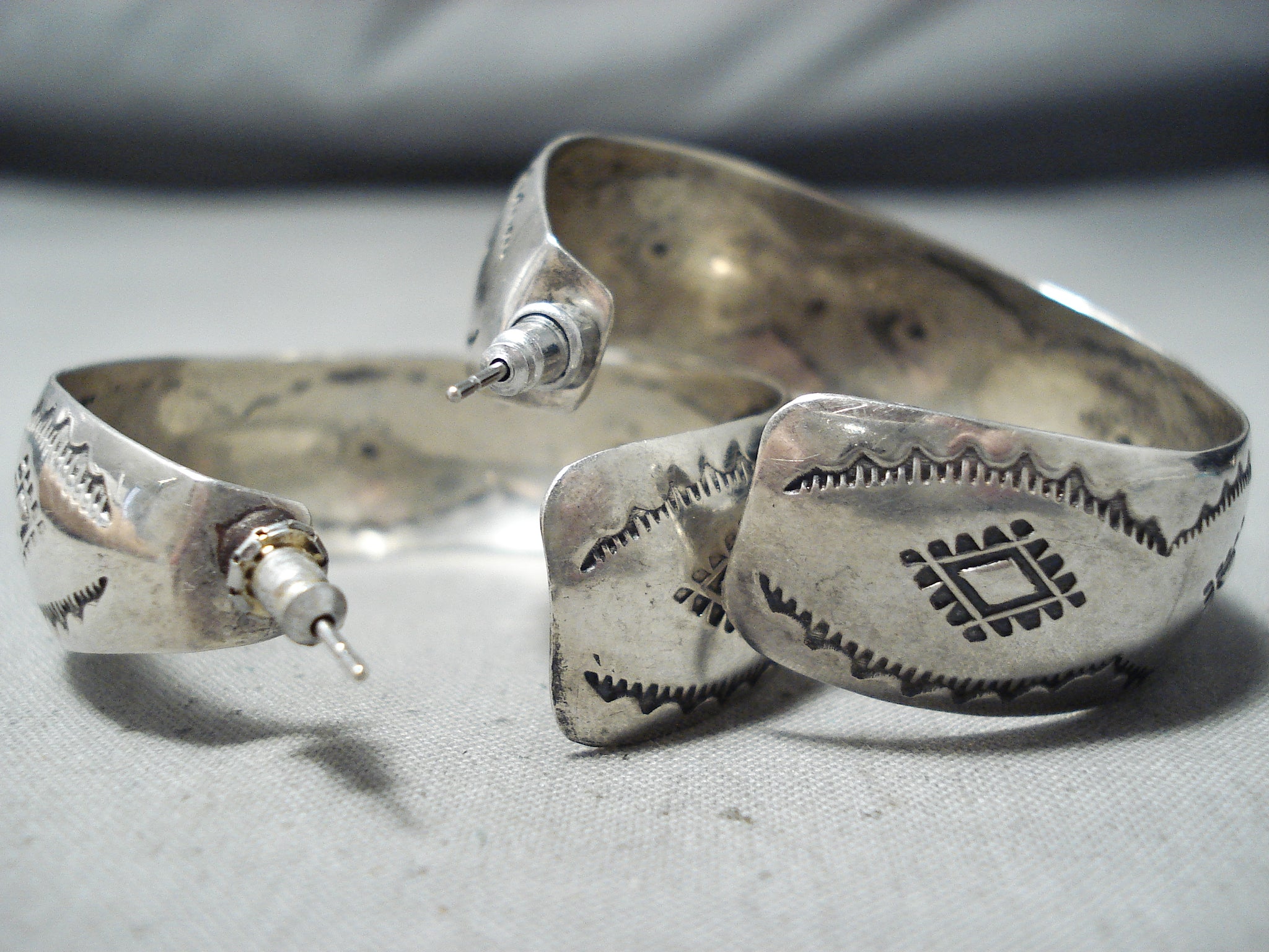 Exceptional Vintage Native American Navajo Sterling Silver Earrings Old