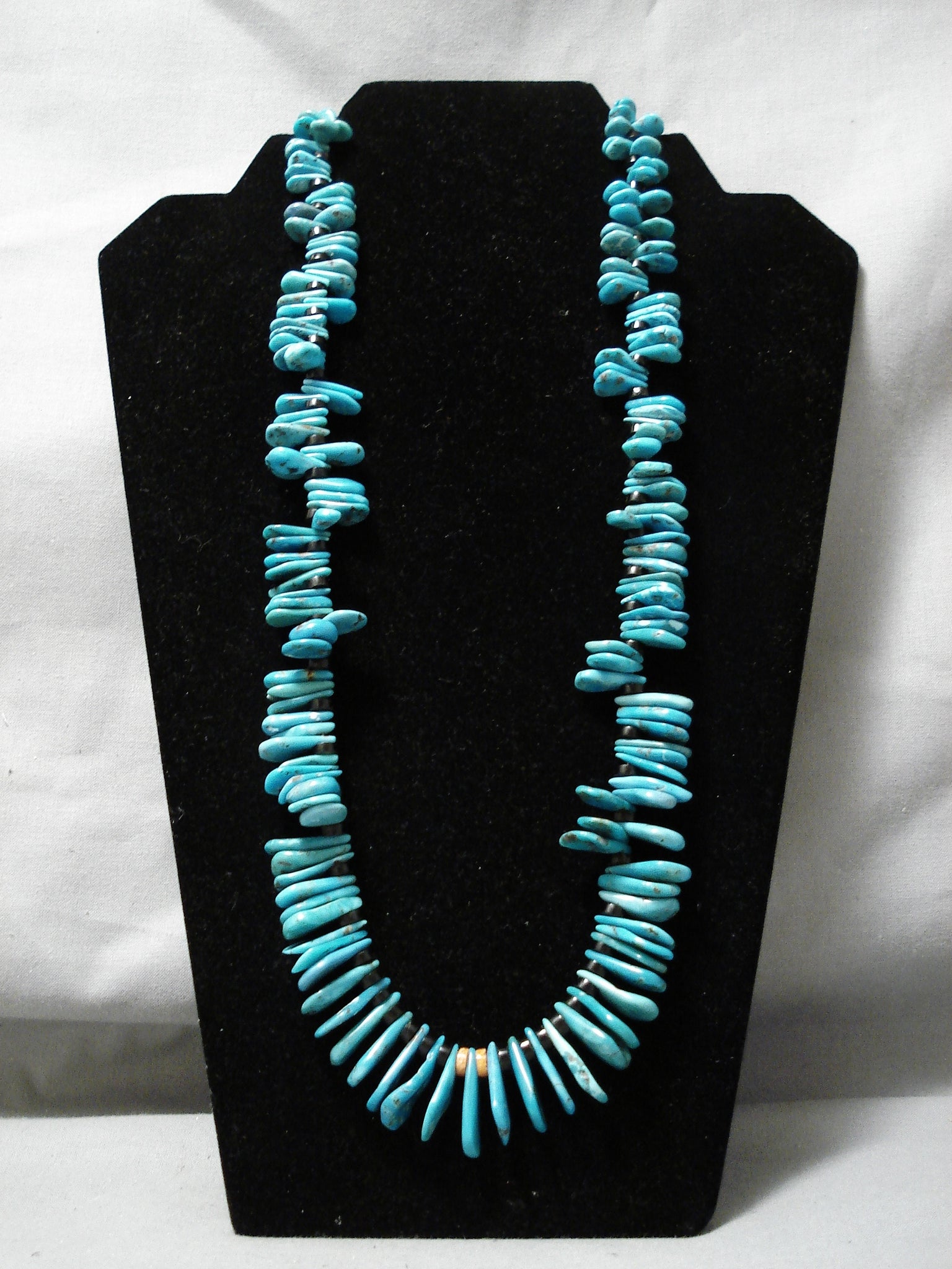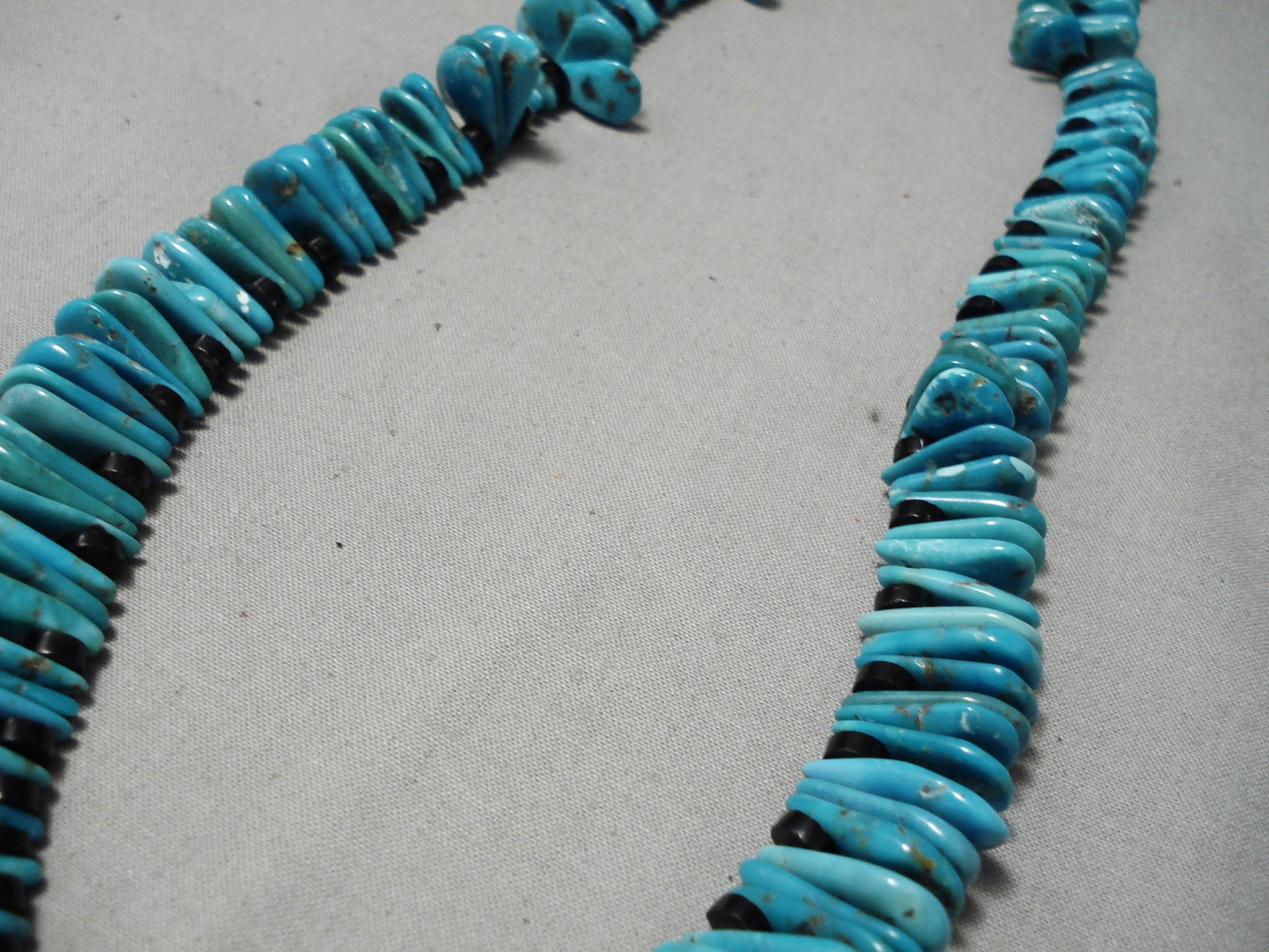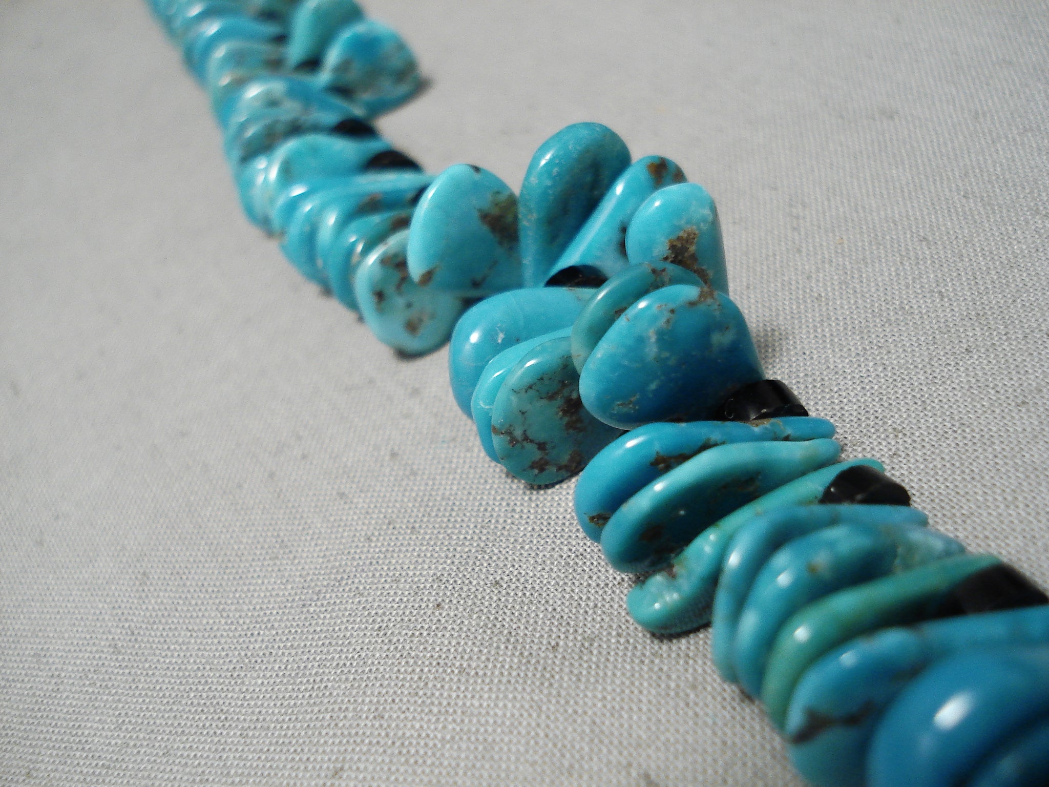 Exceptional Vintage Native American Navajo Teardrop Turquoise Sterling Silver Necklace