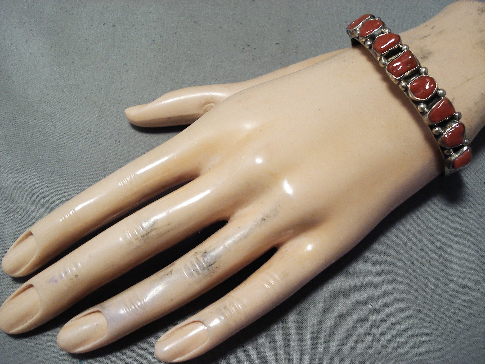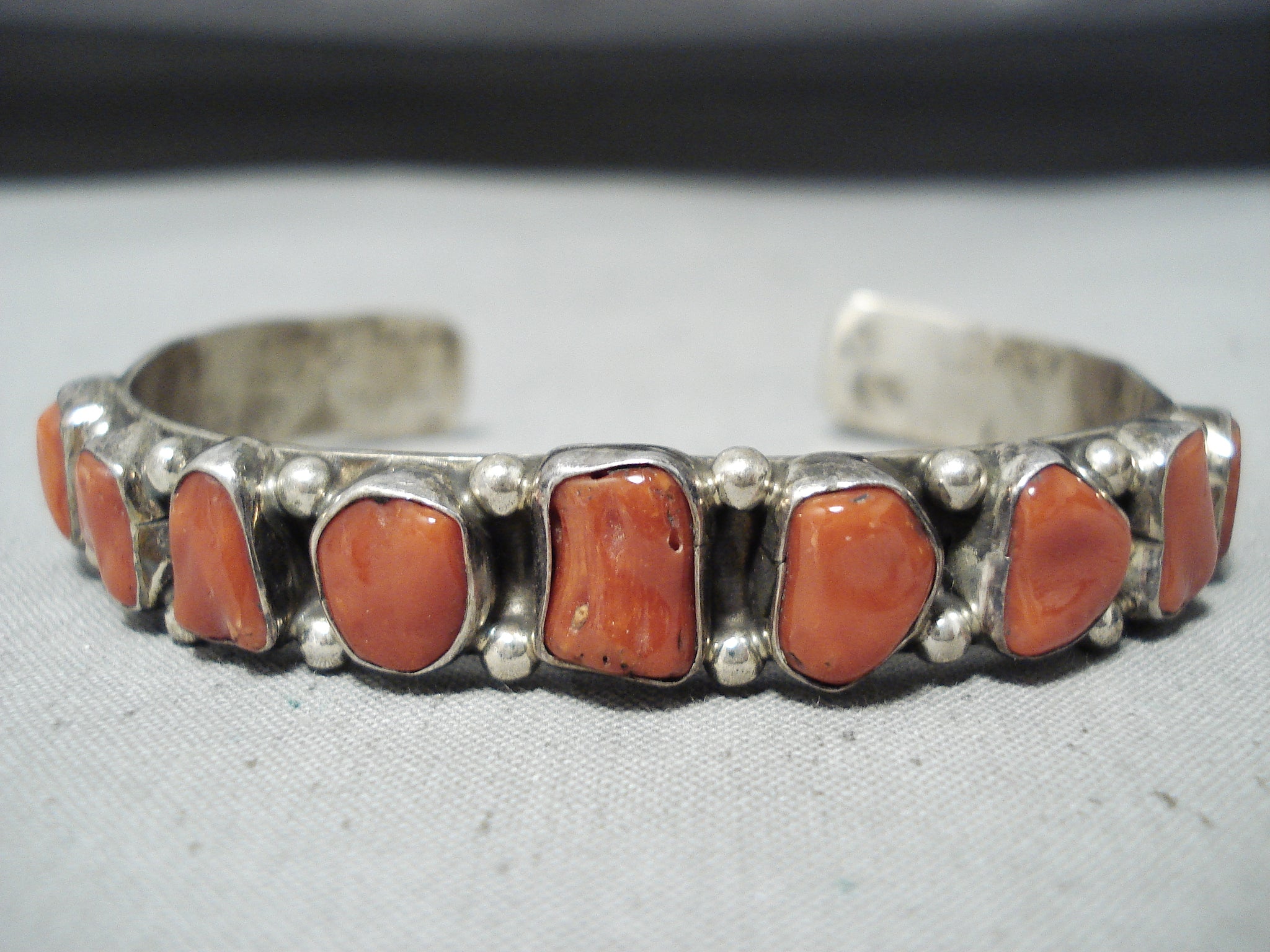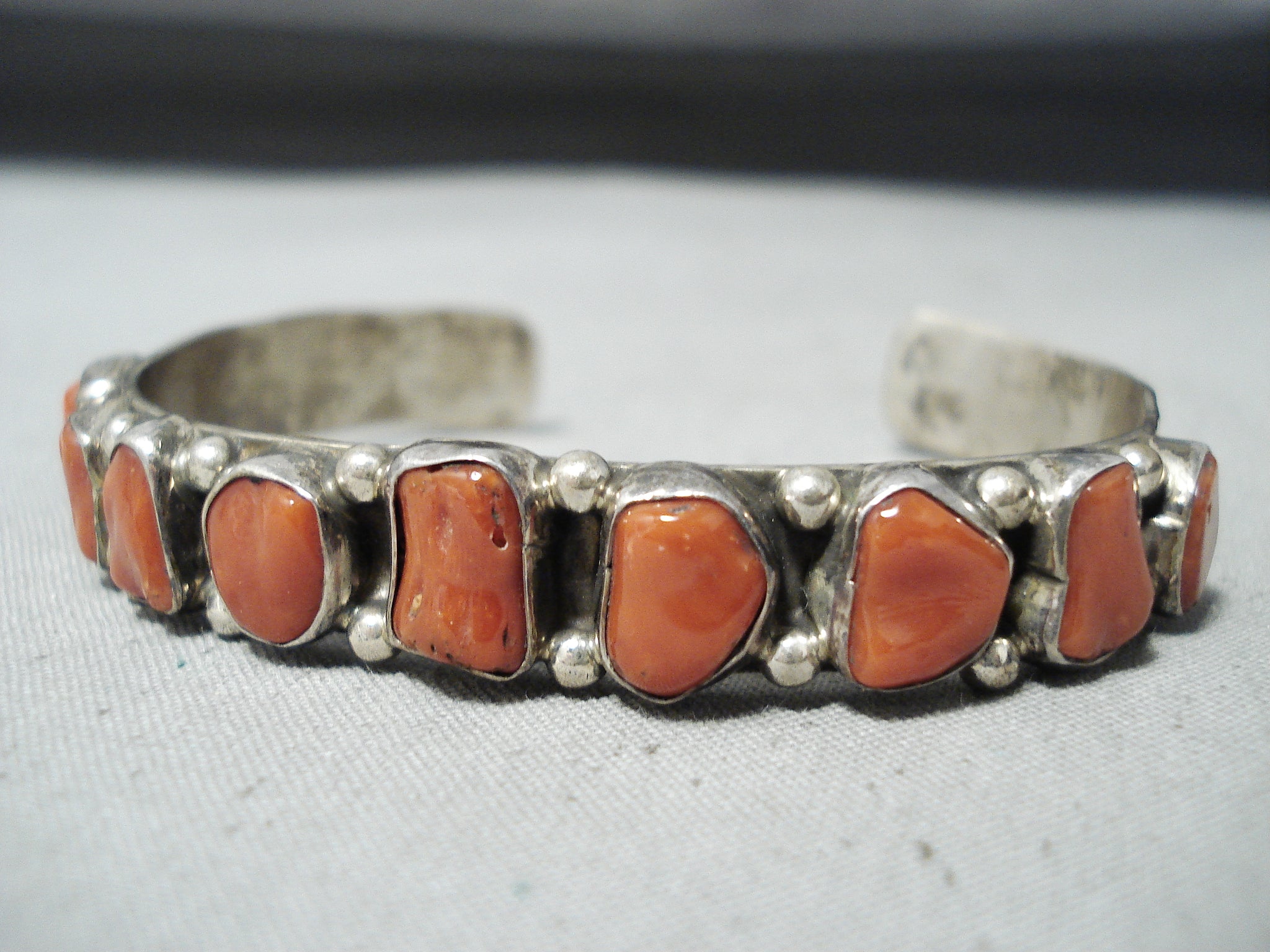 Expressive Navajo Coral Sterling Silver Bracelet Native American