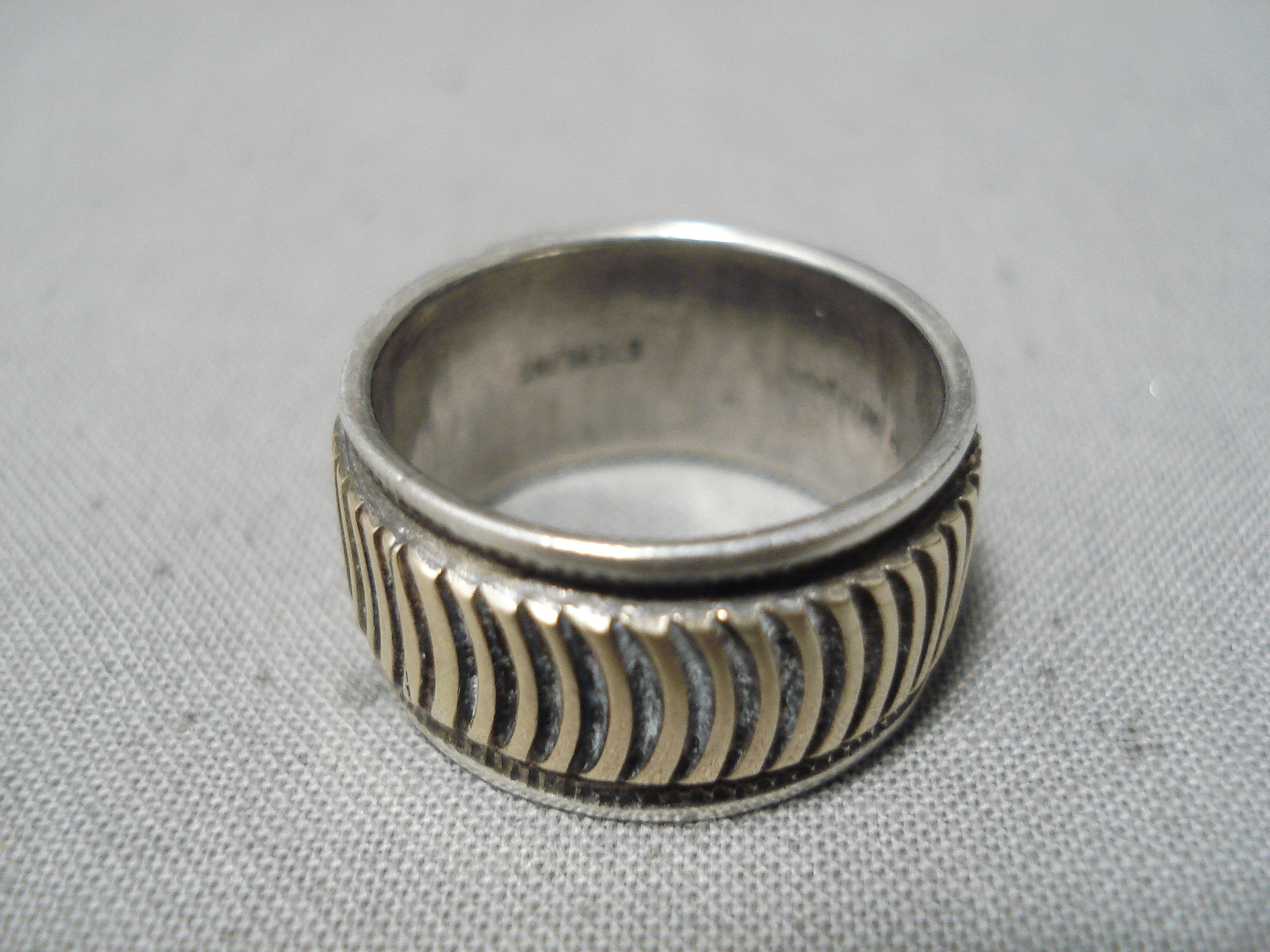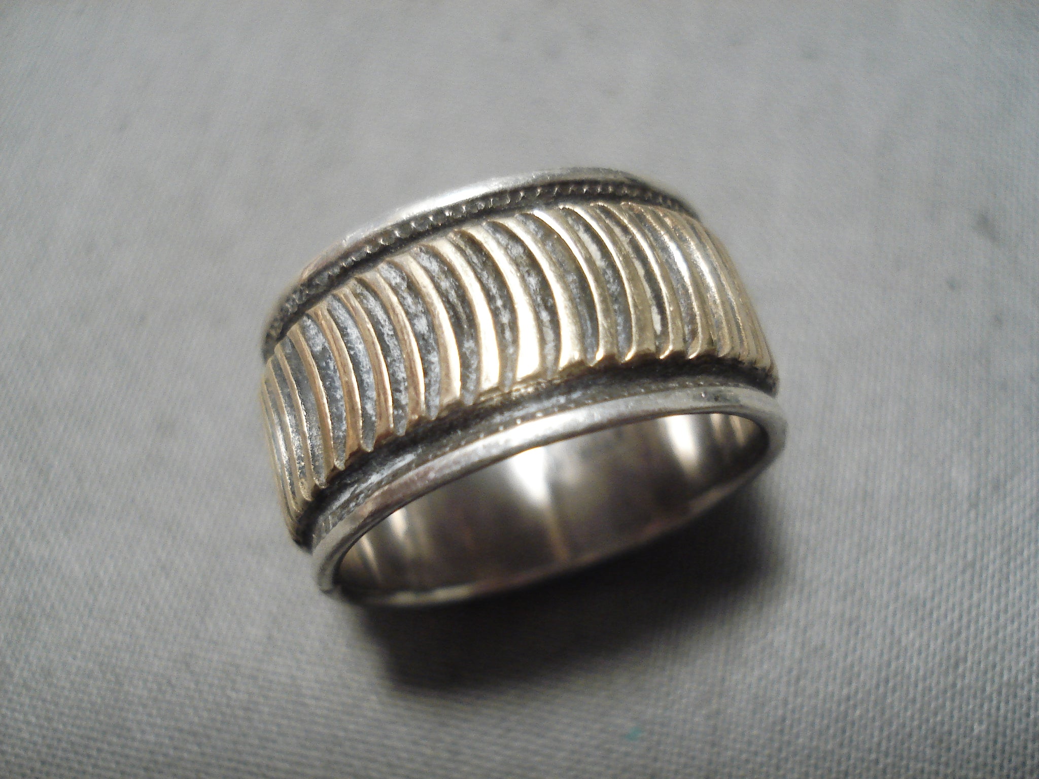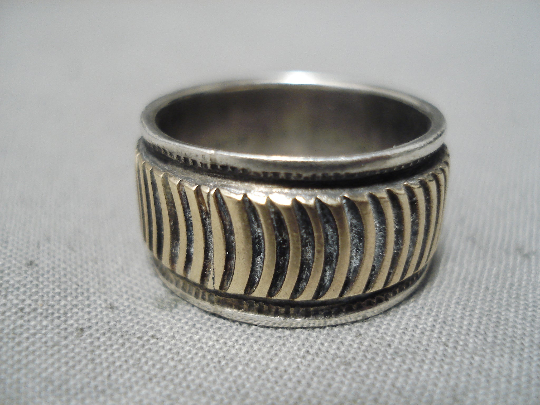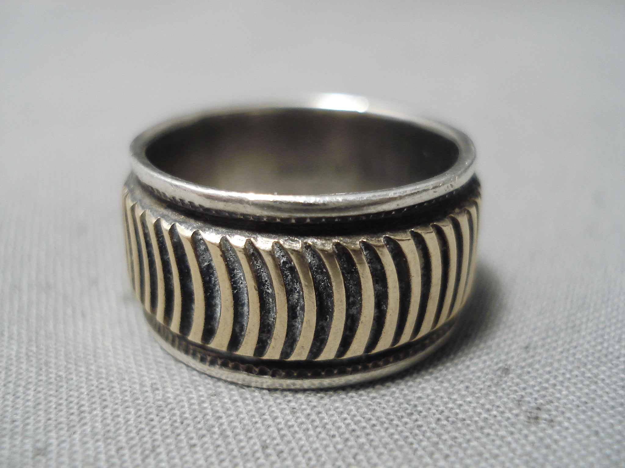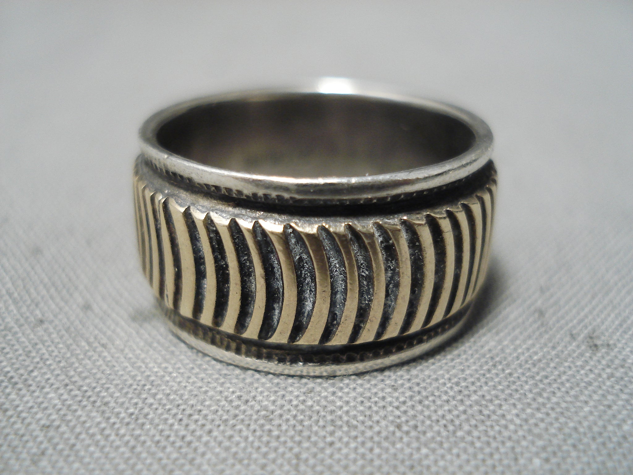 Expressive Vintage Native American Navajo 14k Gold And Sterling Silver Ring Old