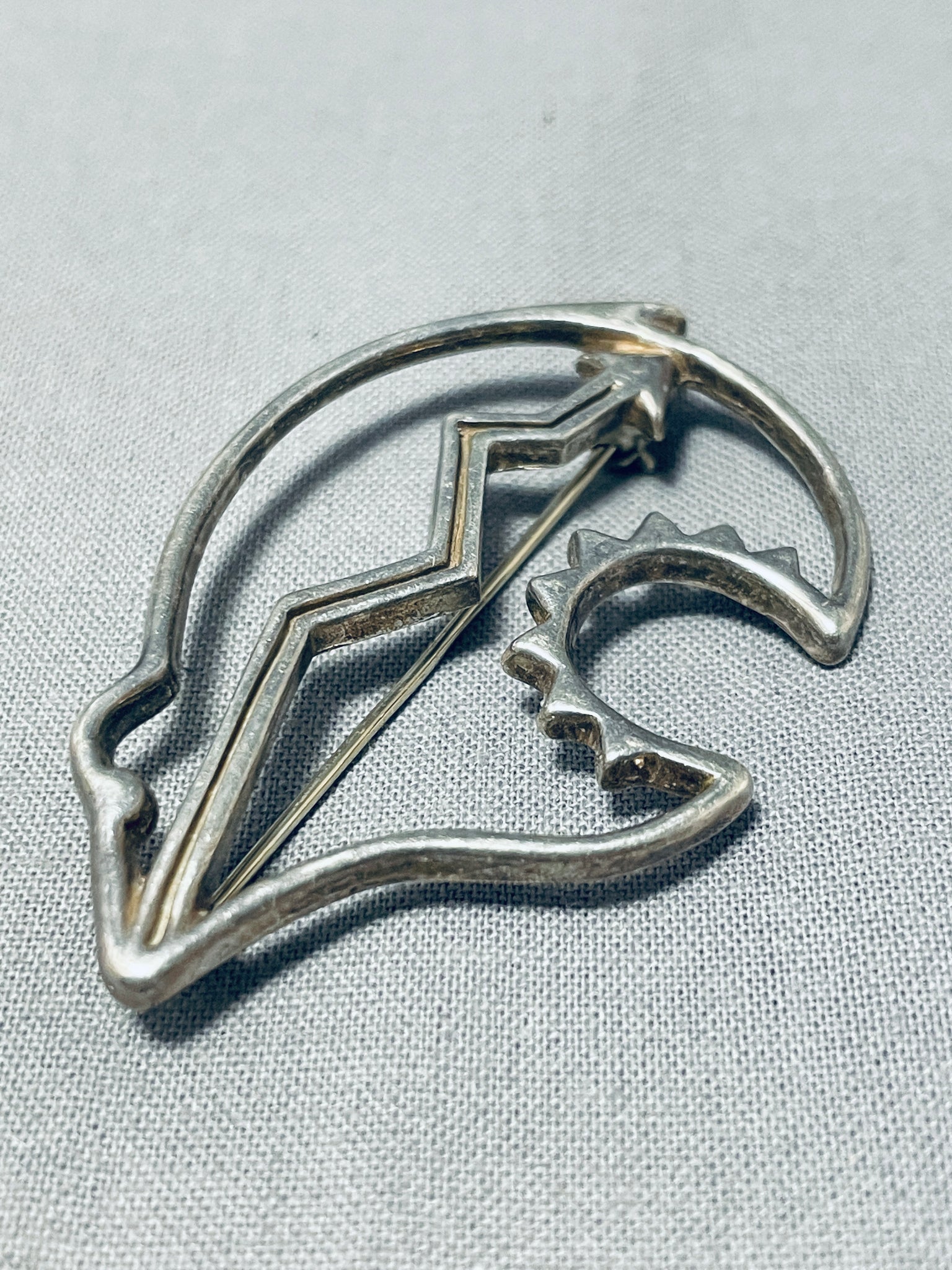 Expressive Vintage Native American Navajo Sterling Silver Bear Pin